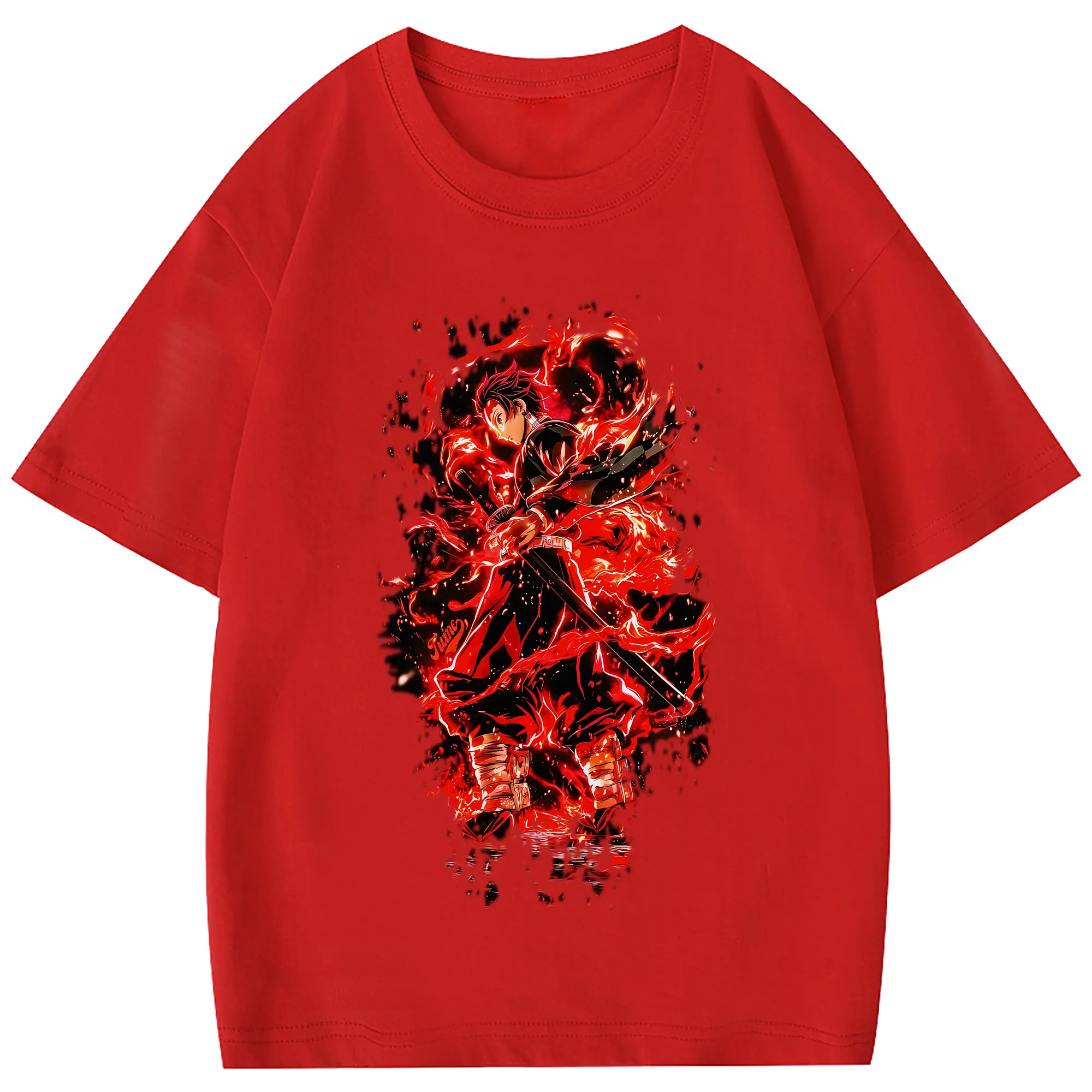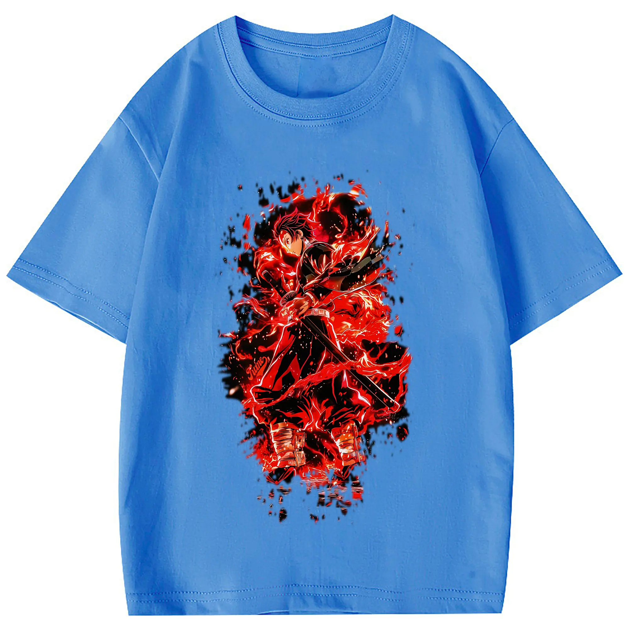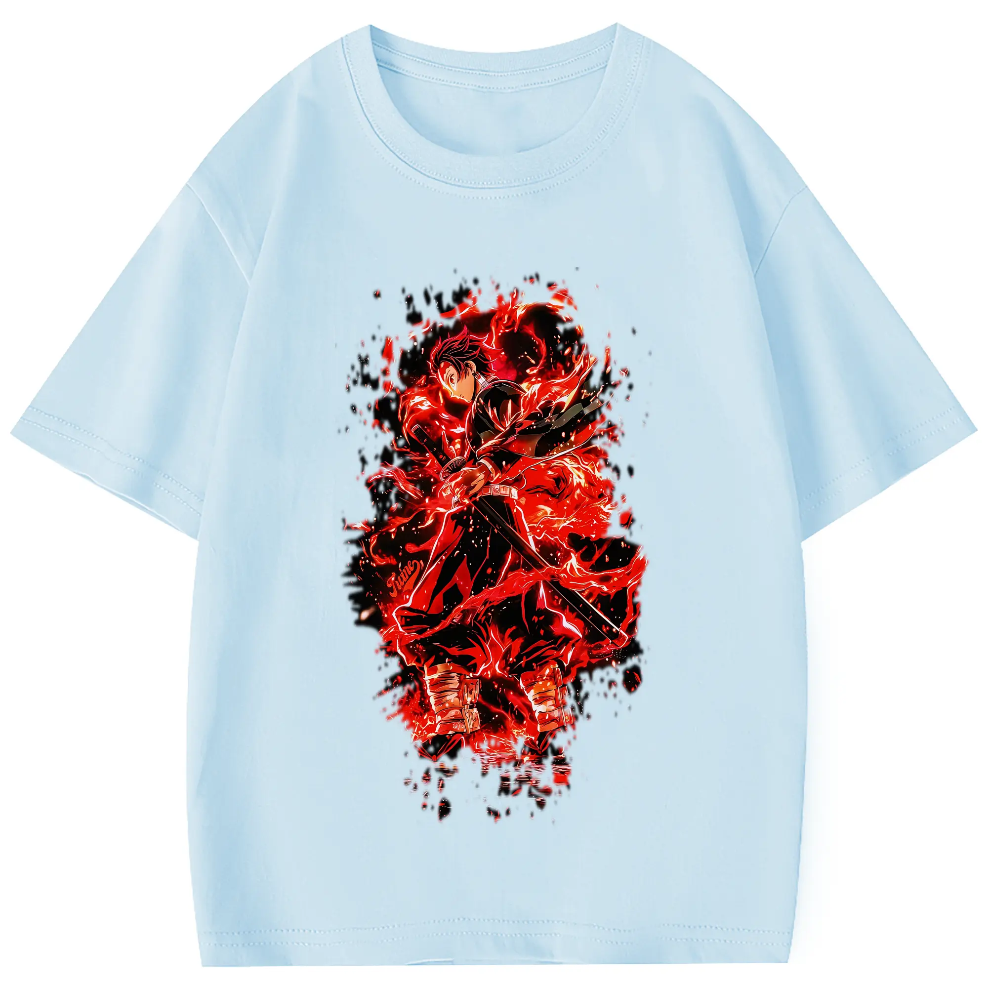 鬼滅の刃 グッズ,竈門 炭治郎 - 綿100% 半袖Tシャツ ・ フロントプリント ・ 快適 通気性 ・ 日常使い 散歩 スポーツ用
