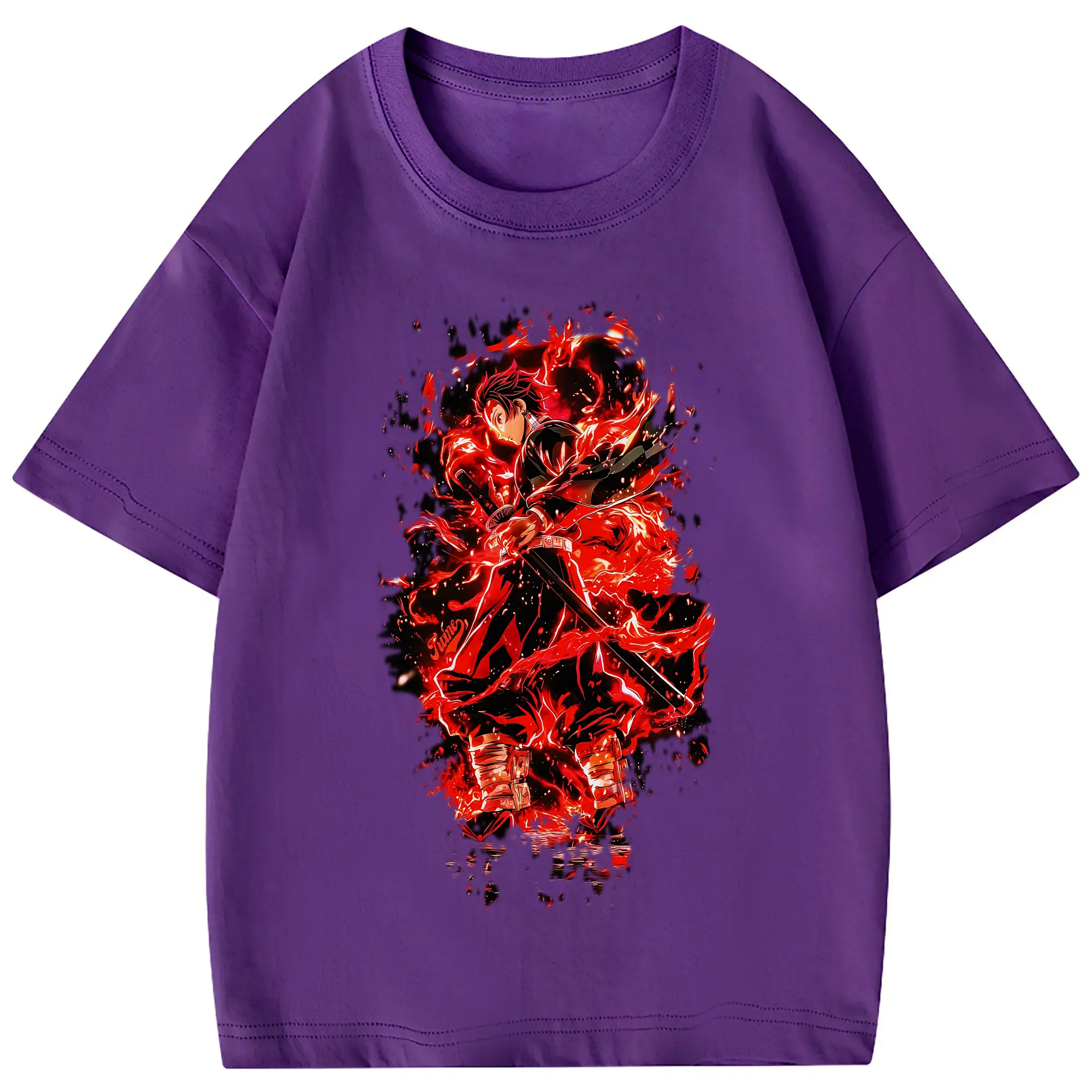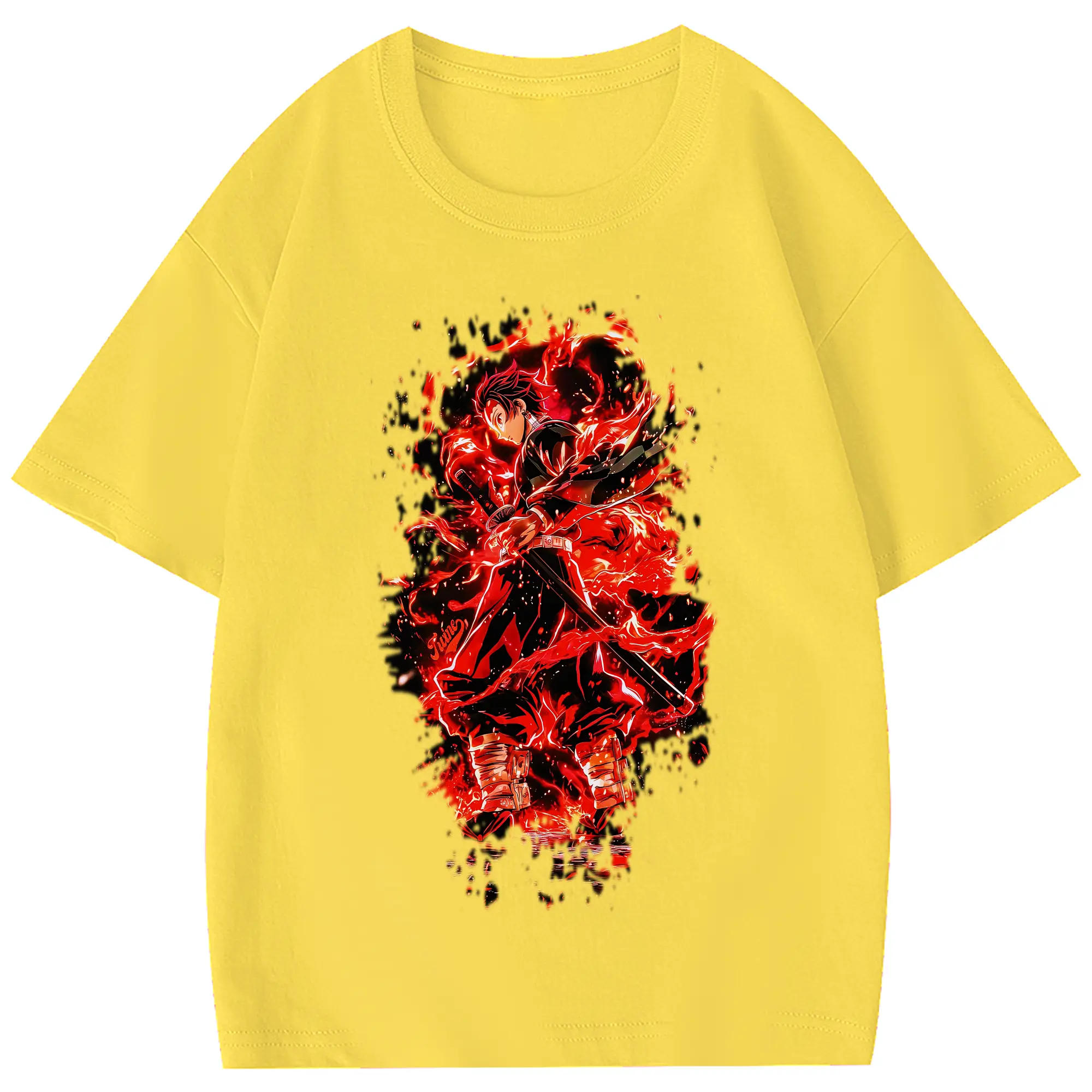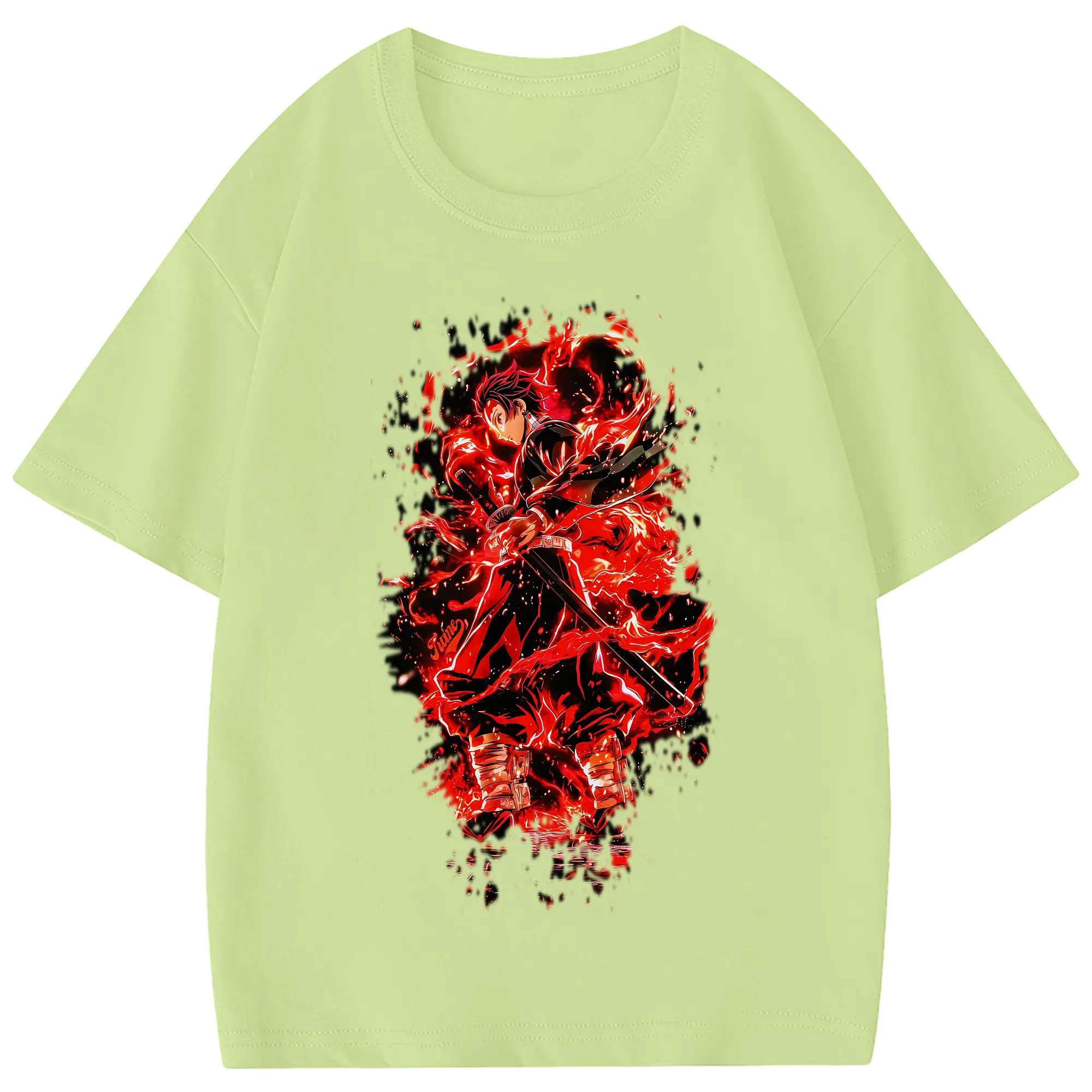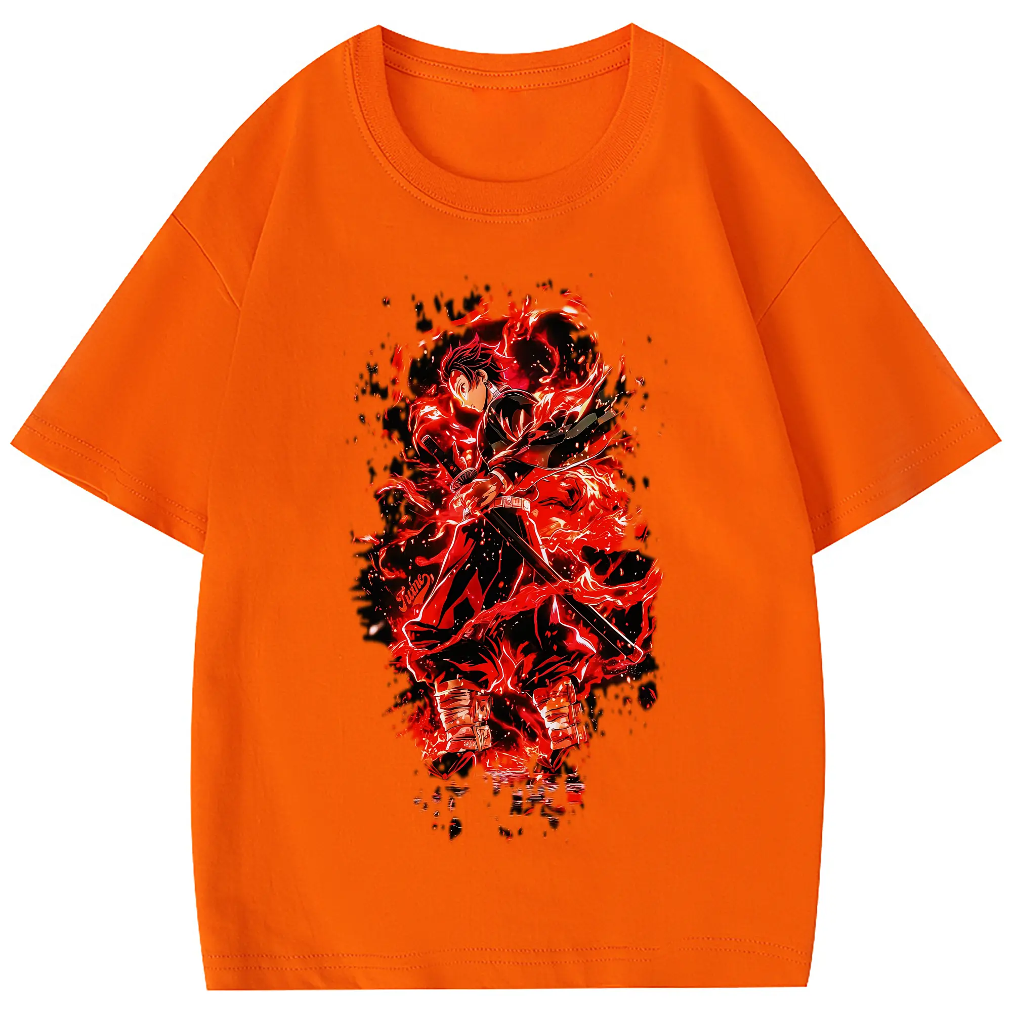 鬼滅の刃 グッズ,竈門 炭治郎 - 綿100% 半袖Tシャツ ・ フロントプリント ・ 快適 通気性 ・ 日常使い 散歩 スポーツ用