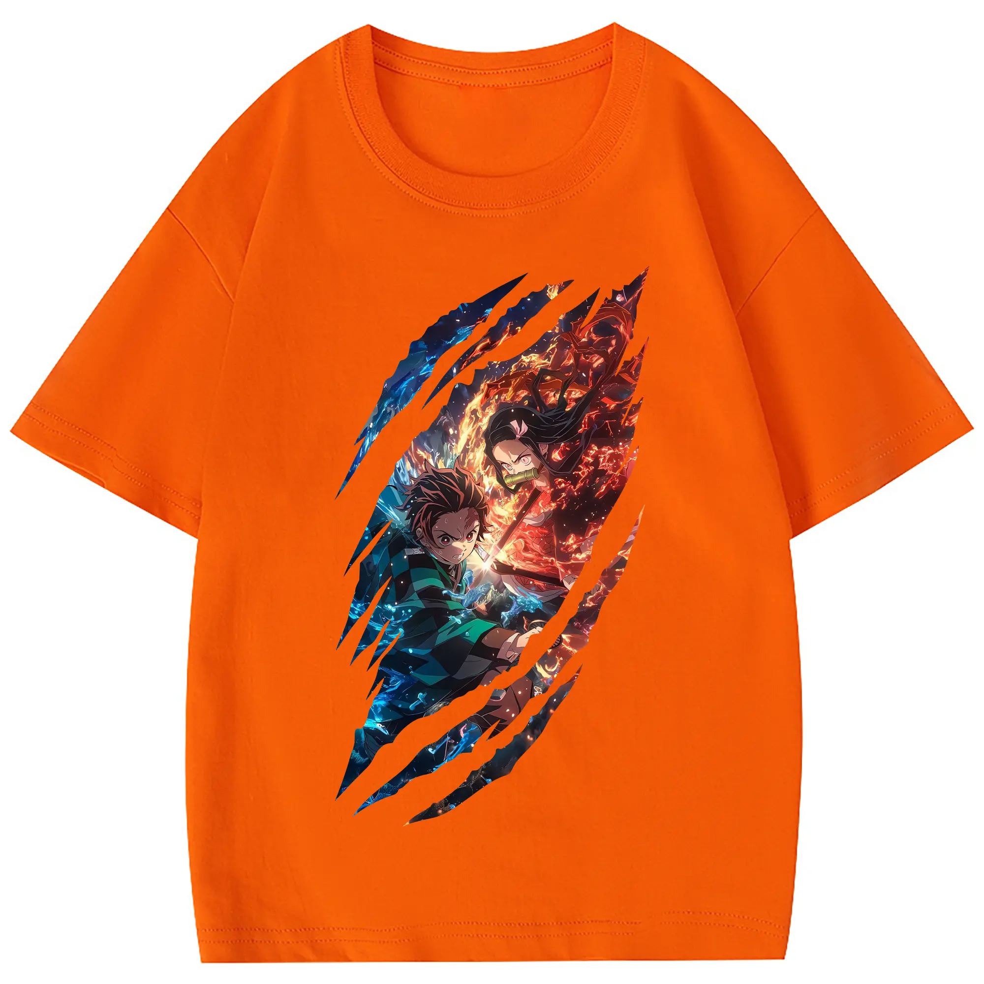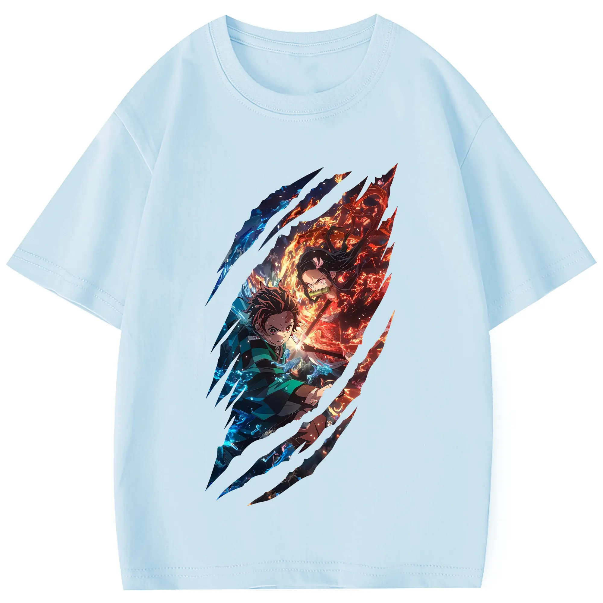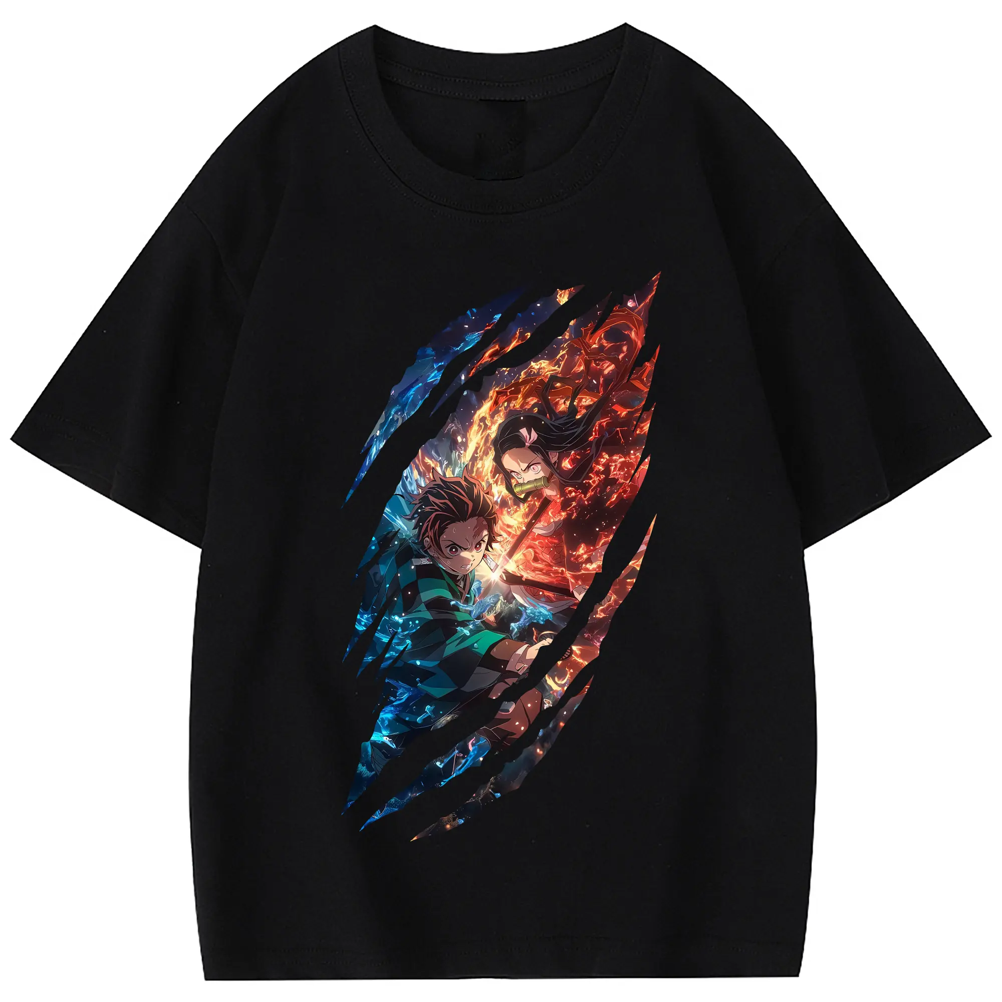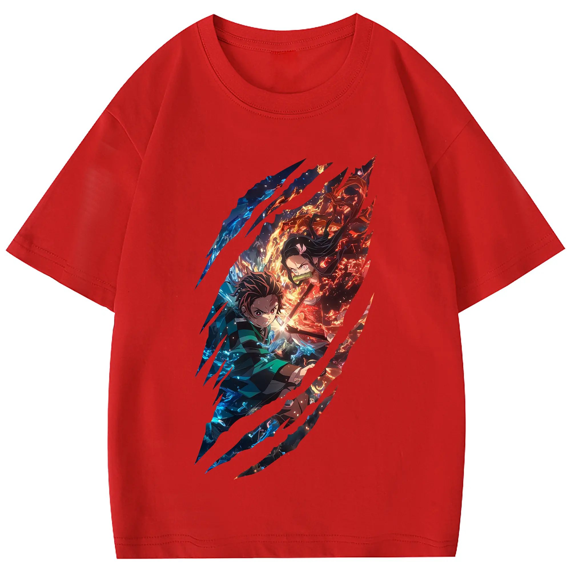 鬼滅の刃 グッズ,竈門 炭治郎 - 綿100% 半袖Tシャツ ・ フロントプリント ・ 快適 通気性 ・ 日常使い 散歩 スポーツ用