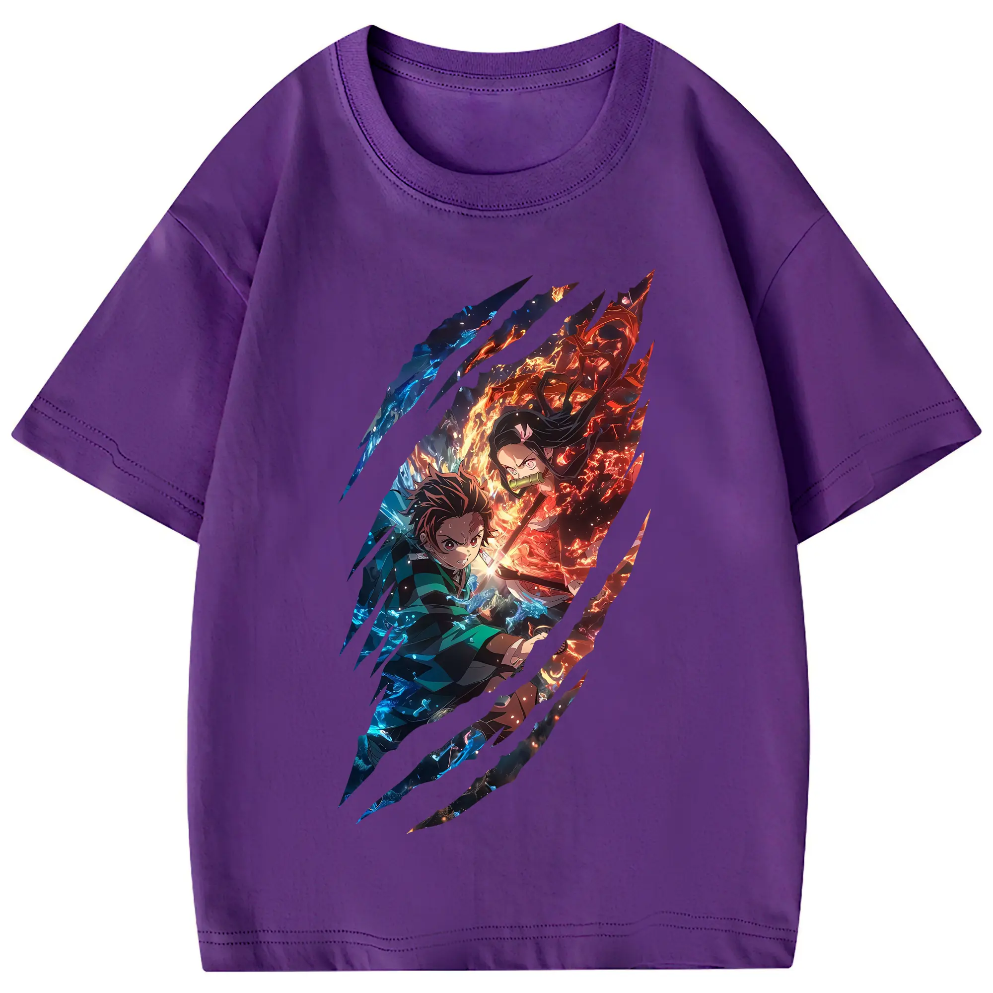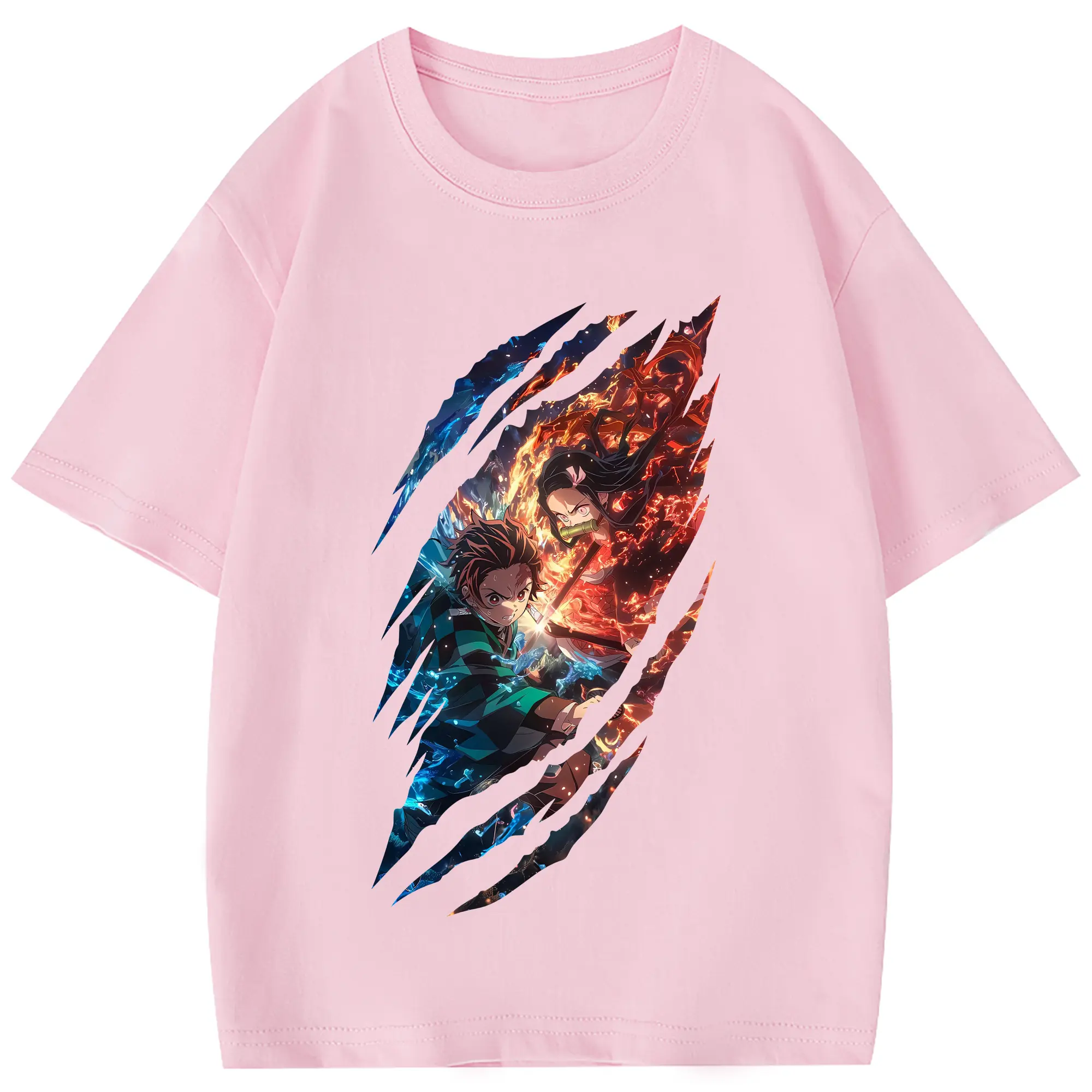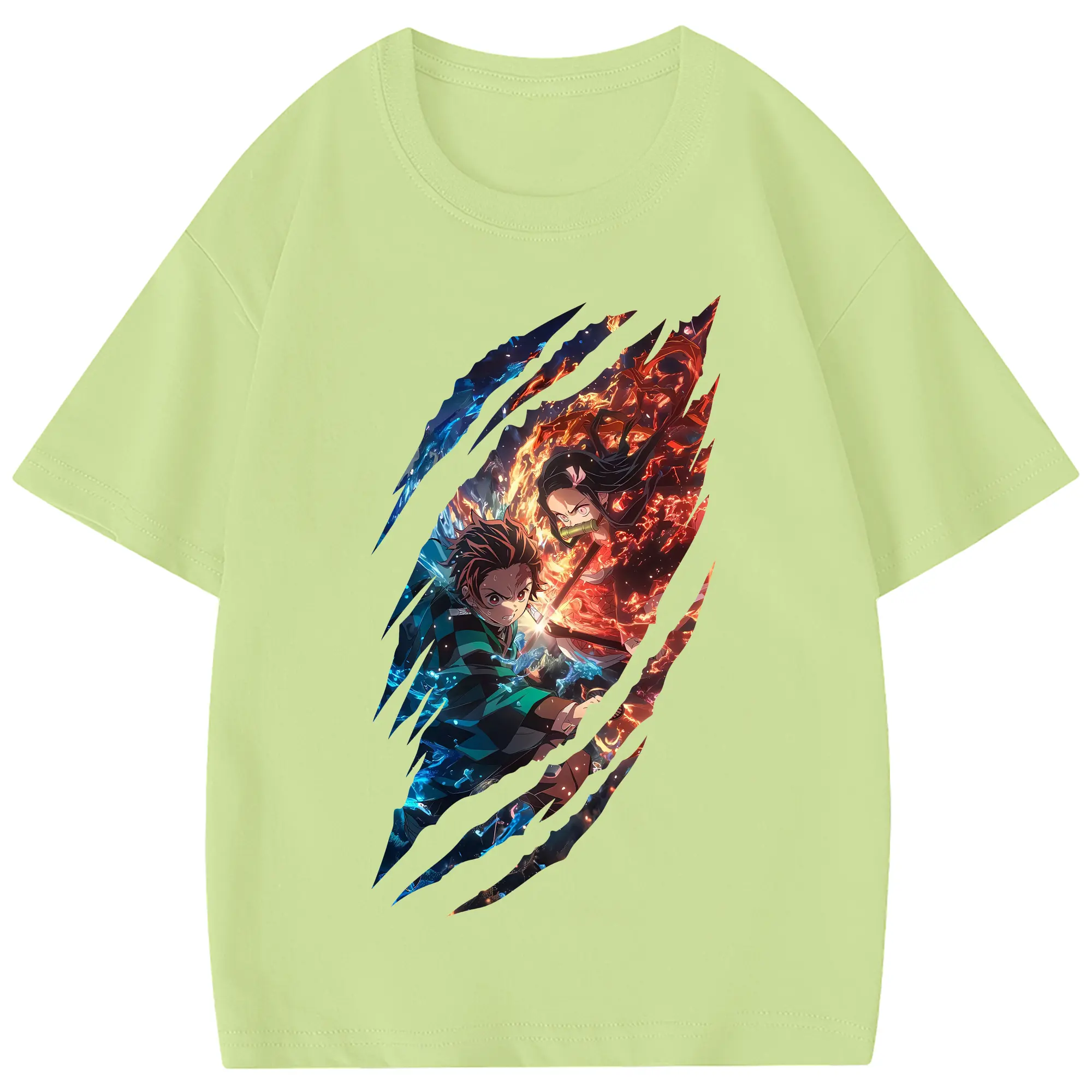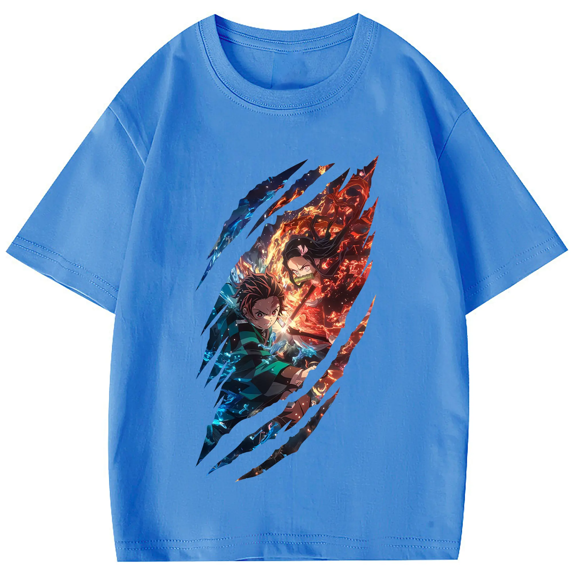 鬼滅の刃 グッズ,竈門 炭治郎 - 綿100% 半袖Tシャツ ・ フロントプリント ・ 快適 通気性 ・ 日常使い 散歩 スポーツ用