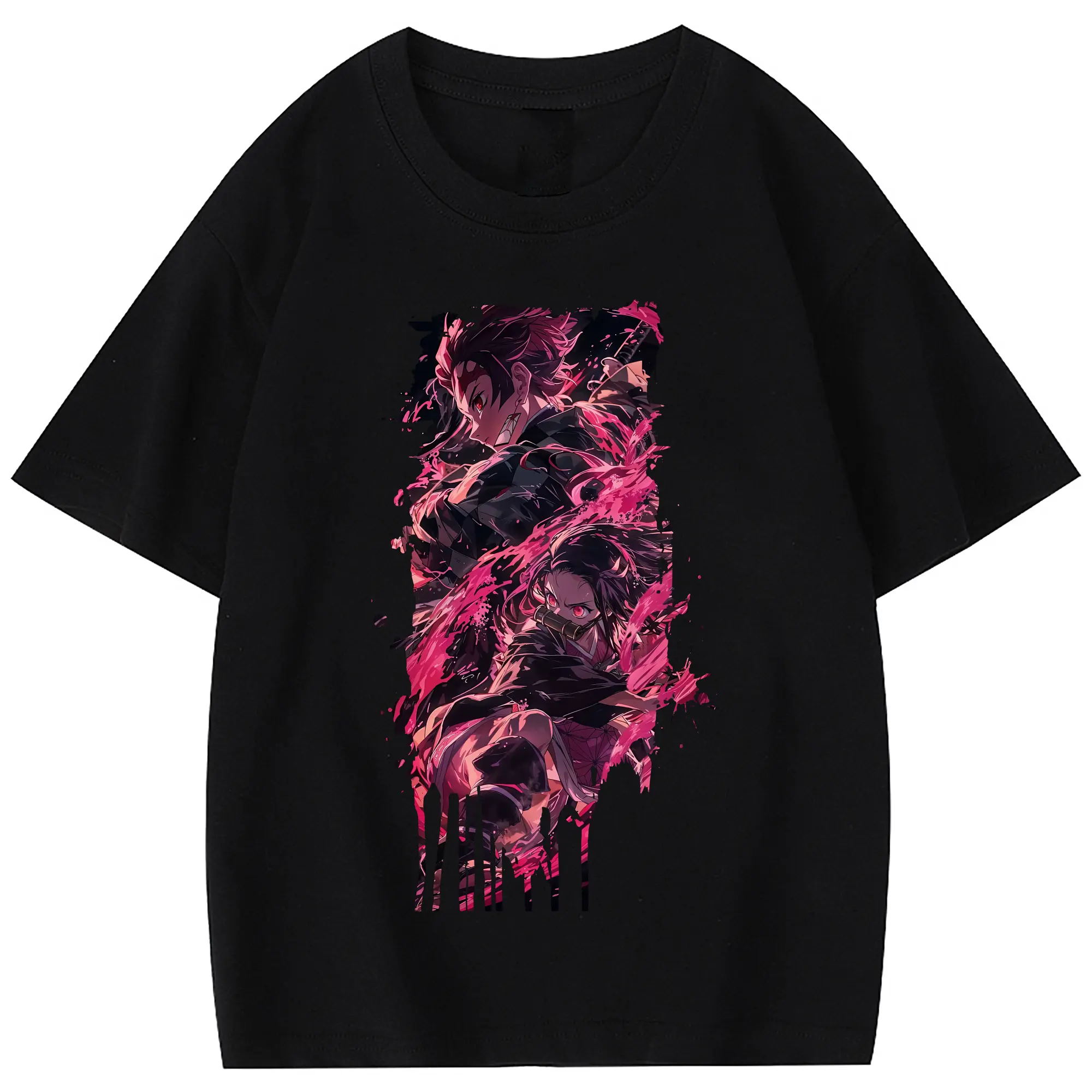 鬼滅の刃 グッズ,竈門 炭治郎 - 綿100% 半袖Tシャツ ・ バックプリント ・ 快適 通気性 ・ 日常使い 散歩 スポーツ用
