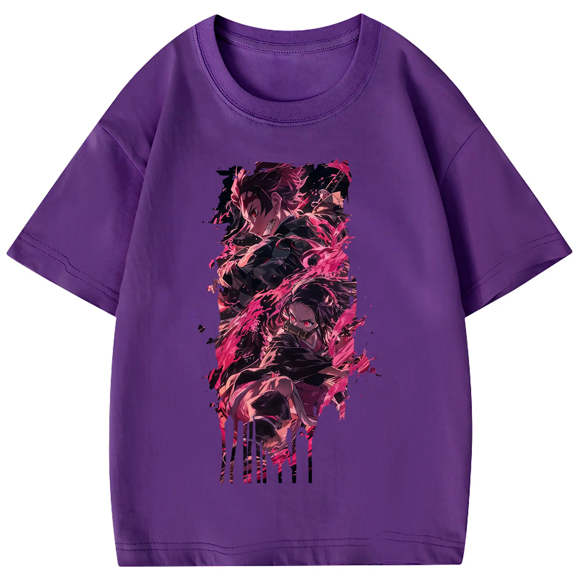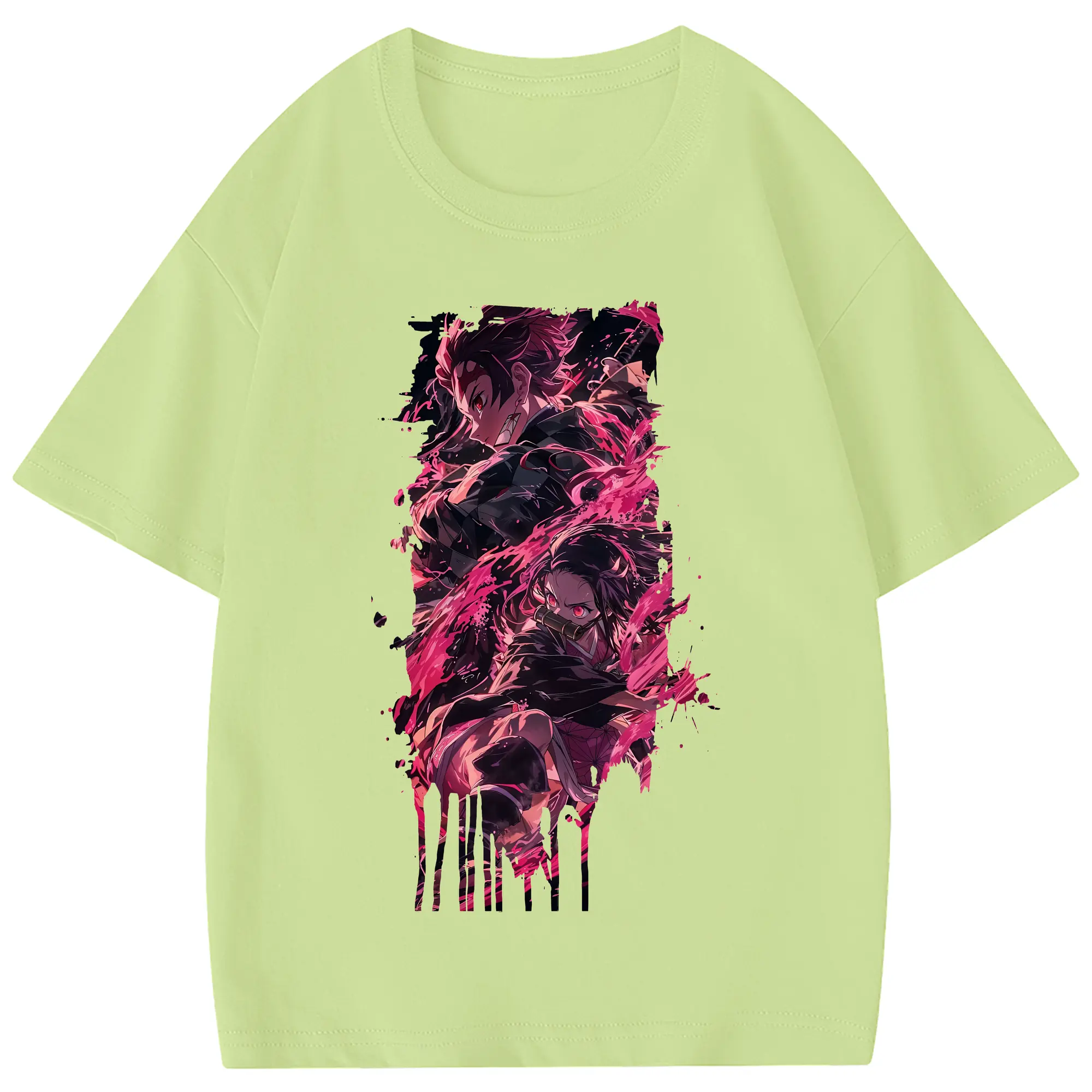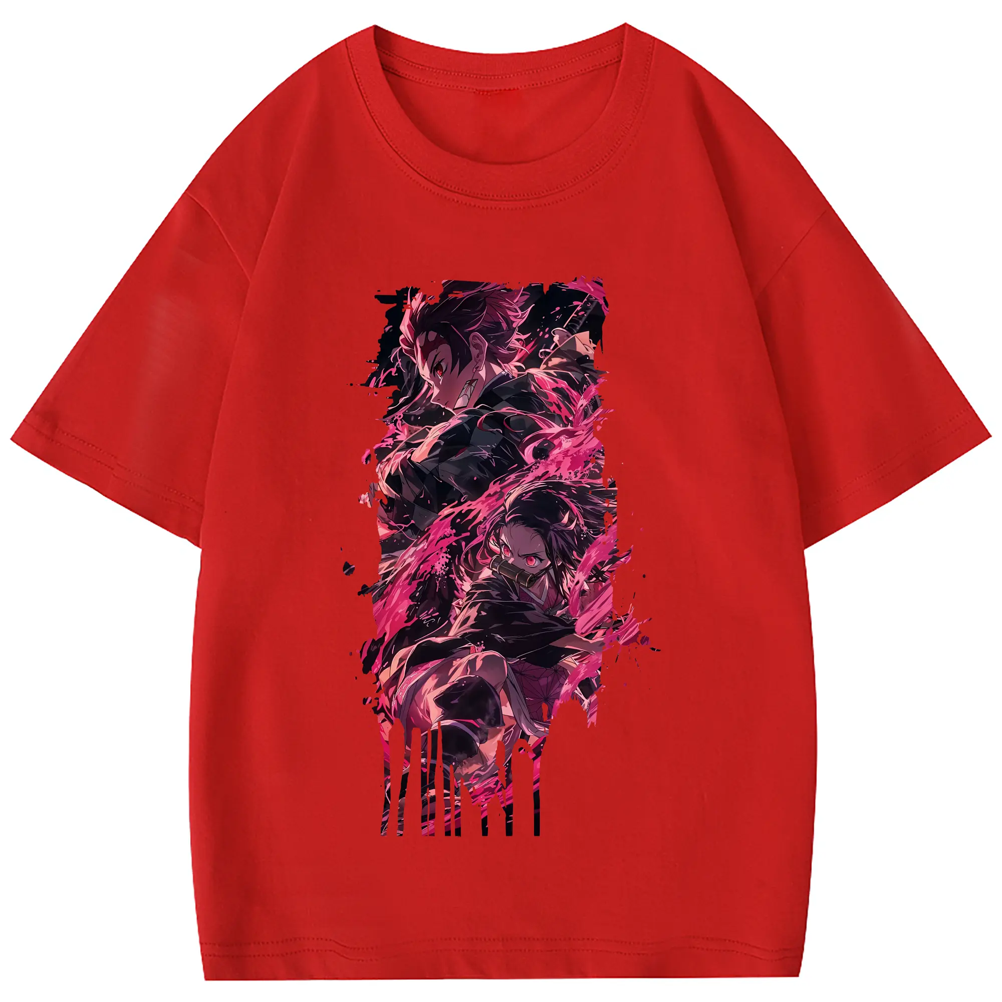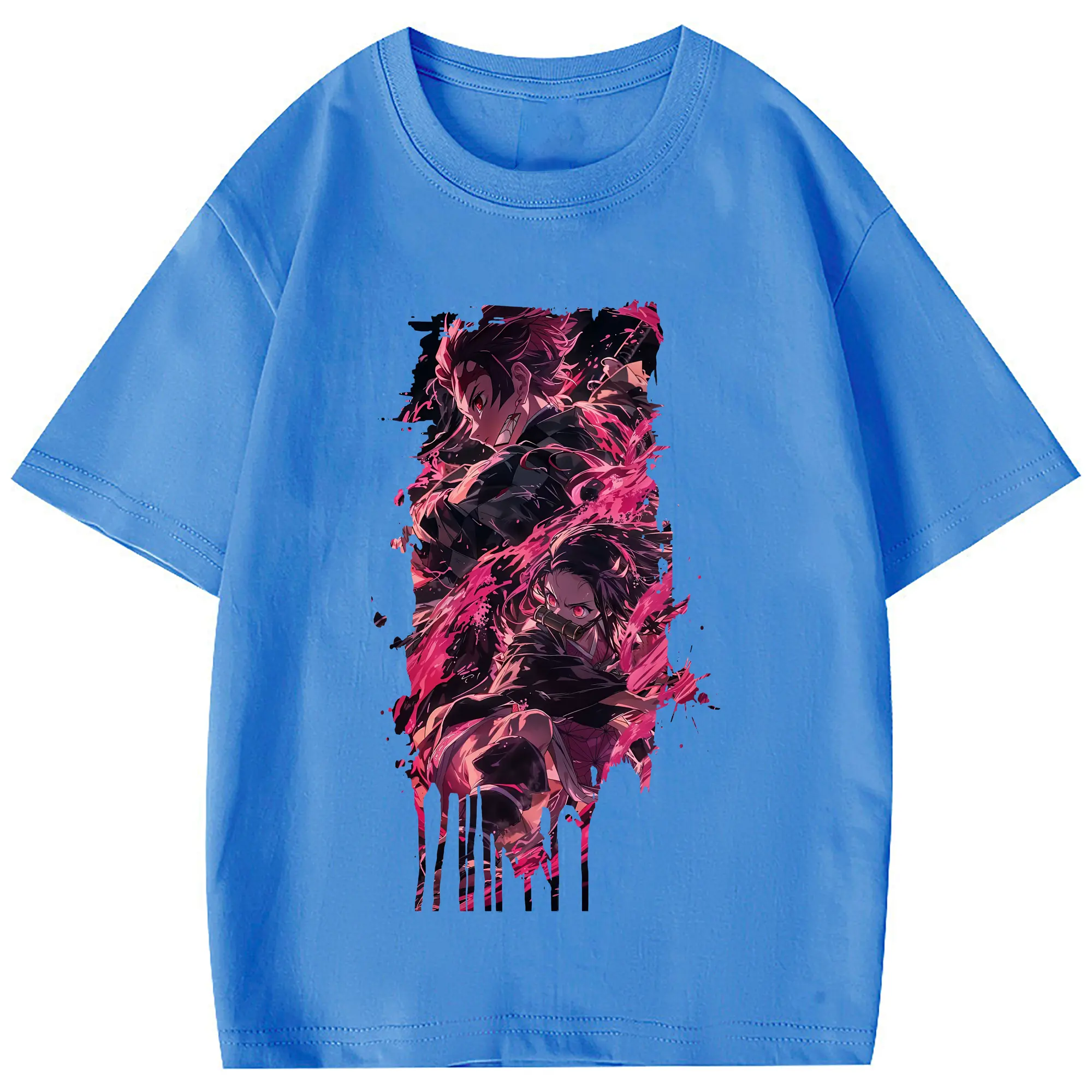 鬼滅の刃 グッズ,竈門 炭治郎 - 綿100% 半袖Tシャツ ・ フロントプリント ・ 快適 通気性 ・ 日常使い 散歩 スポーツ用