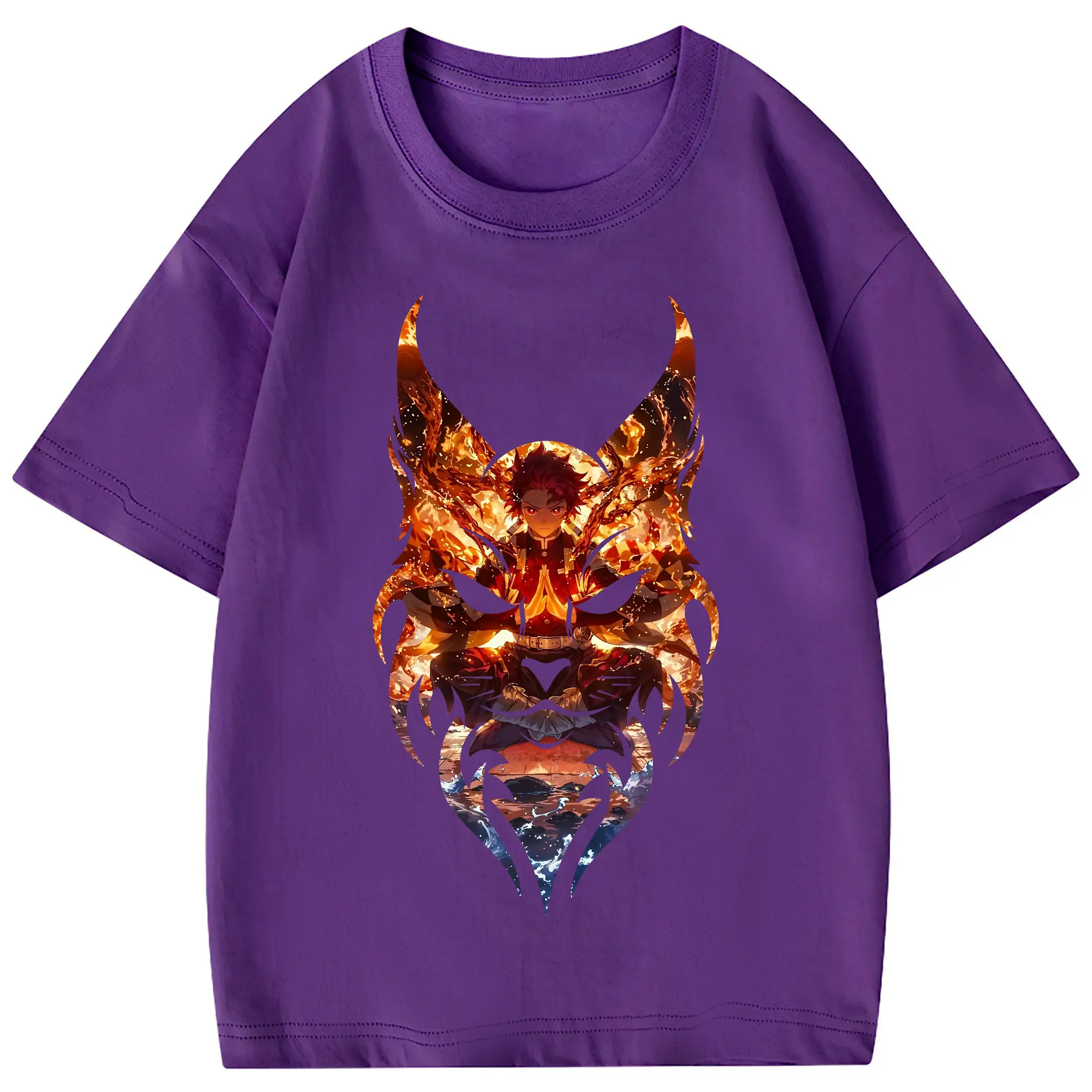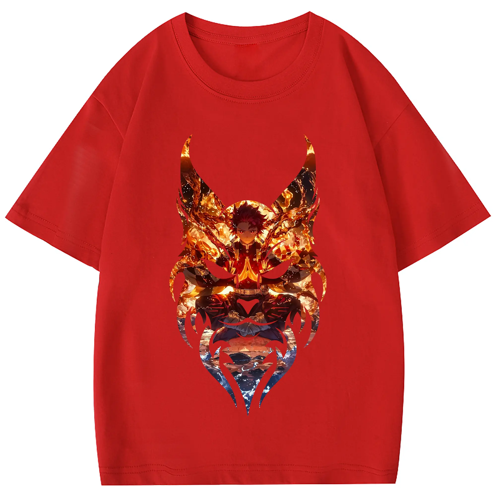 鬼滅の刃 グッズ,竈門 炭治郎 - 綿100% 半袖Tシャツ ・ フロントプリント ・ 快適 通気性 ・ 日常使い 散歩 スポーツ用
