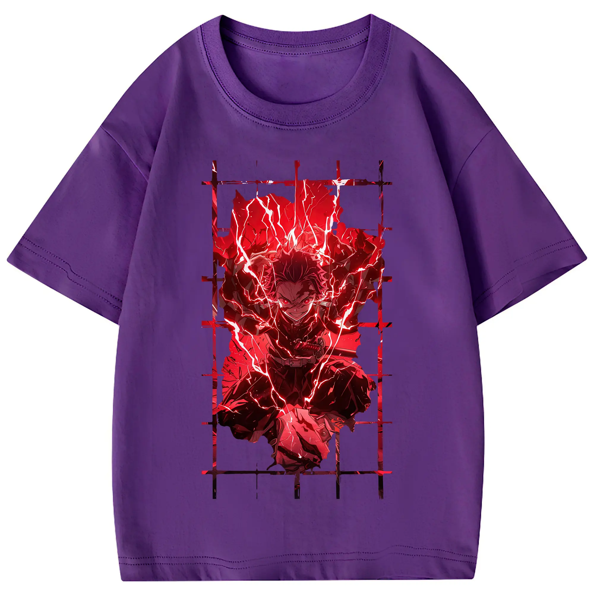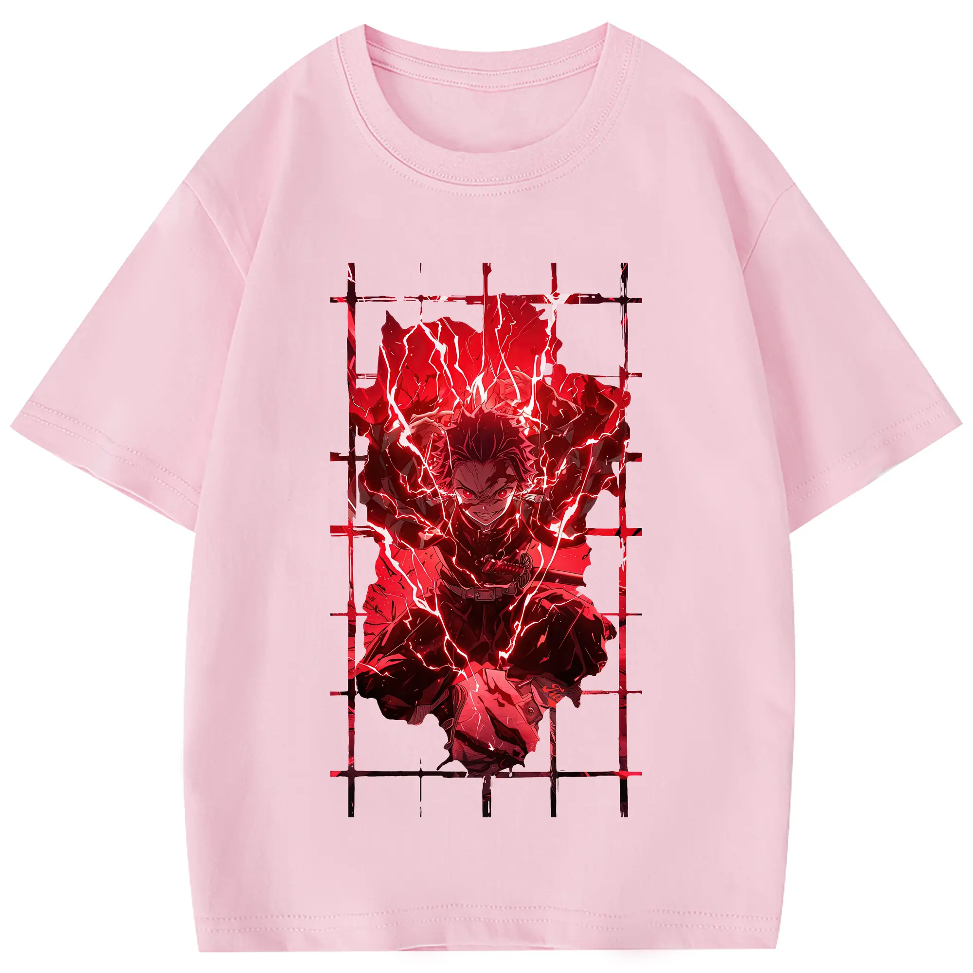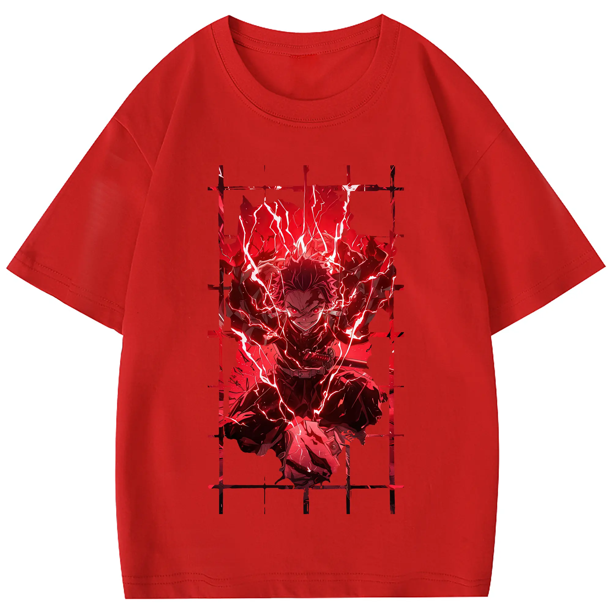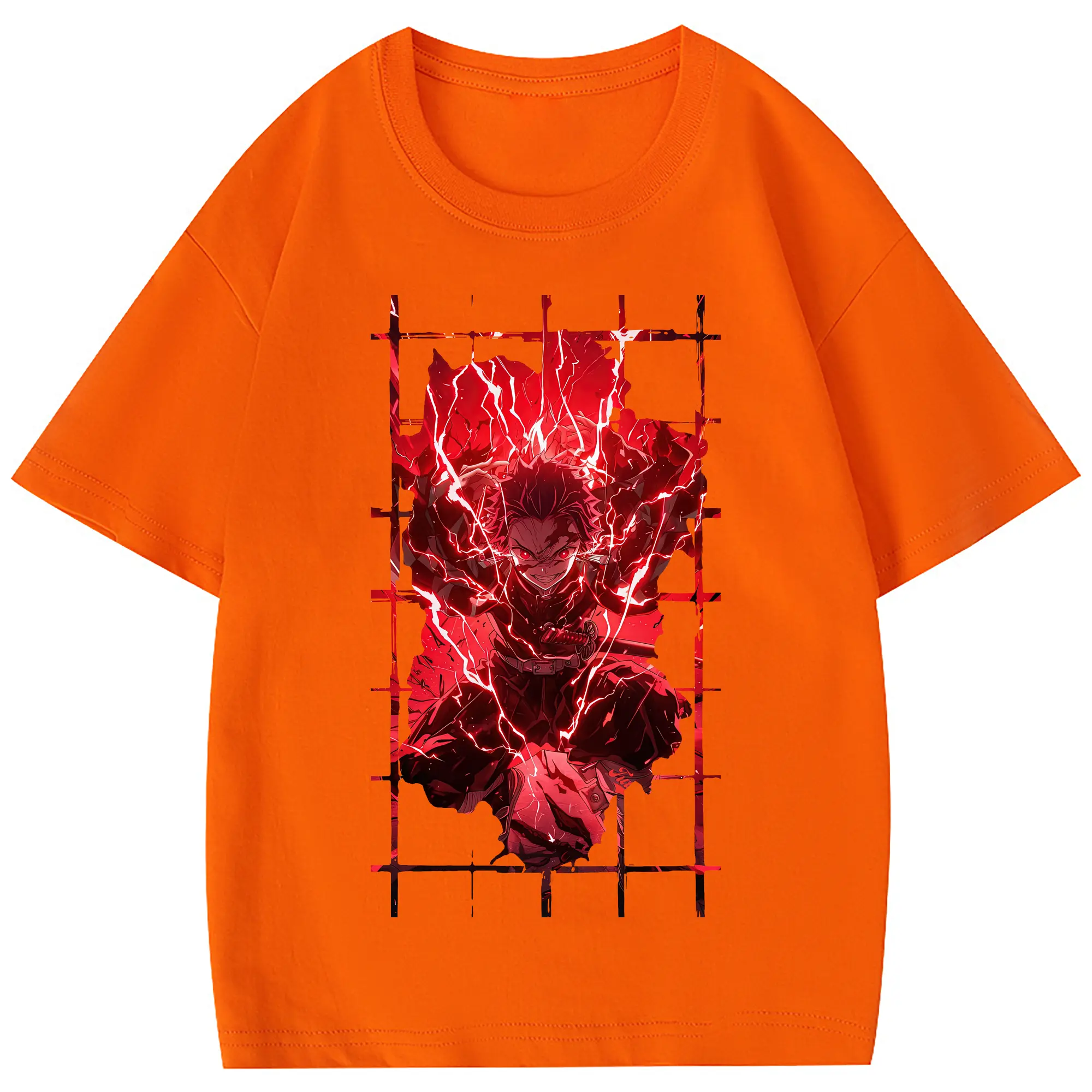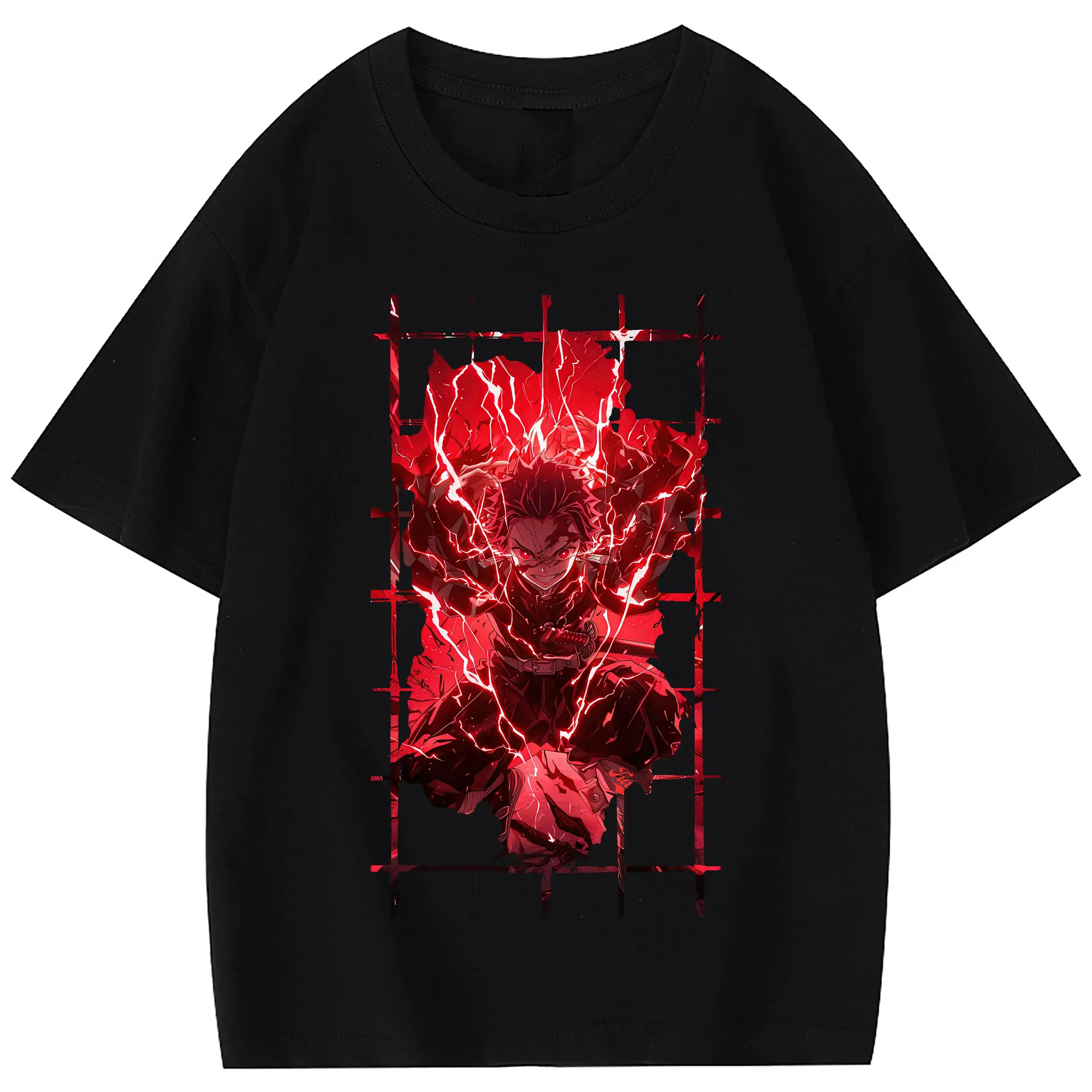 鬼滅の刃 グッズ,竈門 炭治郎 - 綿100% 半袖Tシャツ ・ フロントプリント ・ 快適 通気性 ・ 日常使い 散歩 スポーツ用