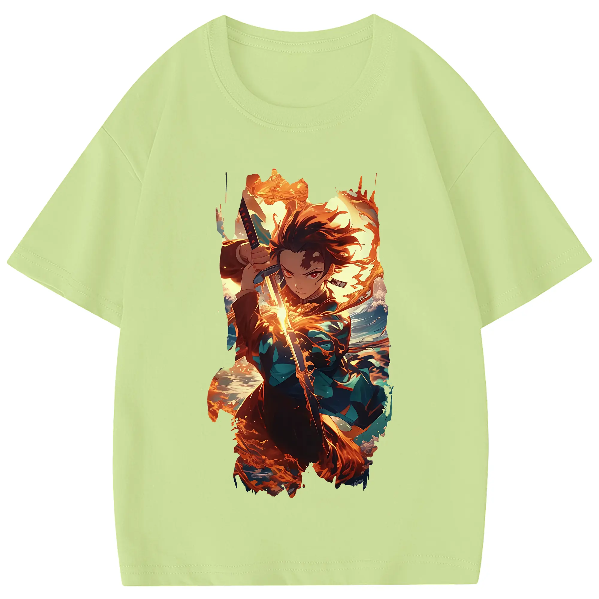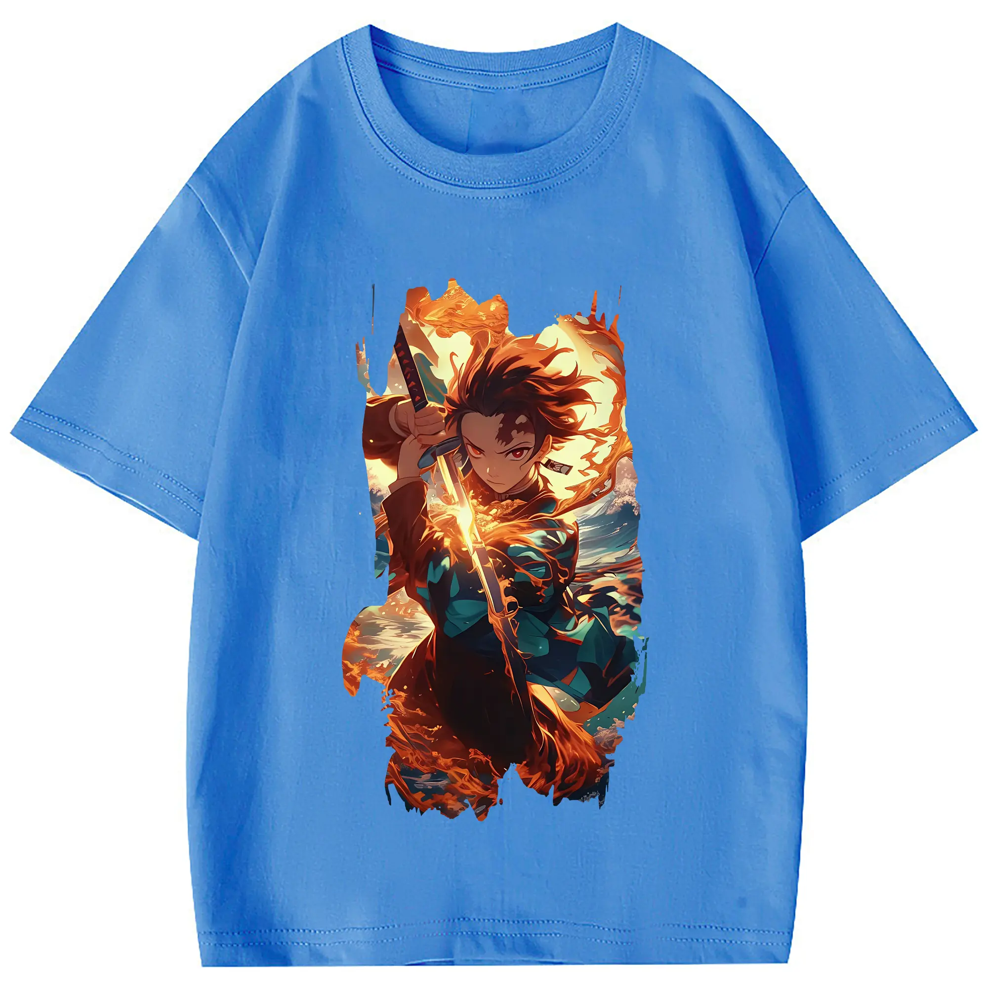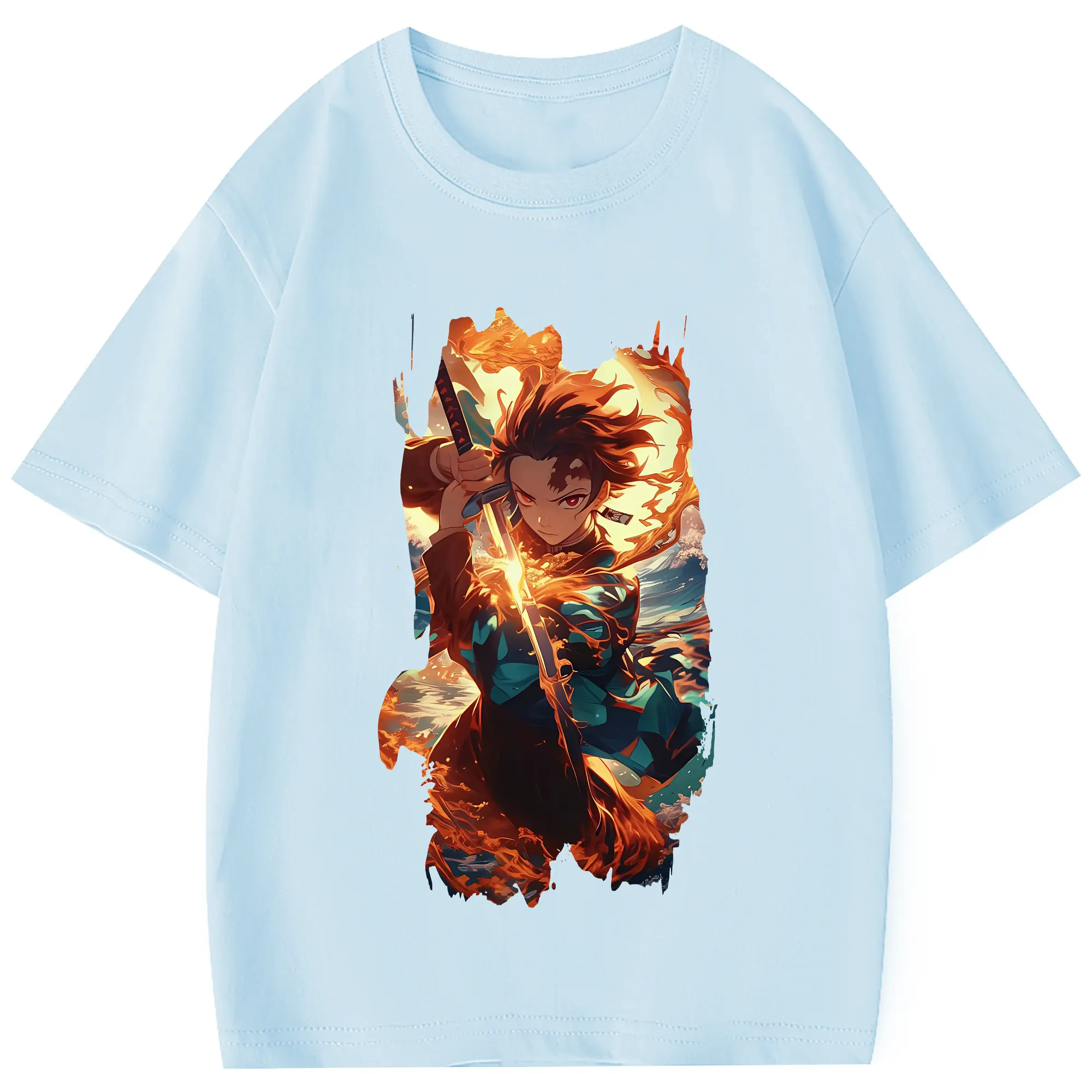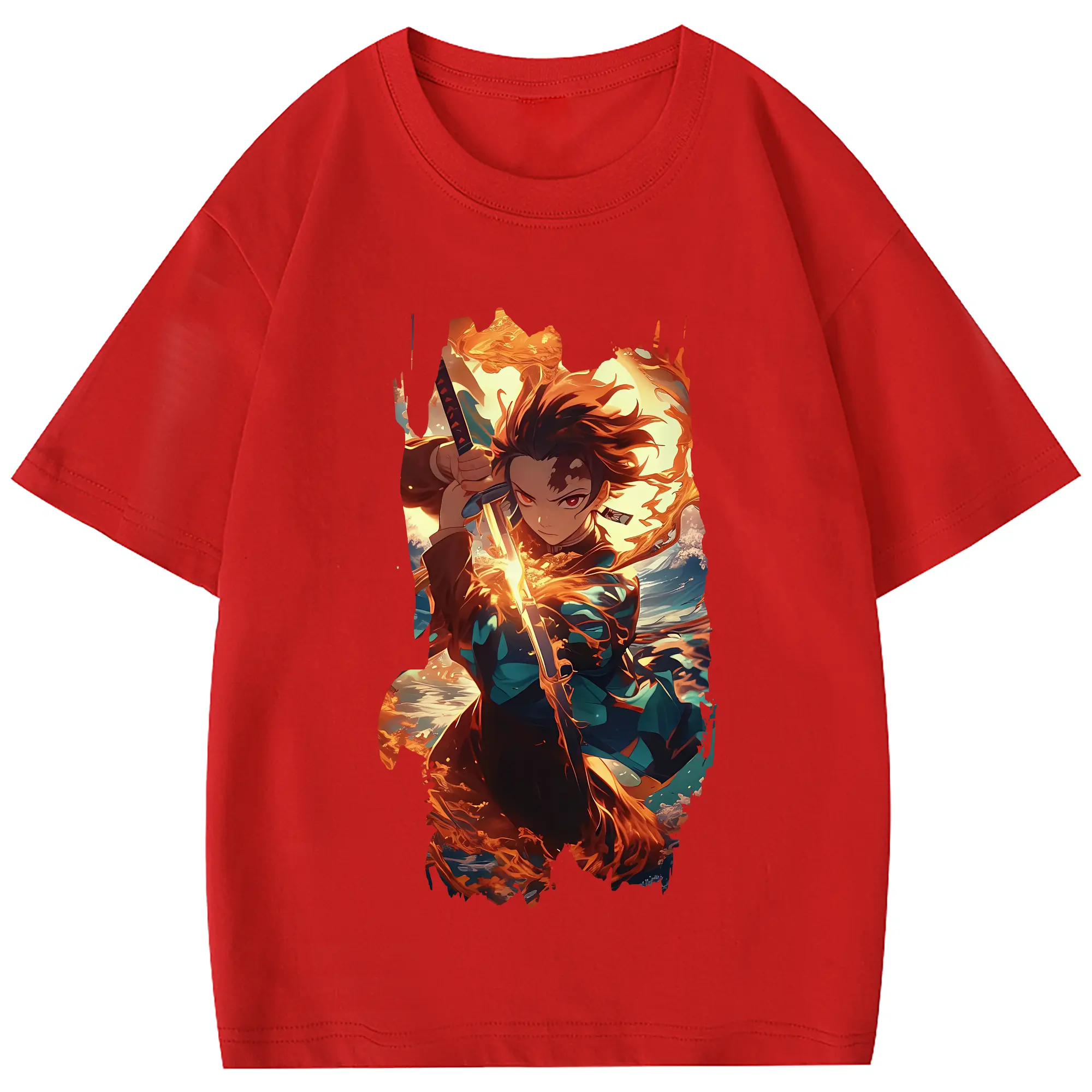 鬼滅の刃 グッズ,竈門 炭治郎 - 綿100% 半袖Tシャツ ・ フロントプリント ・ 快適 通気性 ・ 日常使い 散歩 スポーツ用