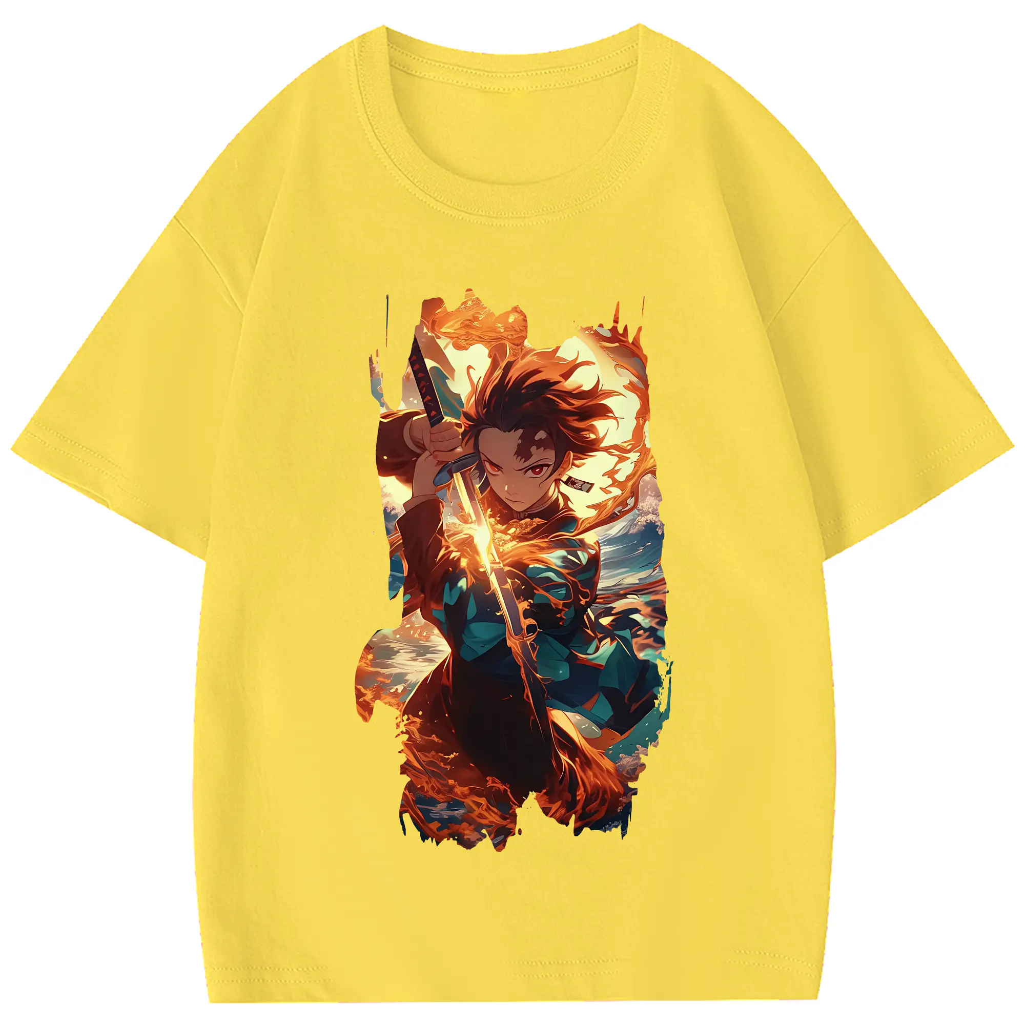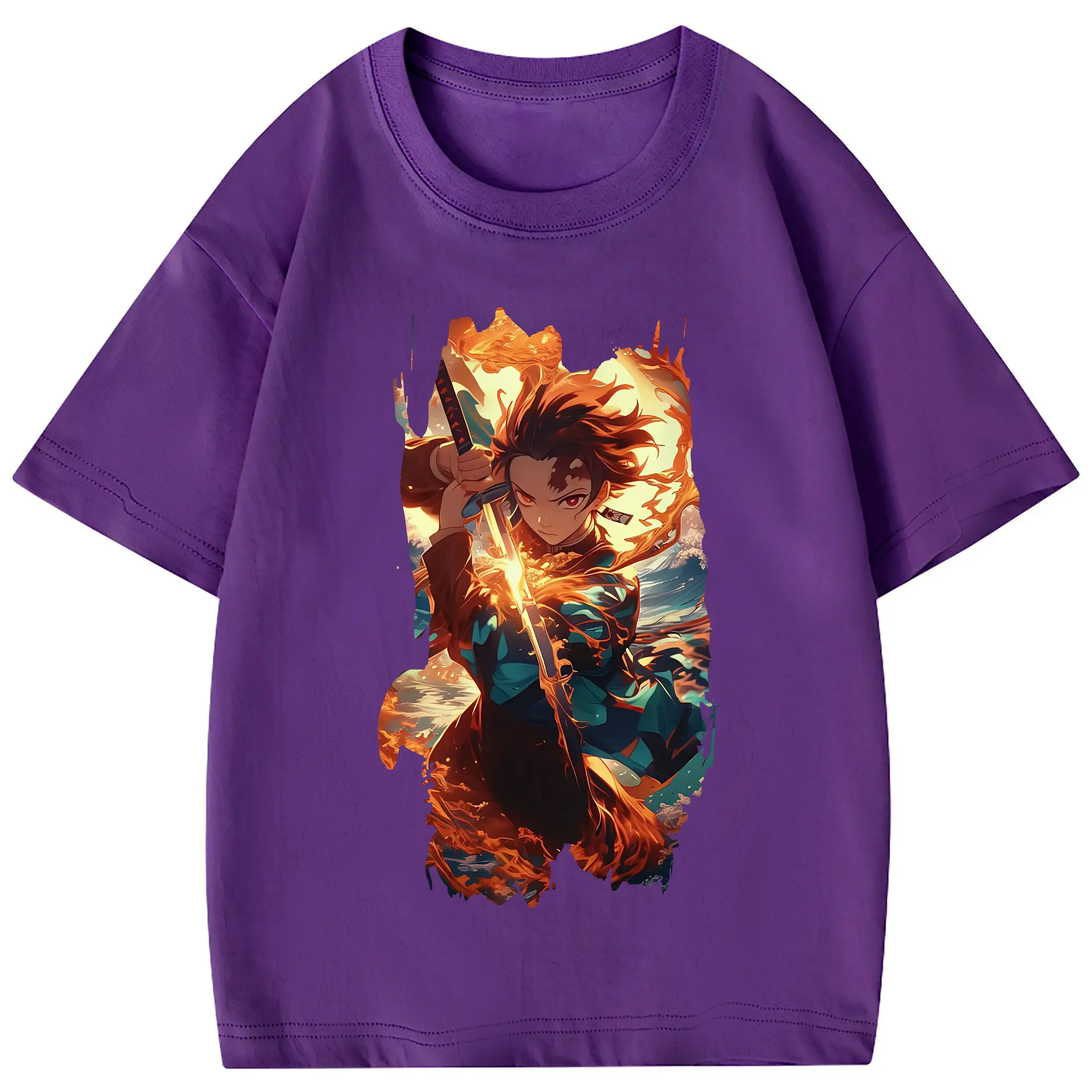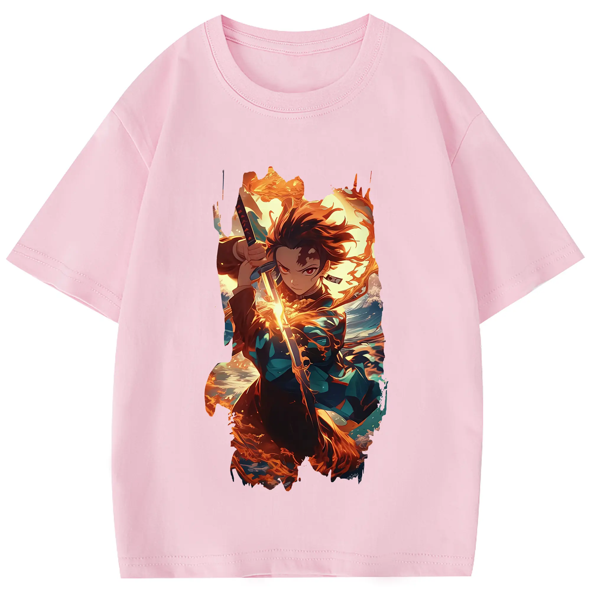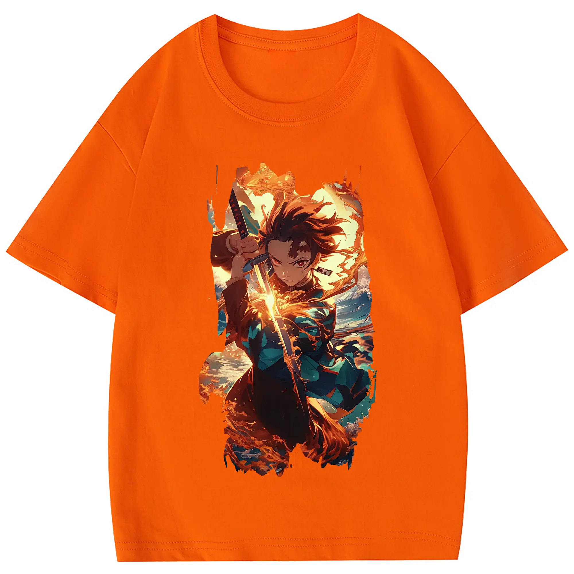 鬼滅の刃 グッズ,竈門 炭治郎 - 綿100% 半袖Tシャツ ・ フロントプリント ・ 快適 通気性 ・ 日常使い 散歩 スポーツ用