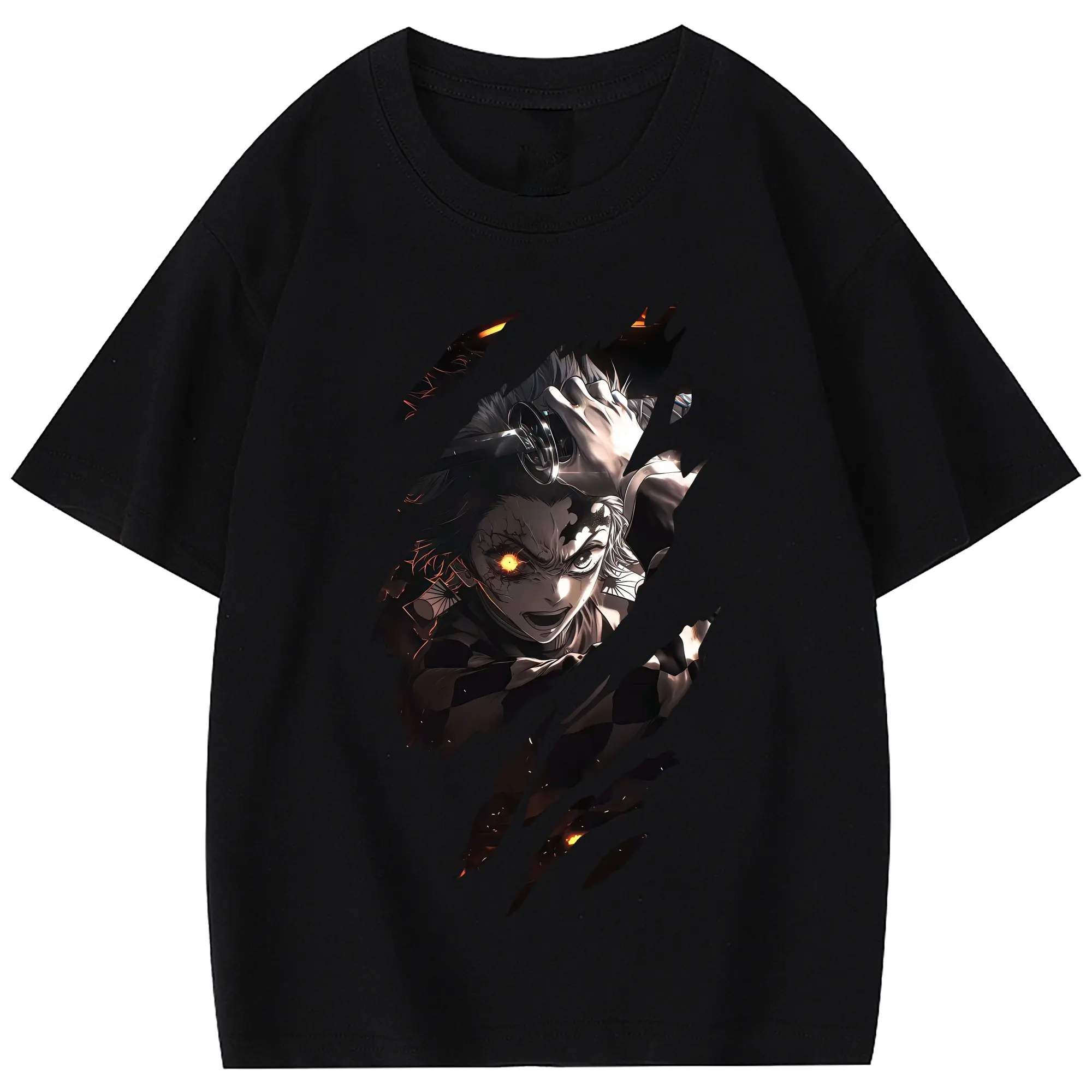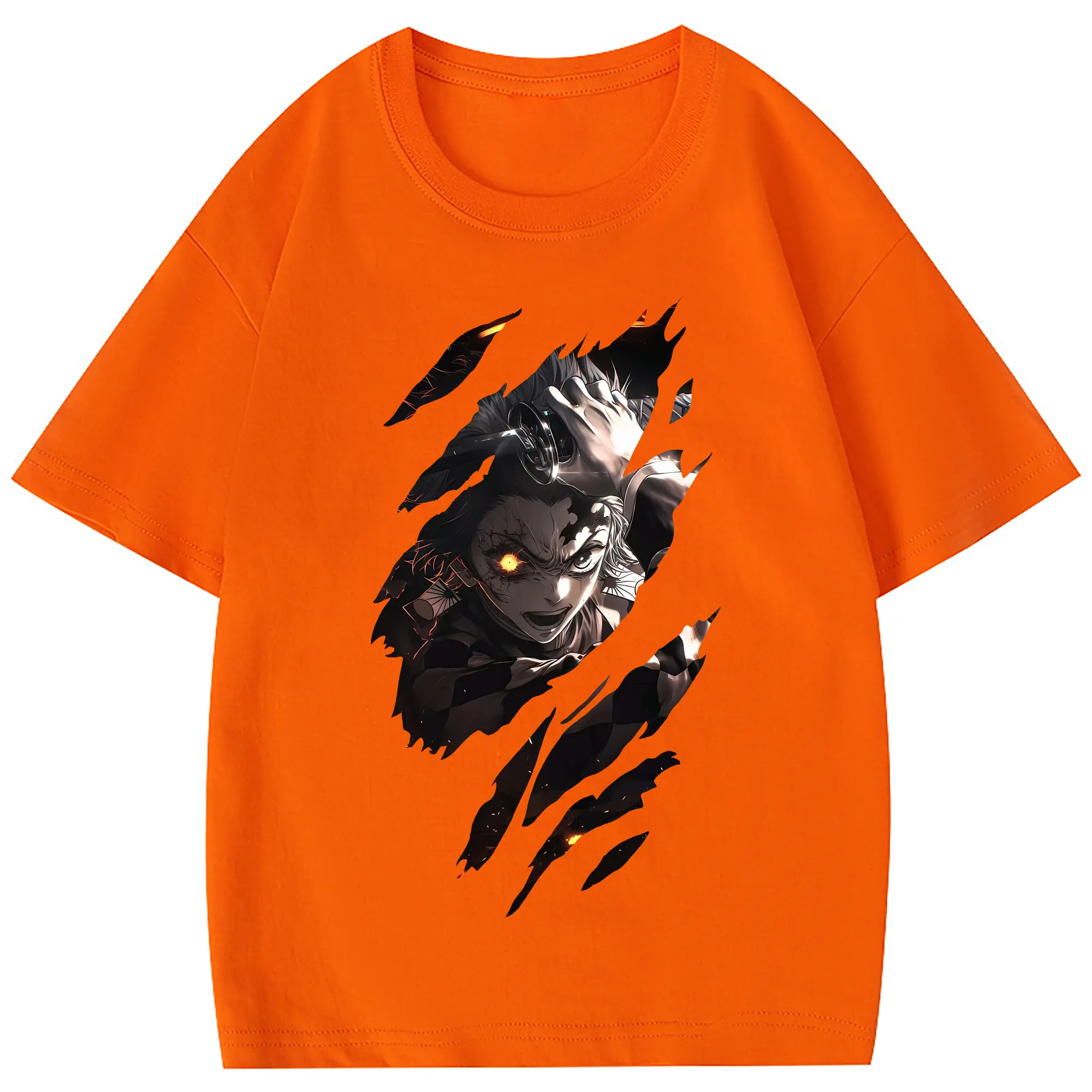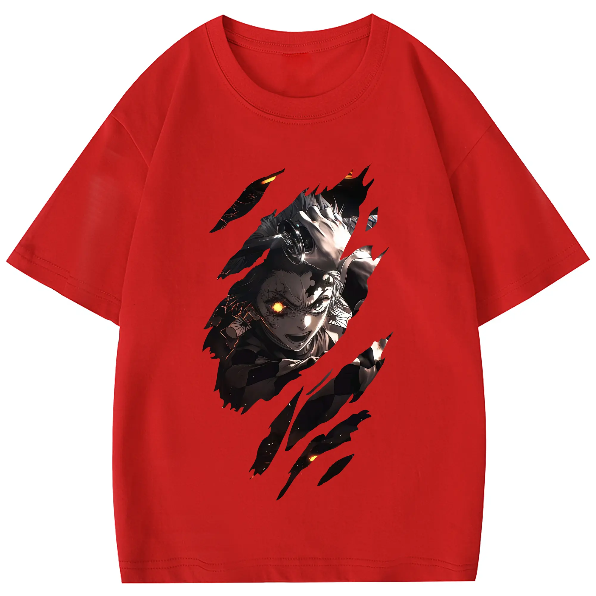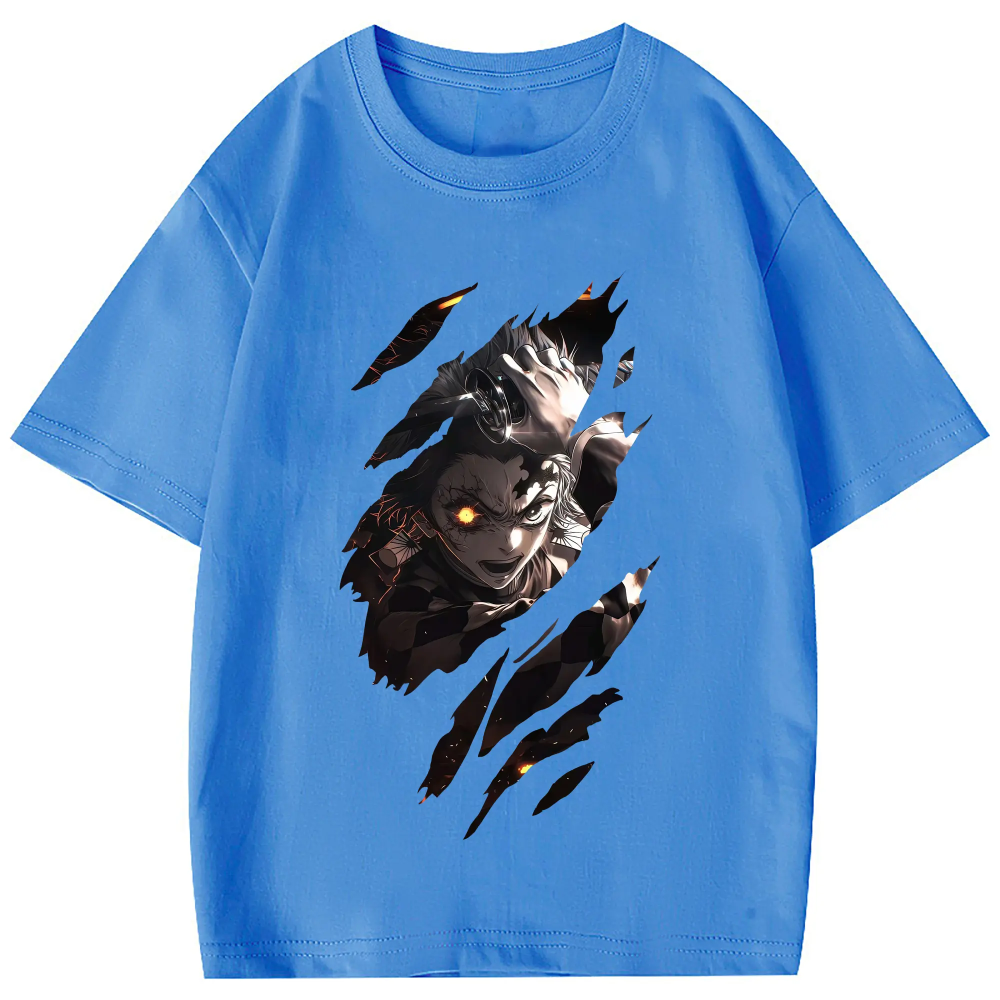鬼滅の刃 グッズ,竈門 炭治郎 - 綿100% 半袖Tシャツ ・ フロントプリント ・ 快適 通気性 ・ 日常使い 散歩 スポーツ用