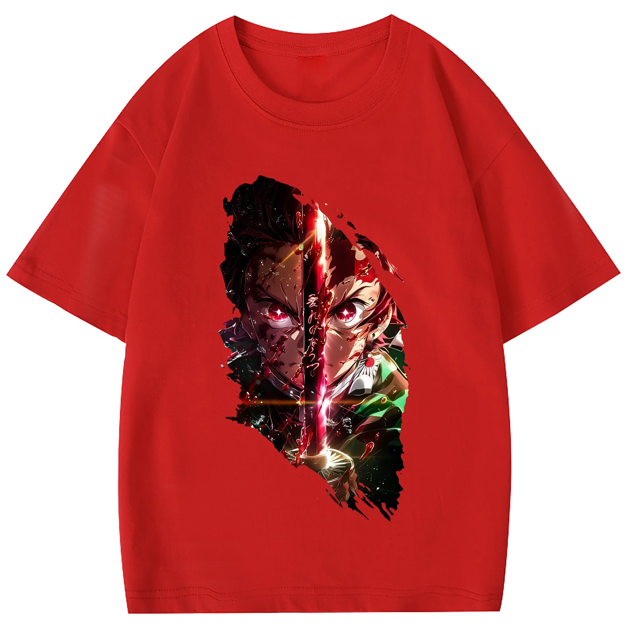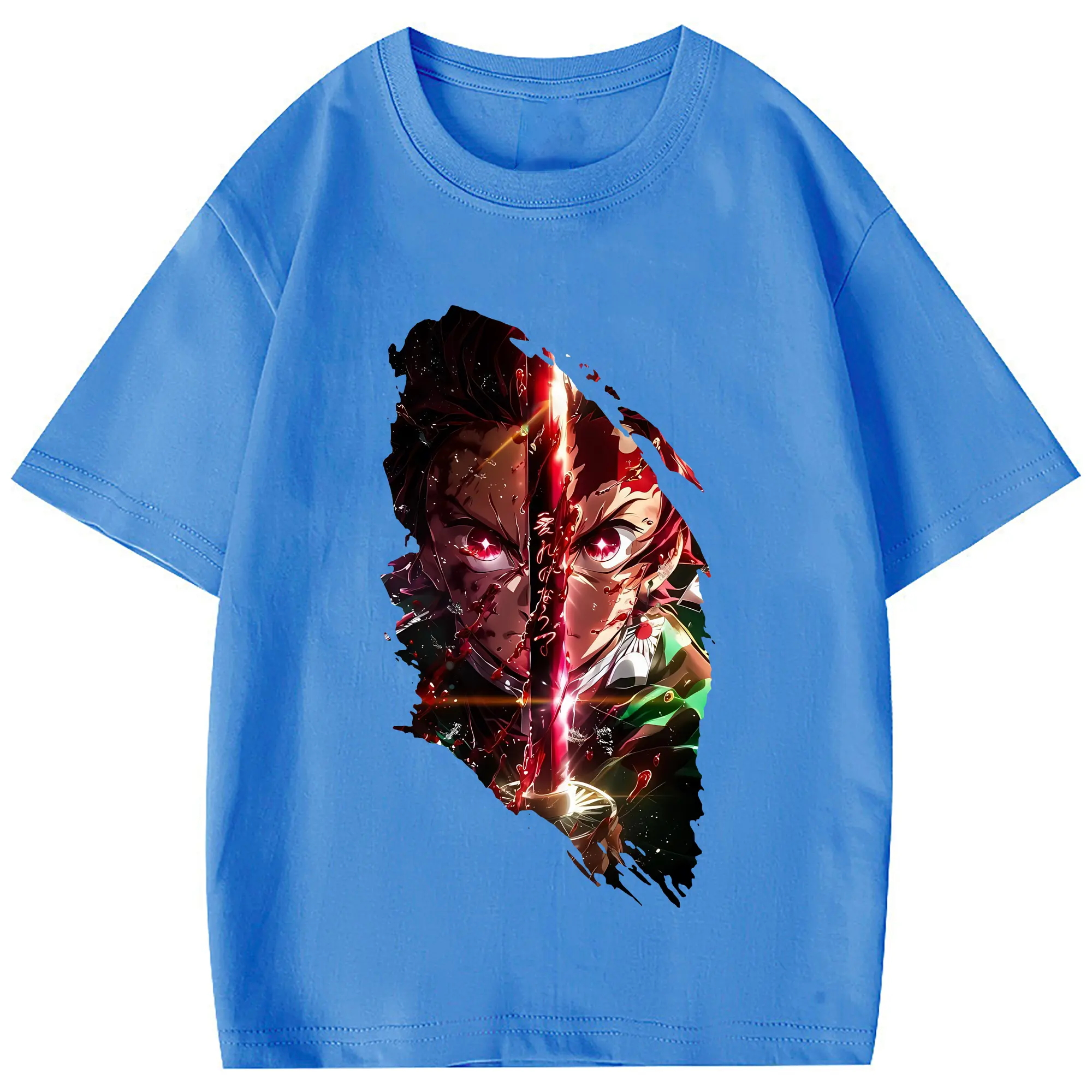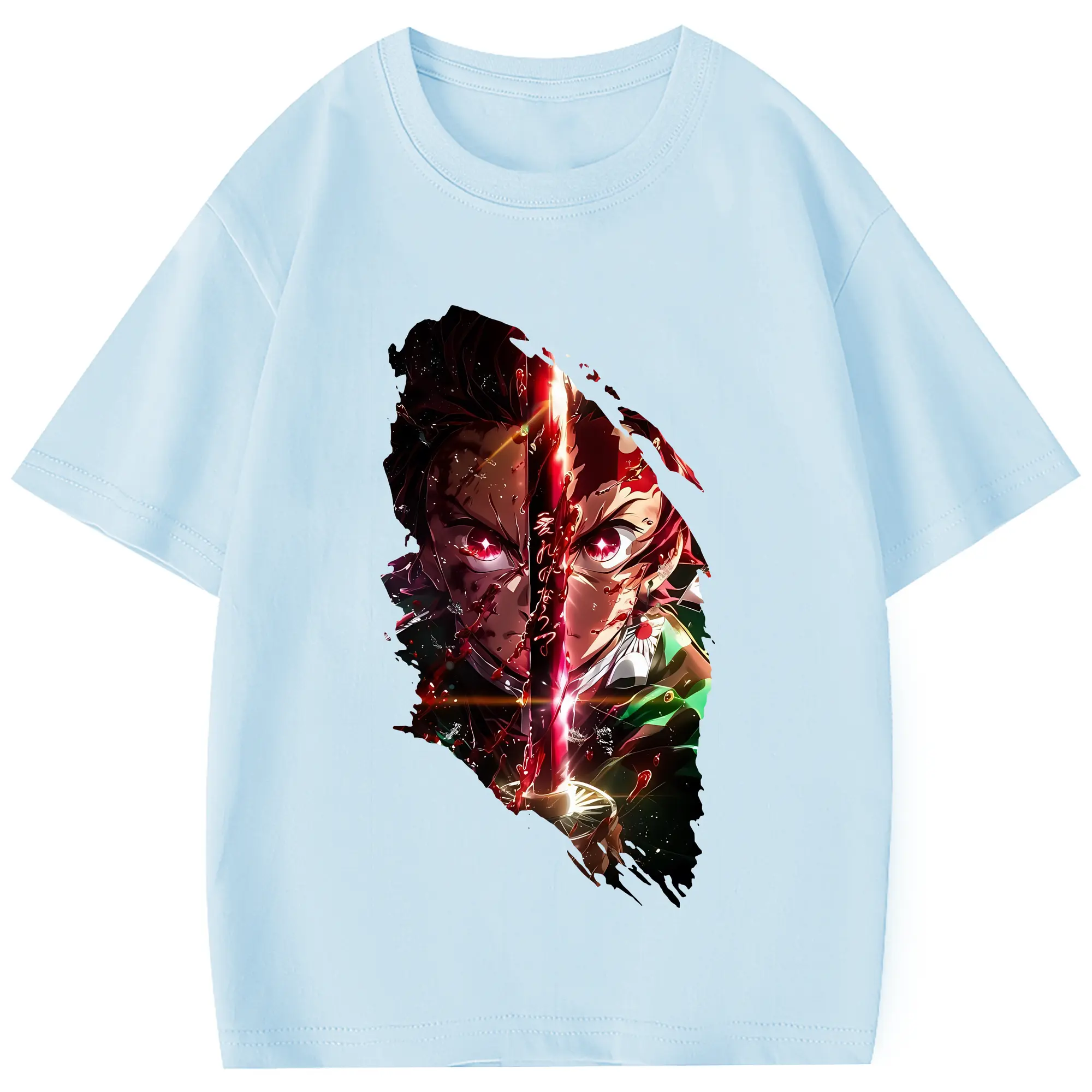 鬼滅の刃 グッズ,竈門 炭治郎 - 綿100% 半袖Tシャツ ・ フロントプリント ・ 快適 通気性 ・ 日常使い 散歩 スポーツ用