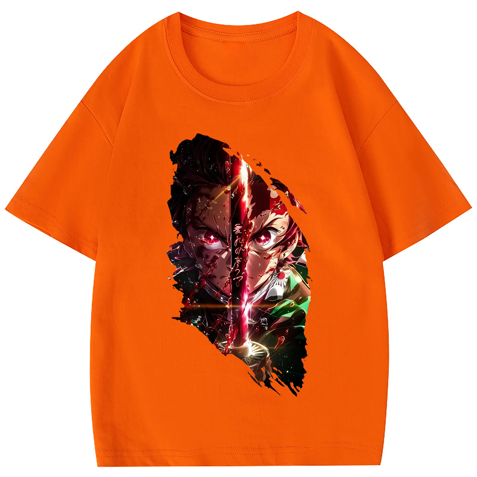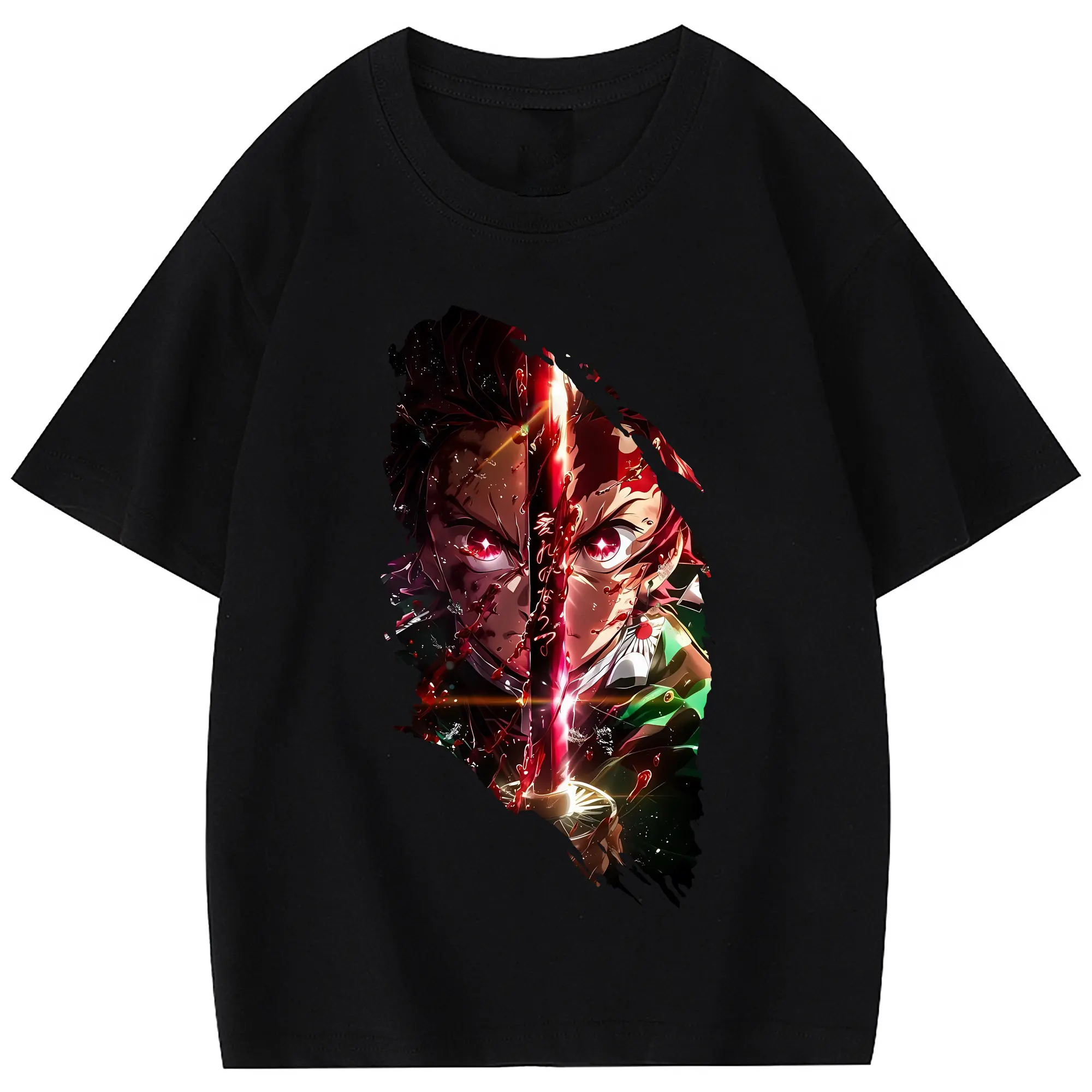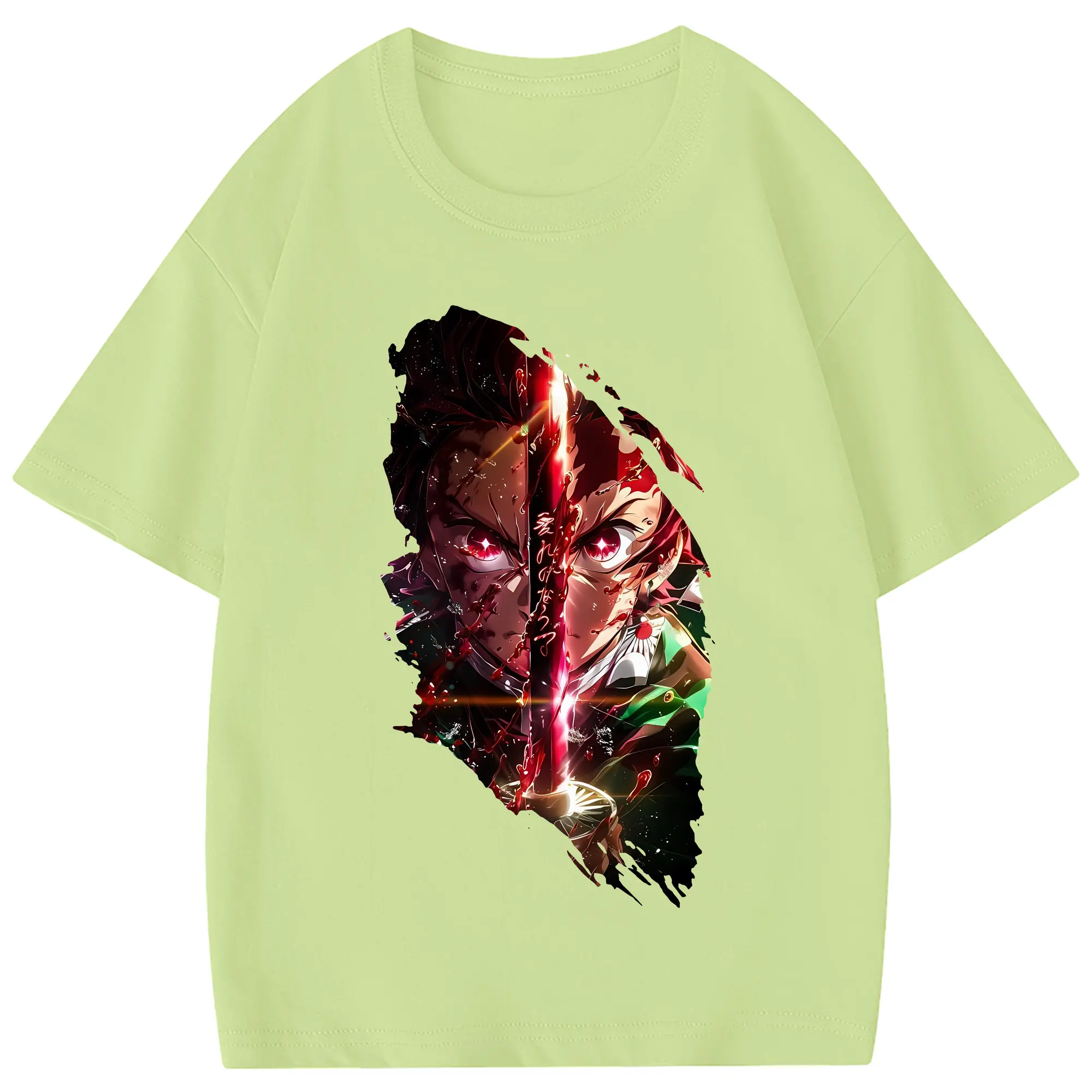 鬼滅の刃 グッズ,竈門 炭治郎 - 綿100% 半袖Tシャツ ・ フロントプリント ・ 快適 通気性 ・ 日常使い 散歩 スポーツ用