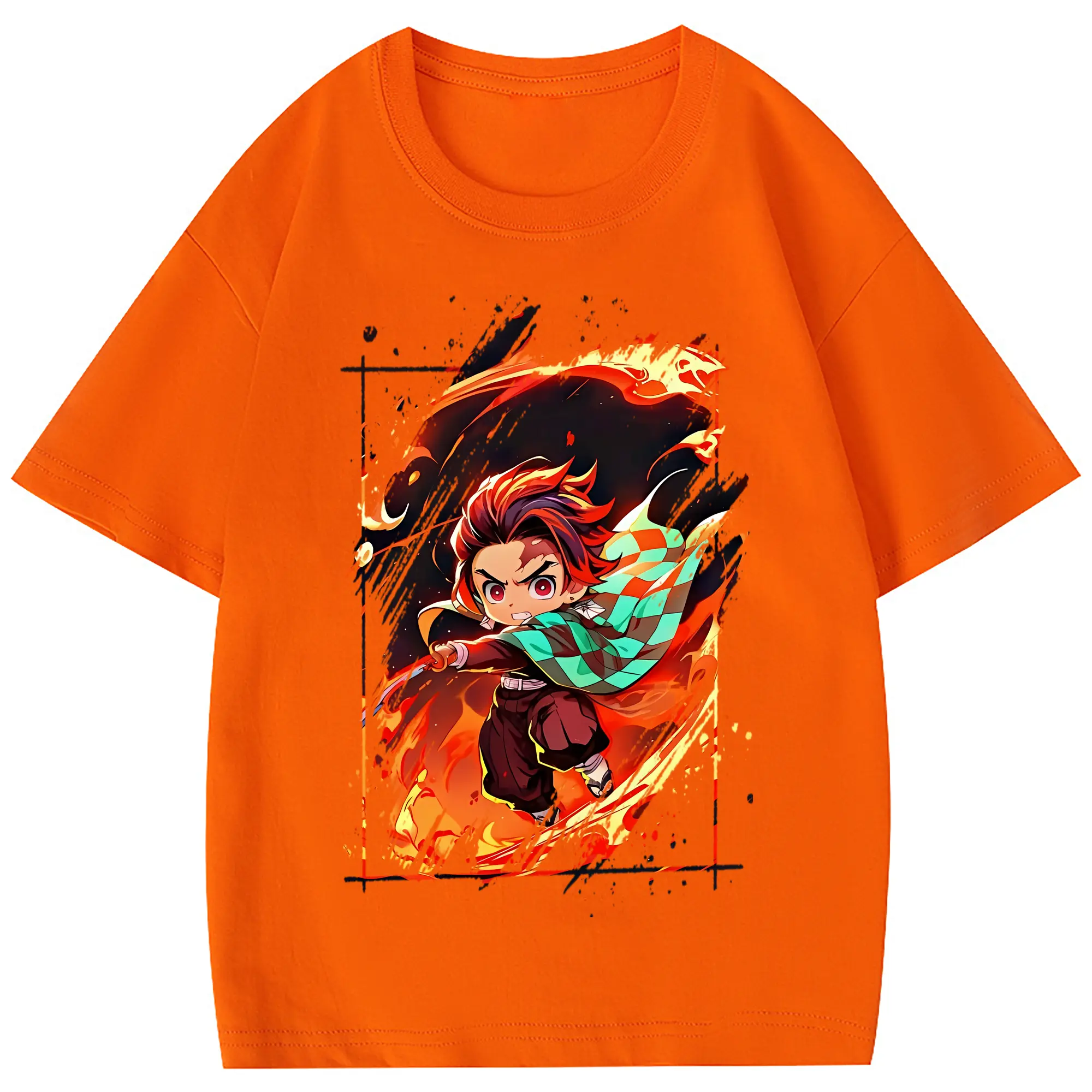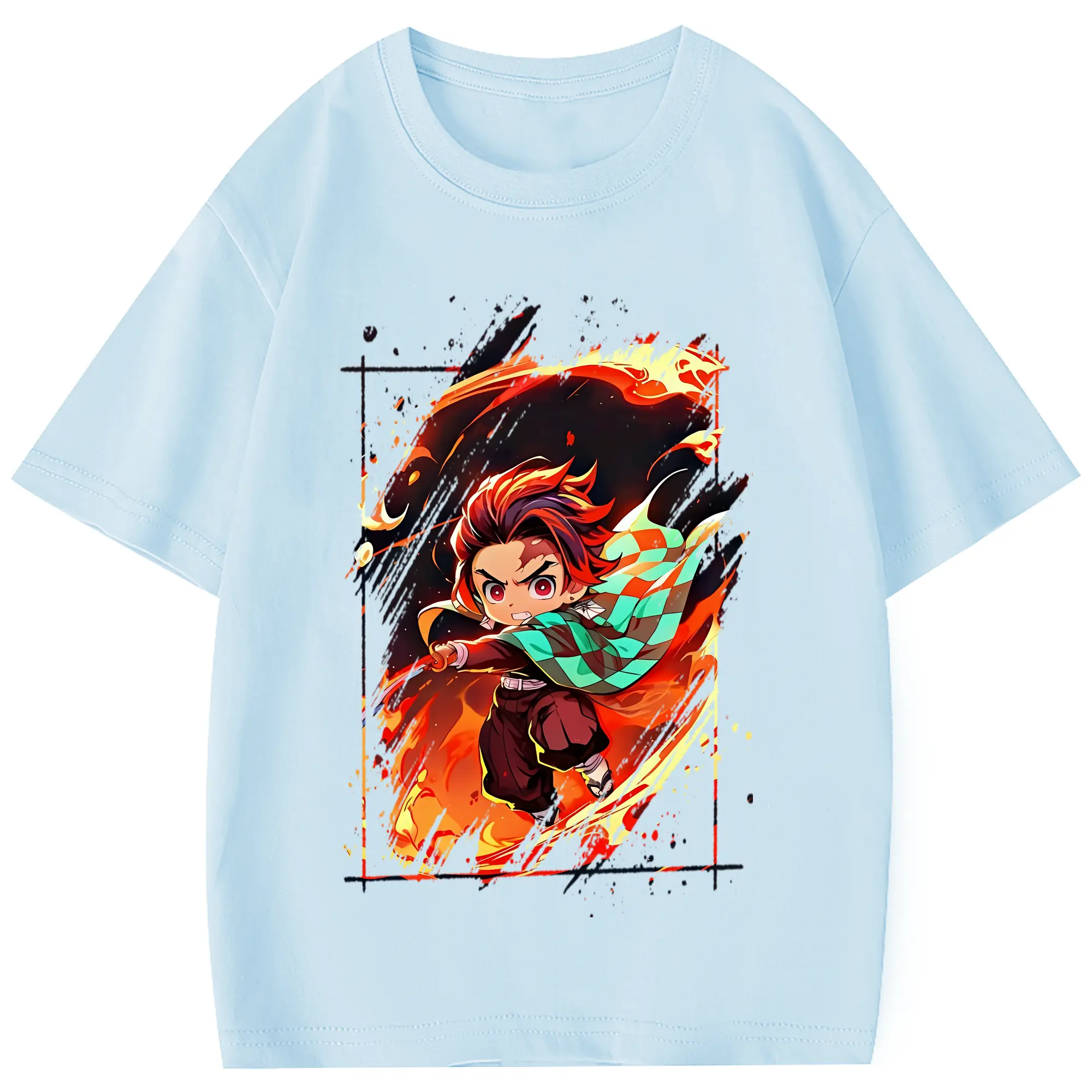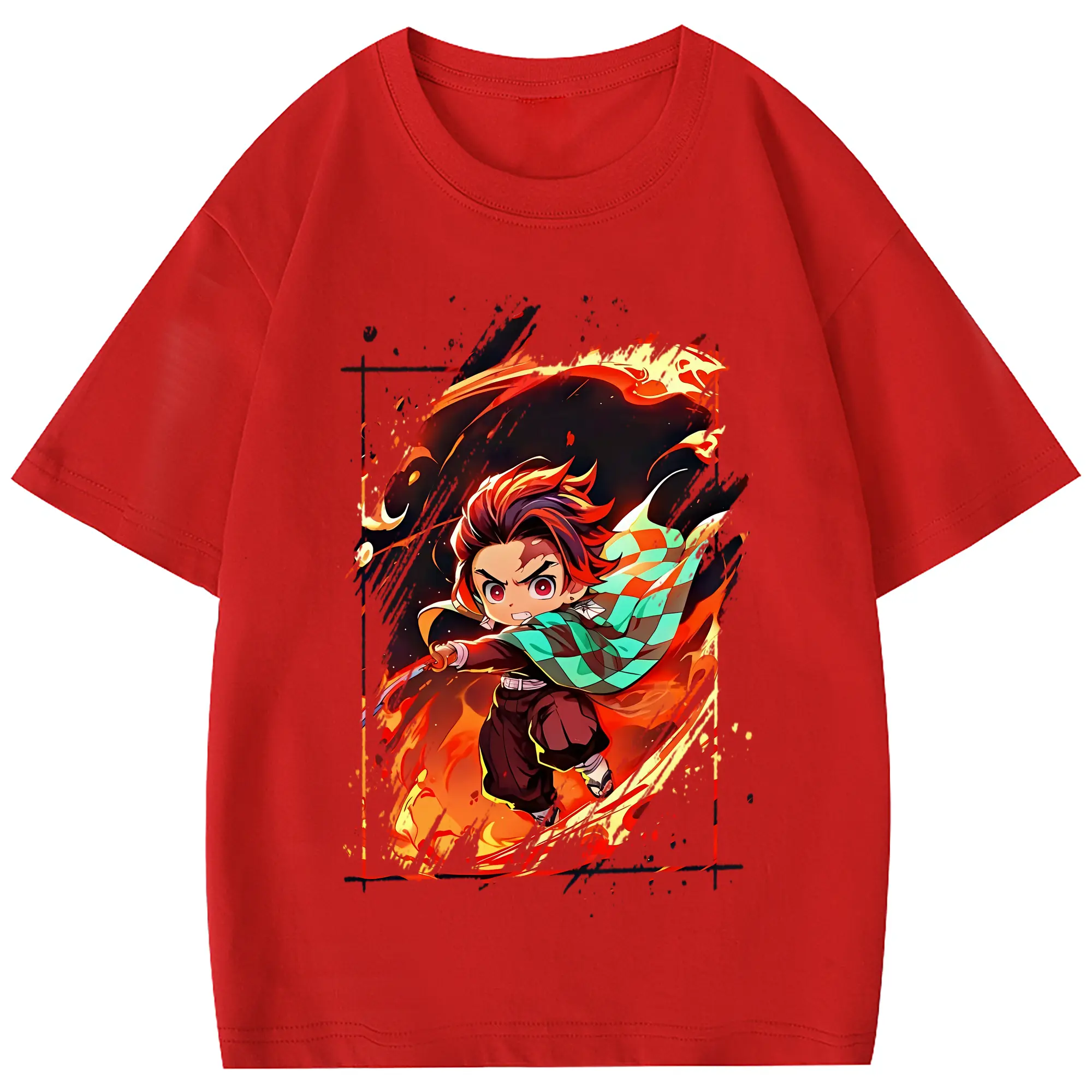 鬼滅の刃 グッズ,竈門 炭治郎 - 綿100% 半袖Tシャツ ・ フロントプリント ・ 快適 通気性 ・ 日常使い 散歩 スポーツ用
