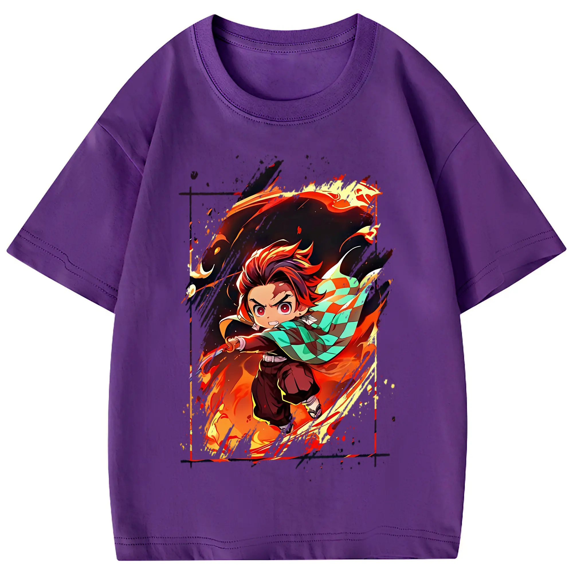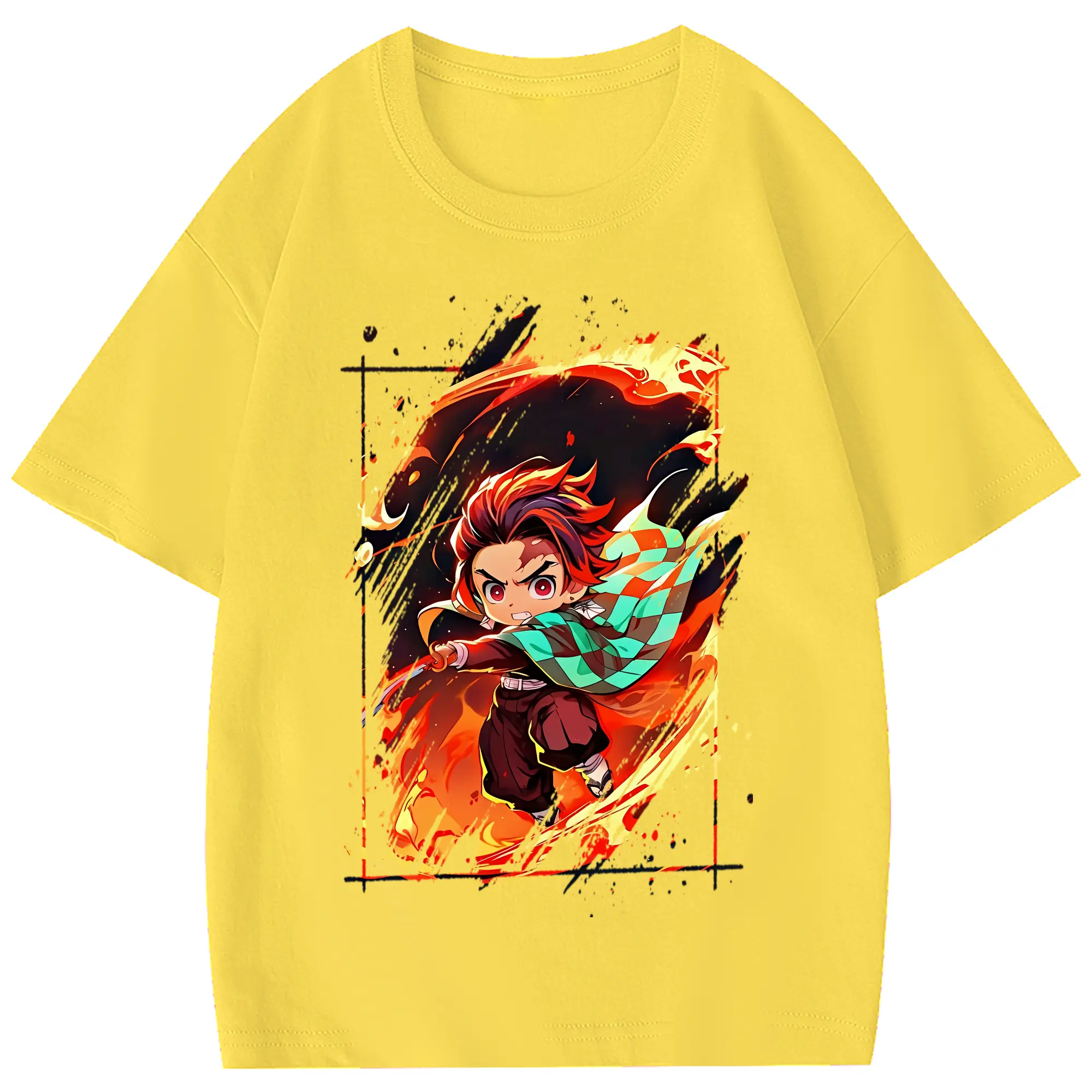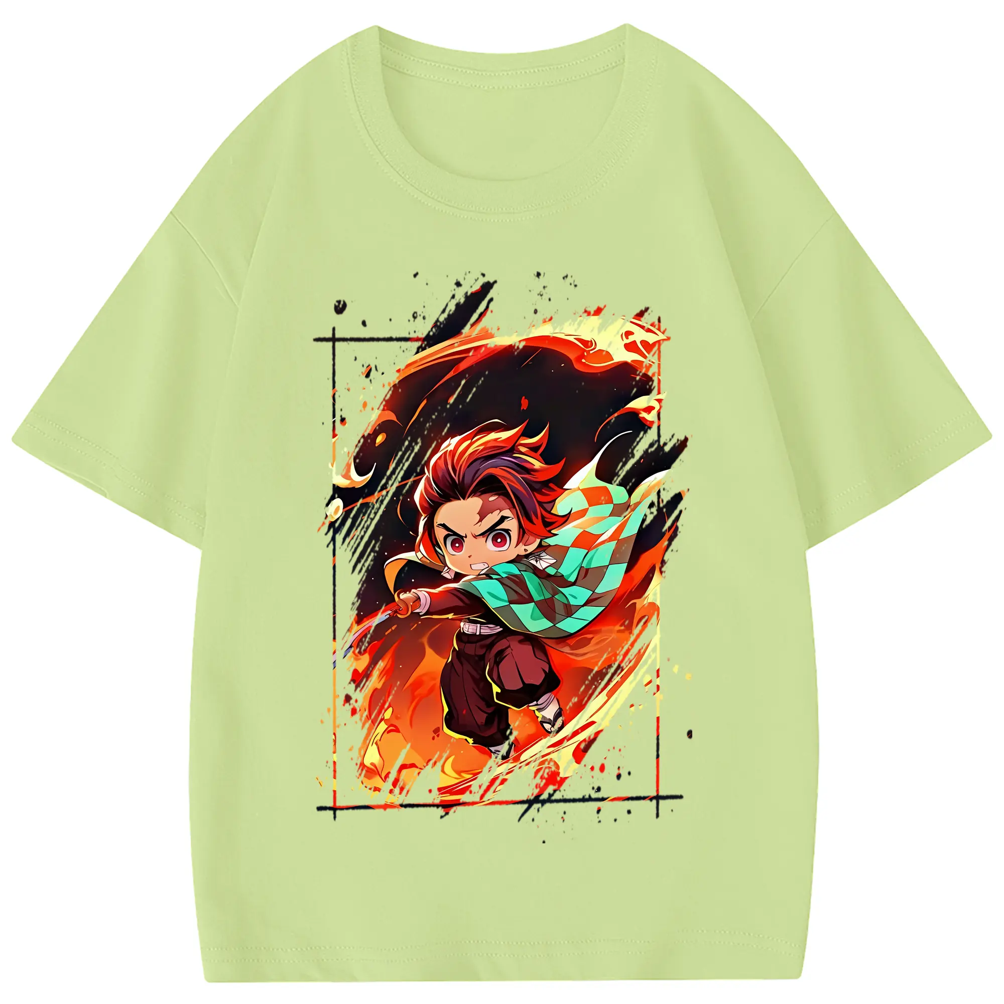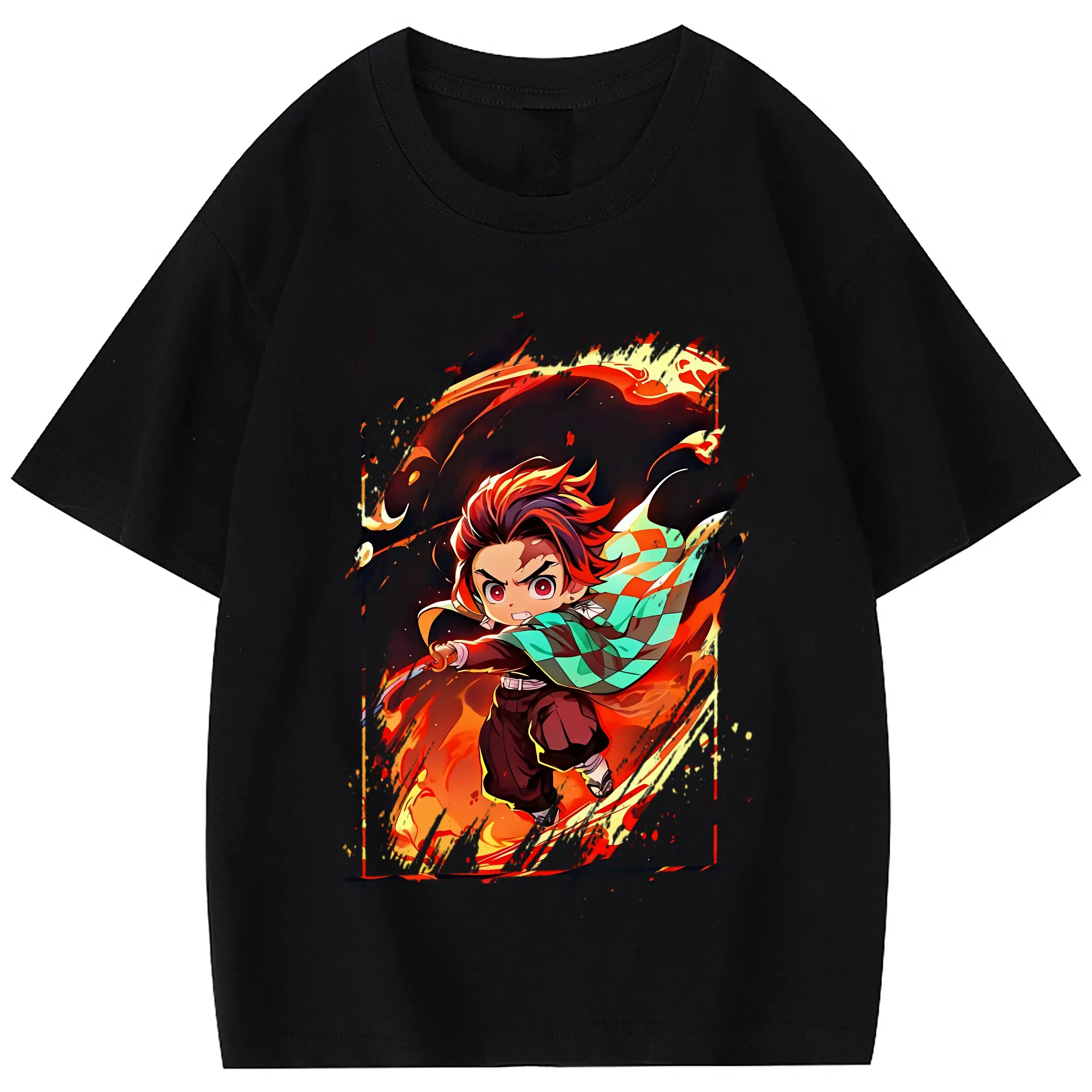 鬼滅の刃 グッズ,竈門 炭治郎 - 綿100% 半袖Tシャツ ・ フロントプリント ・ 快適 通気性 ・ 日常使い 散歩 スポーツ用