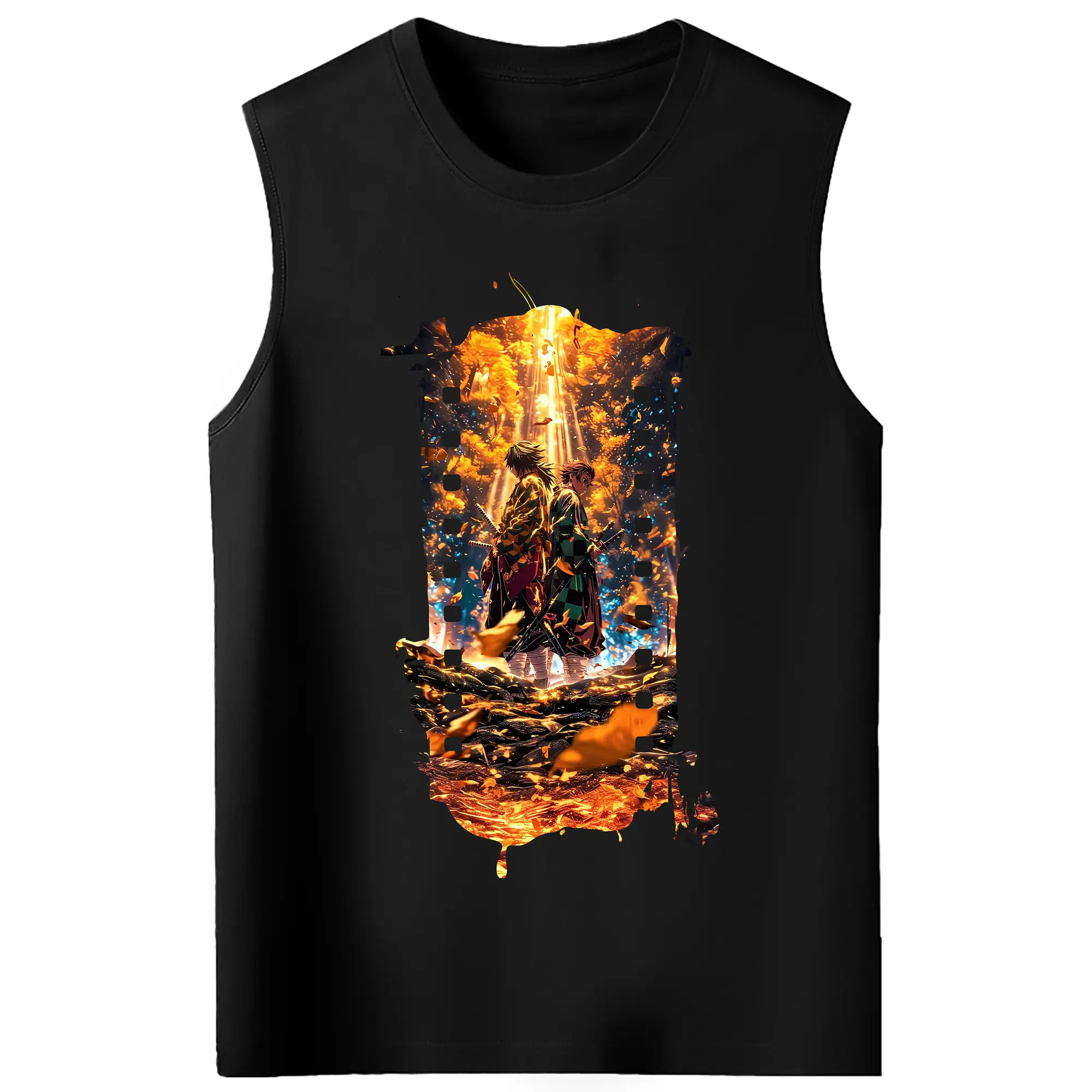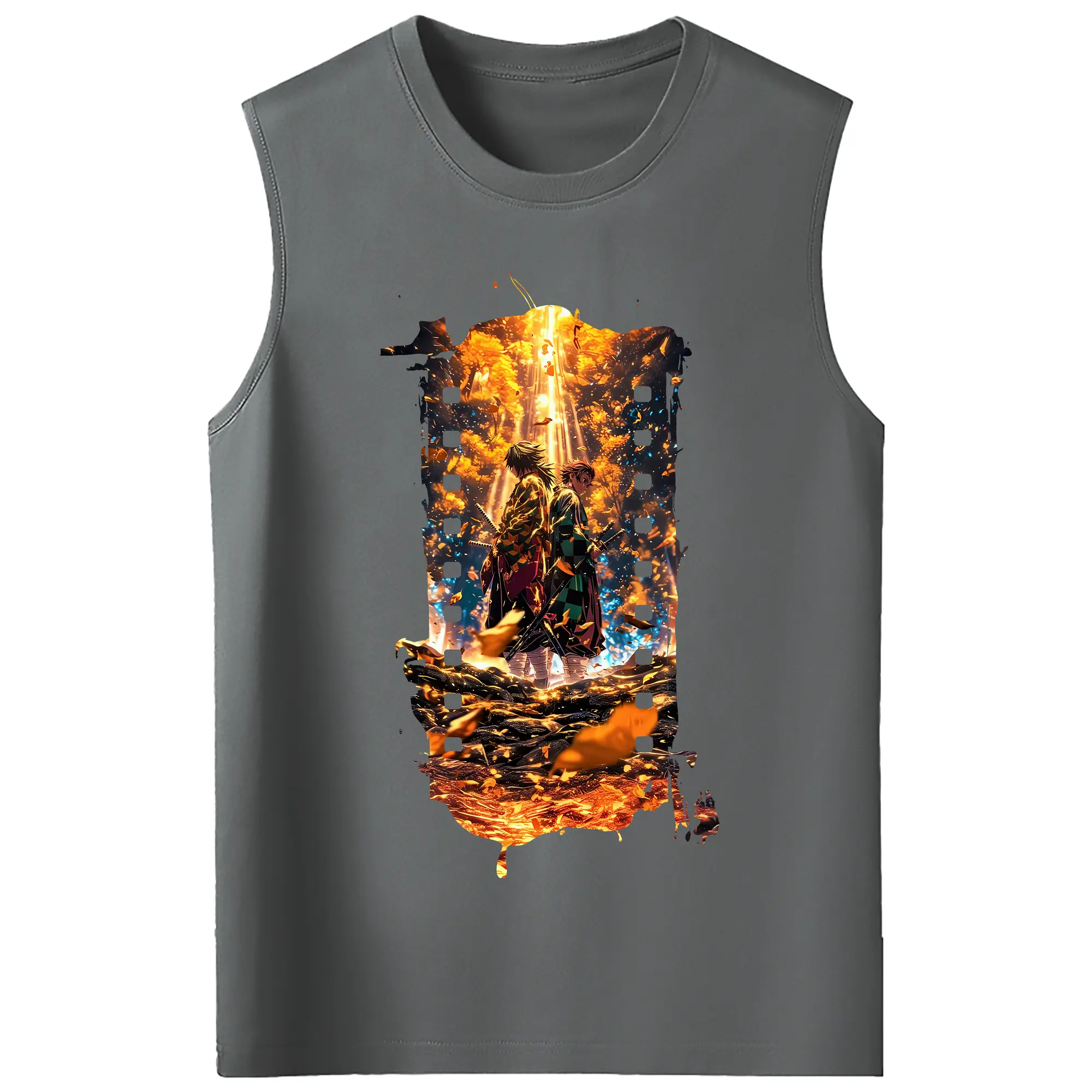 鬼滅の刃 グッズ,竈門 炭治郎 - コットン100% タンクトップ ・ フロントプリント ・ タイトフィット ・ 快適 通気性 ・ スポーツ カジュアル 散歩用