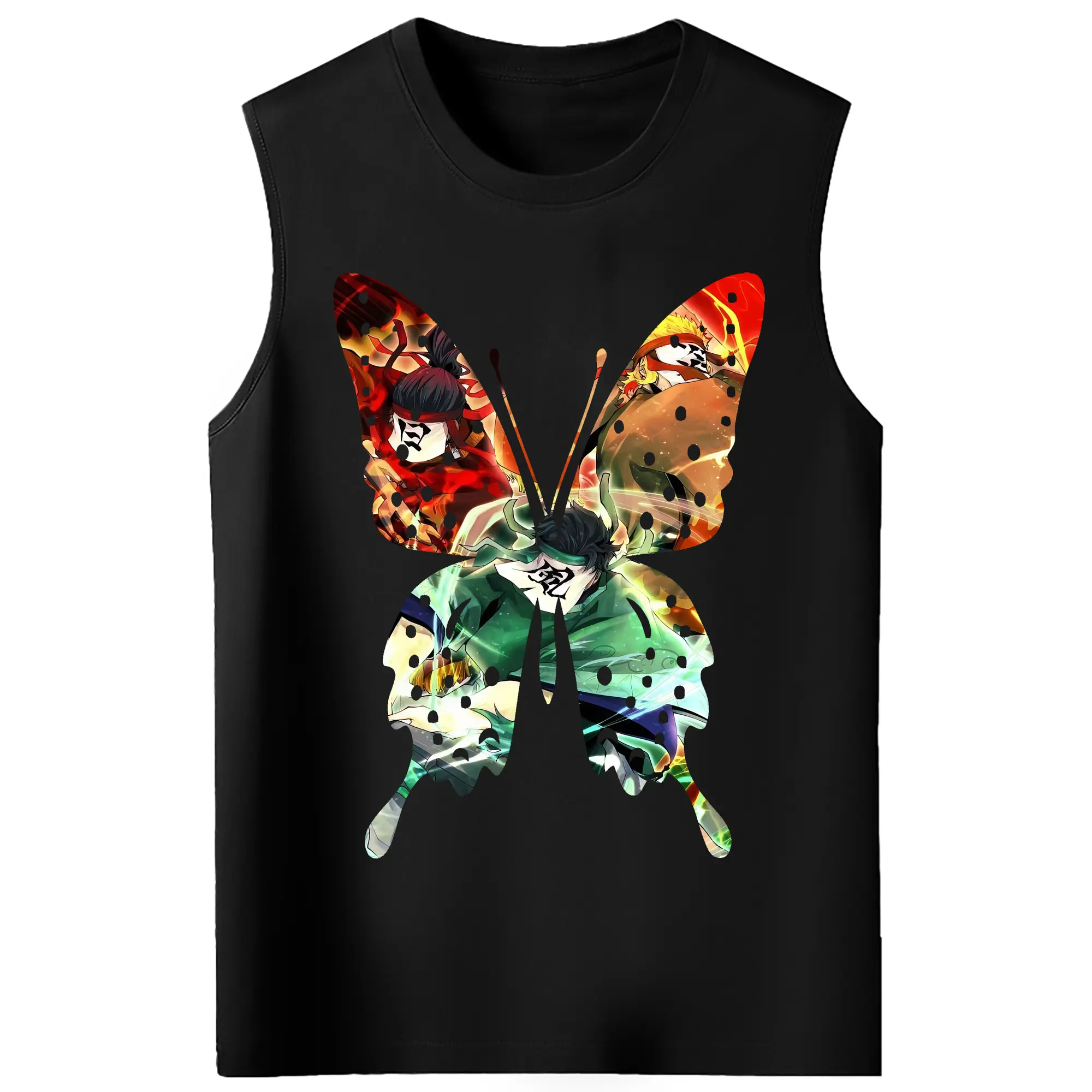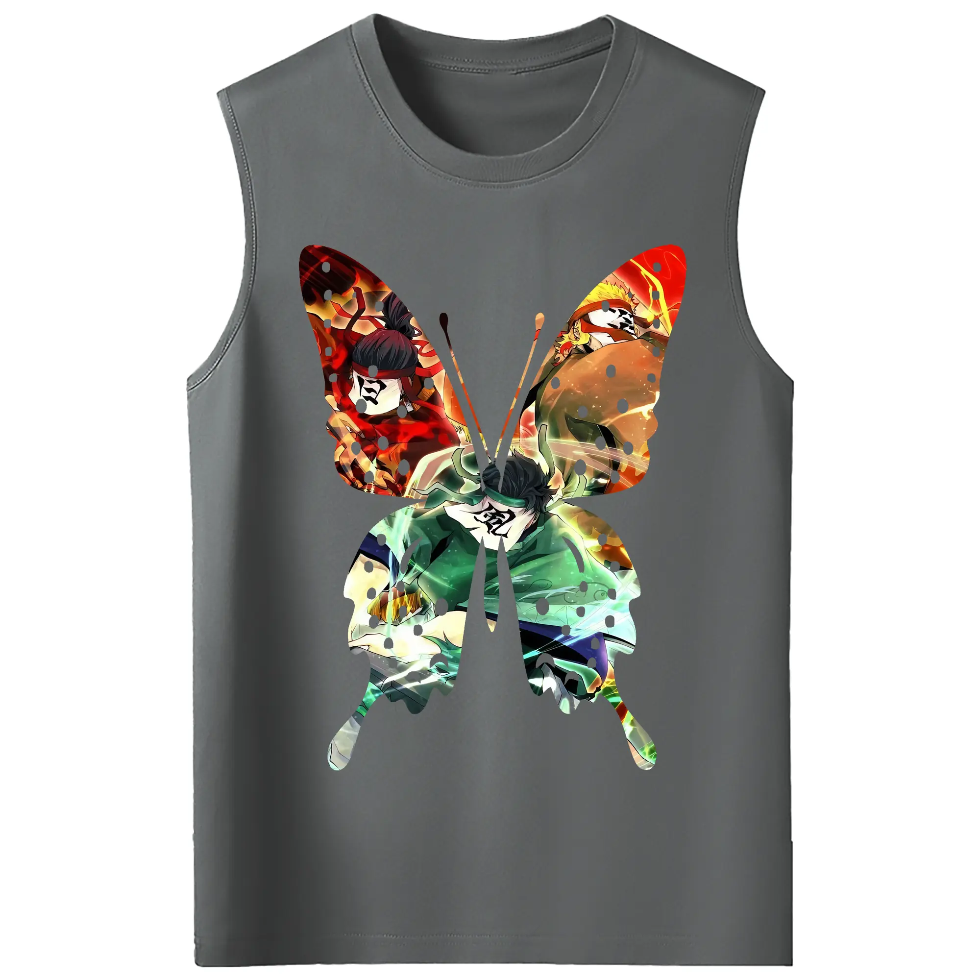 鬼滅の刃 グッズ,竈門 炭治郎 - コットン100% タンクトップ ・ フロントプリント ・ タイトフィット ・ 快適 通気性 ・ スポーツ カジュアル 散歩用