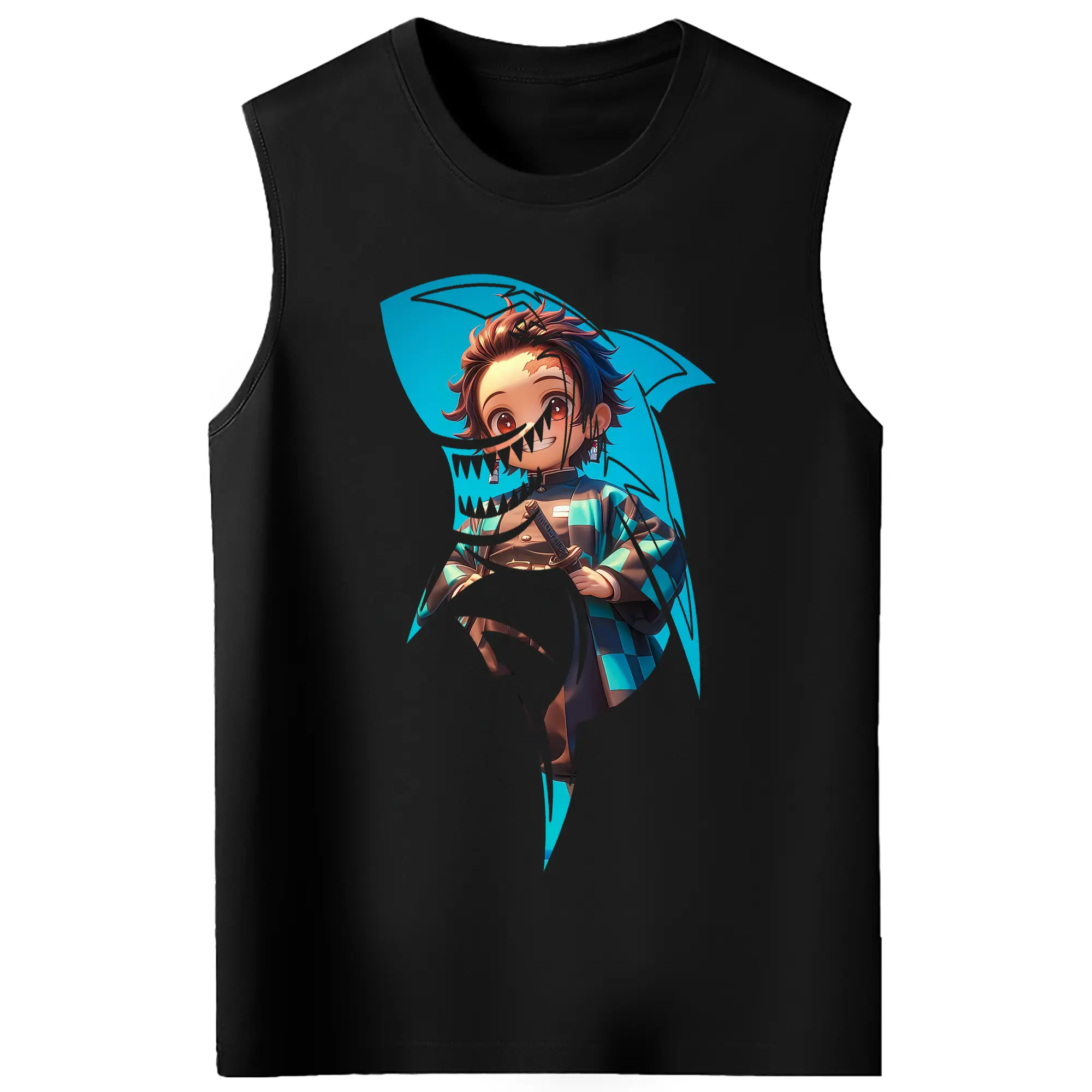 鬼滅の刃 グッズ,竈門 炭治郎 - コットン100% タンクトップ ・ フロントプリント ・ タイトフィット ・ 快適 通気性 ・ スポーツ カジュアル 散歩用