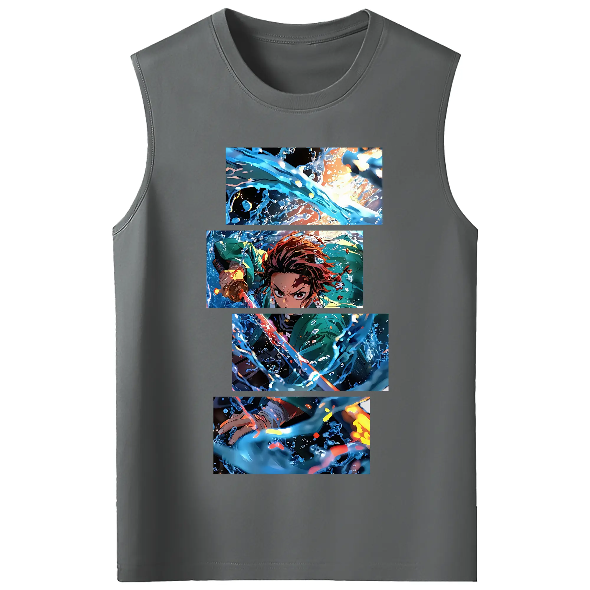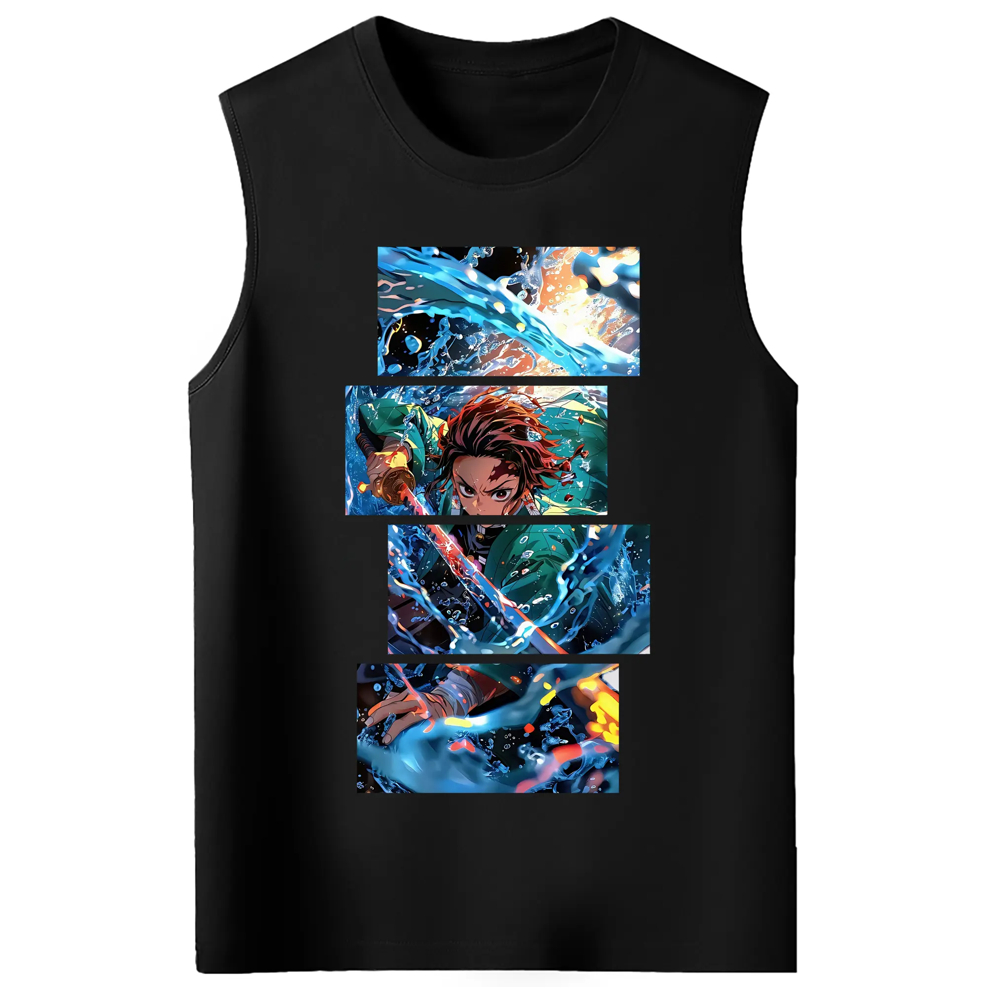 鬼滅の刃 グッズ,竈門 炭治郎 - コットン100% タンクトップ ・ フロントプリント ・ タイトフィット ・ 快適 通気性 ・ スポーツ カジュアル 散歩用