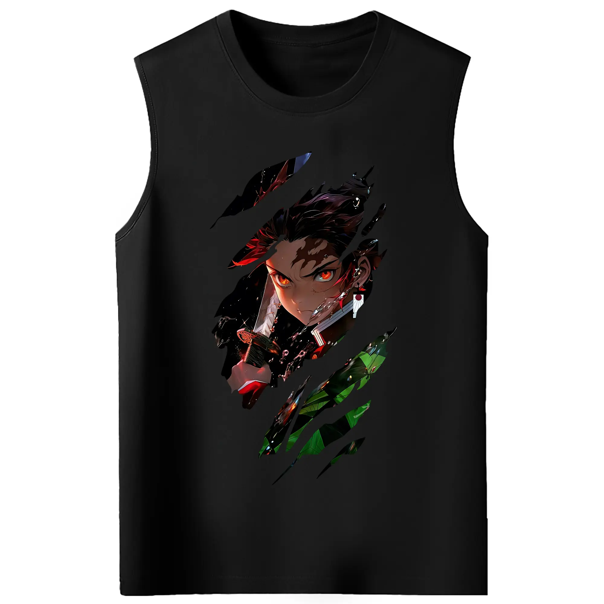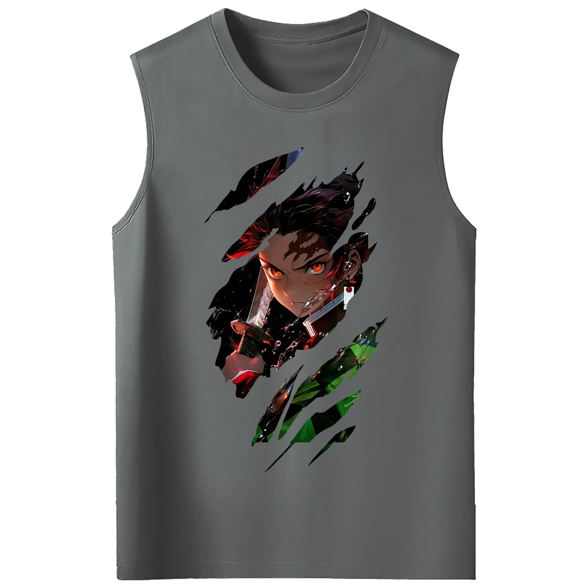 鬼滅の刃 グッズ,竈門 炭治郎 - コットン100% タンクトップ ・ フロントプリント ・ タイトフィット ・ 快適 通気性 ・ スポーツ カジュアル 散歩用