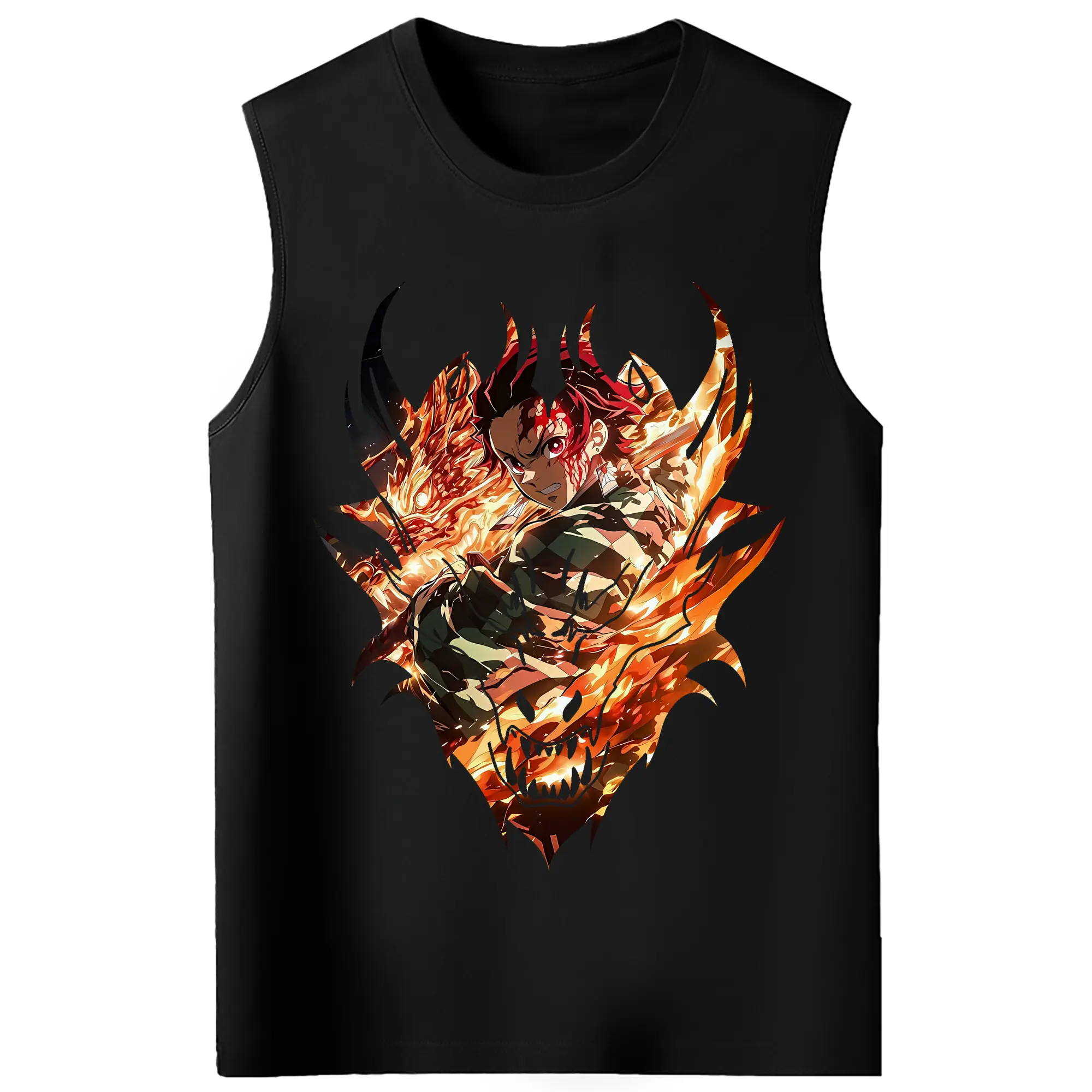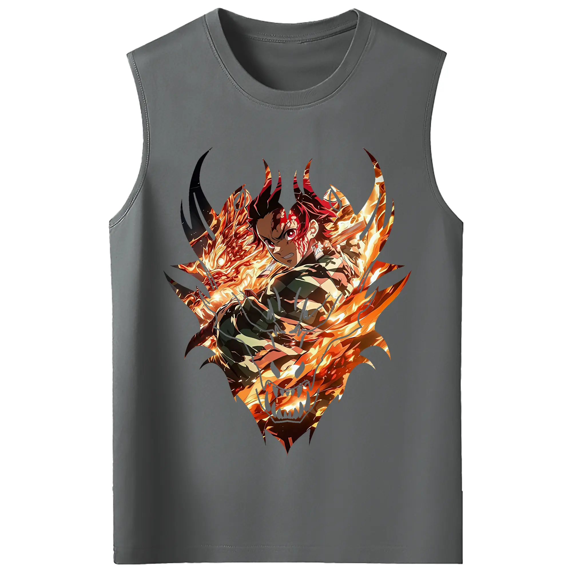 鬼滅の刃 グッズ,竈門 炭治郎 - コットン100% タンクトップ ・ フロントプリント ・ タイトフィット ・ 快適 通気性 ・ スポーツ カジュアル 散歩用