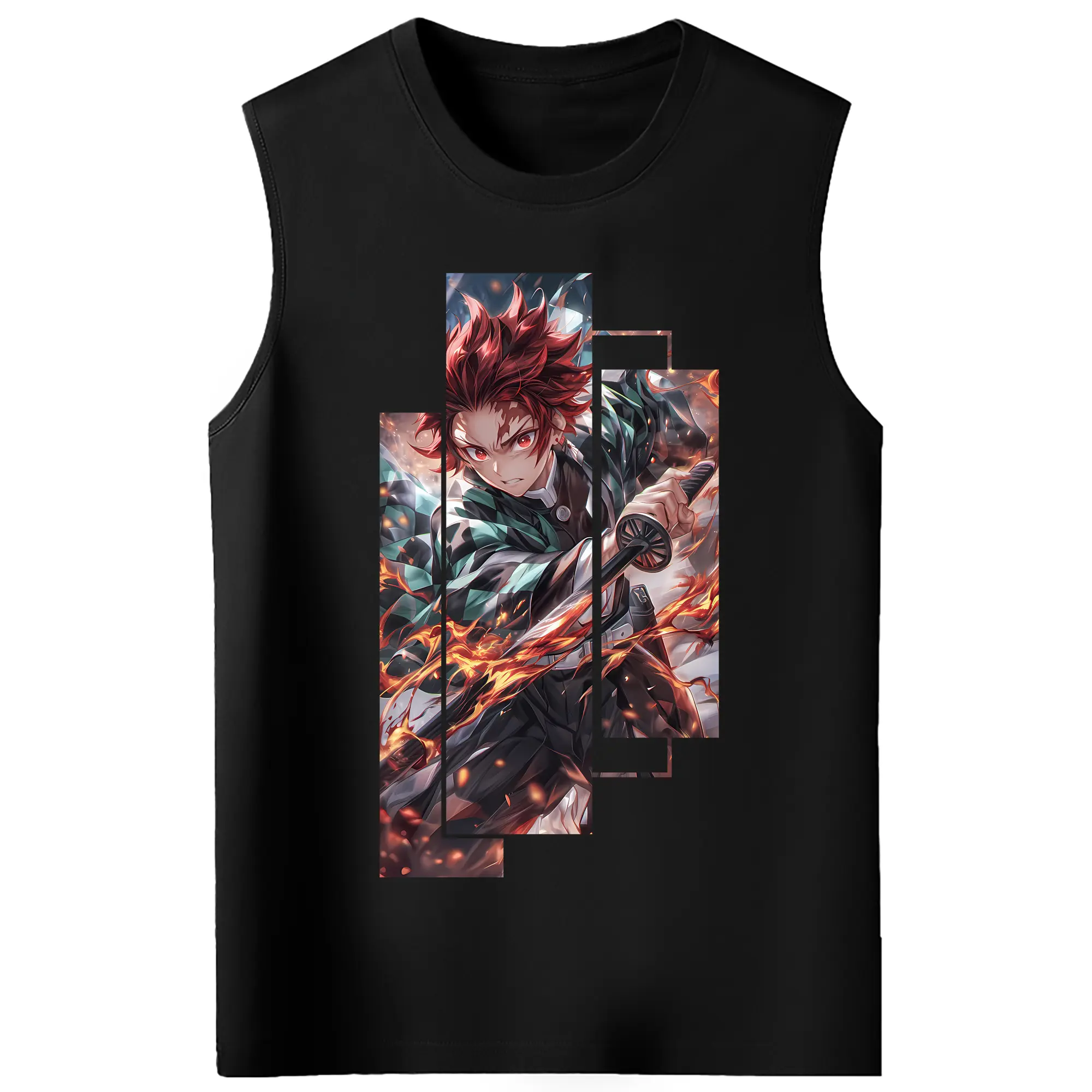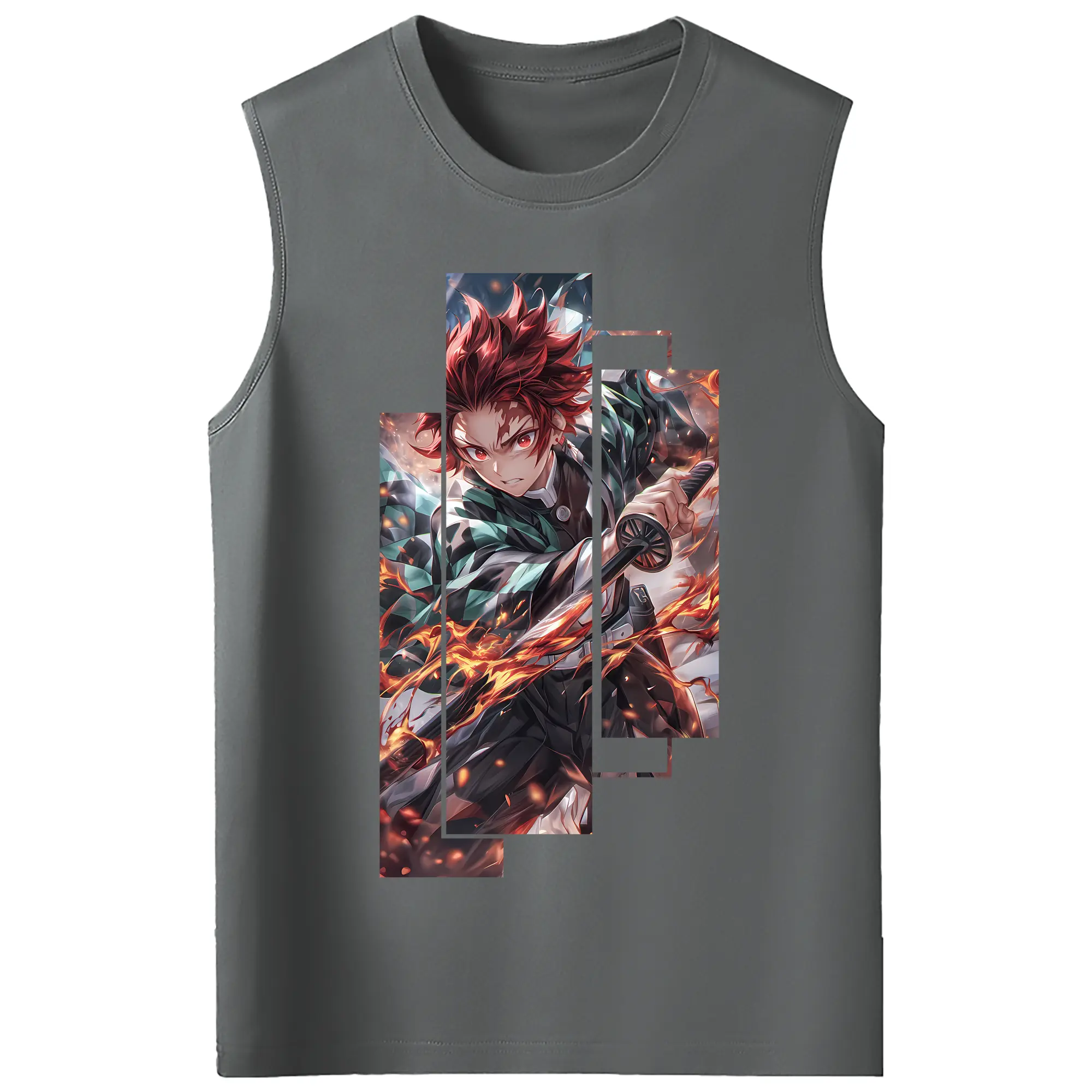 鬼滅の刃 グッズ,竈門 炭治郎 - コットン100% タンクトップ ・ フロントプリント ・ タイトフィット ・ 快適 通気性 ・ スポーツ カジュアル 散歩用