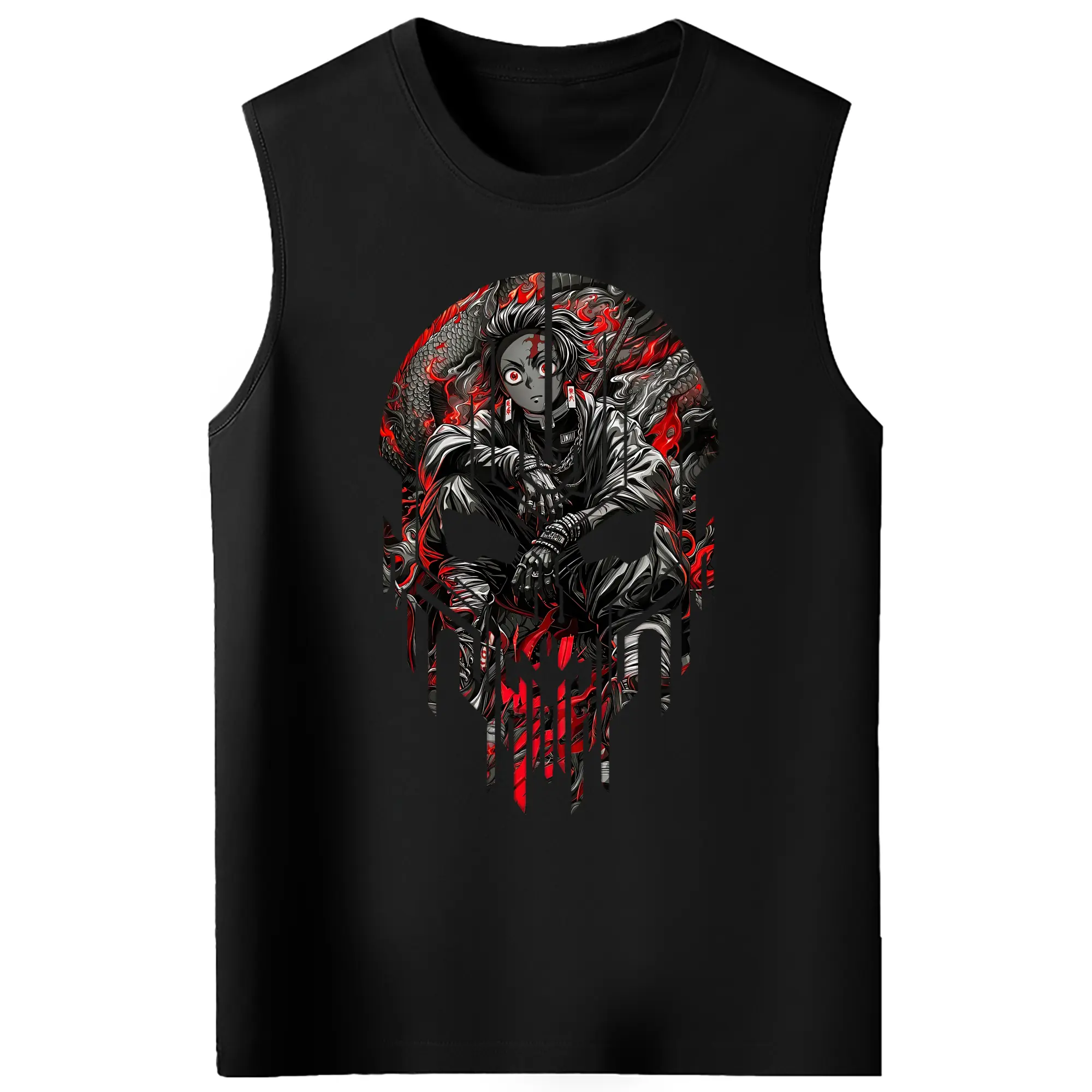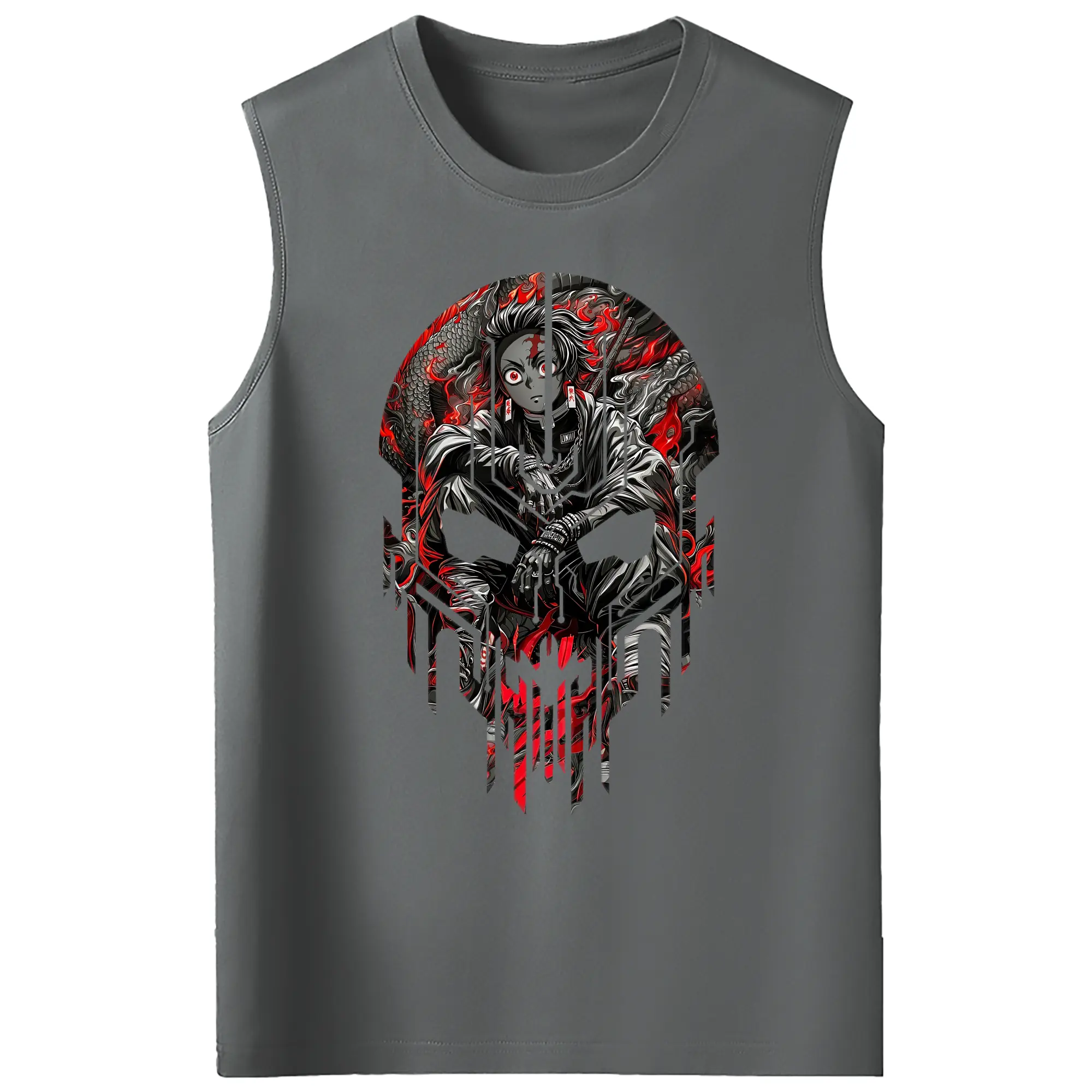 鬼滅の刃 グッズ,竈門 炭治郎 - コットン100% タンクトップ ・ フロントプリント ・ タイトフィット ・ 快適 通気性 ・ スポーツ カジュアル 散歩用