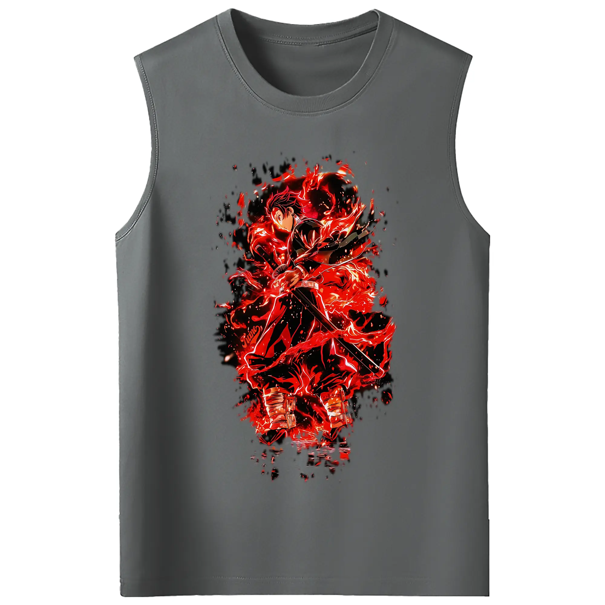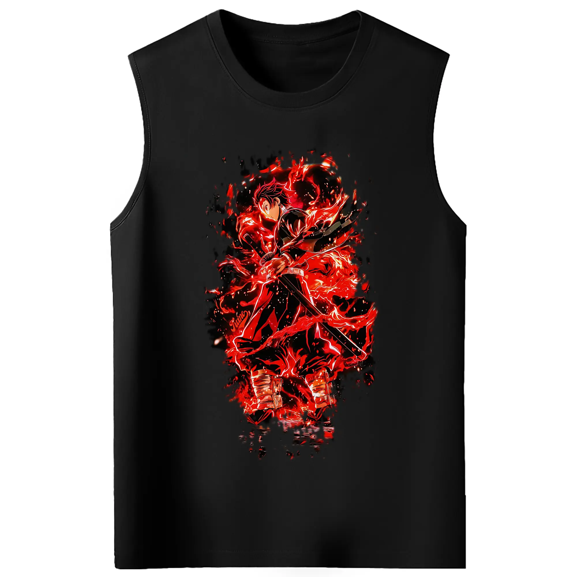 鬼滅の刃 グッズ,竈門 炭治郎 - コットン100% タンクトップ ・ フロントプリント ・ タイトフィット ・ 快適 通気性 ・ スポーツ カジュアル 散歩用