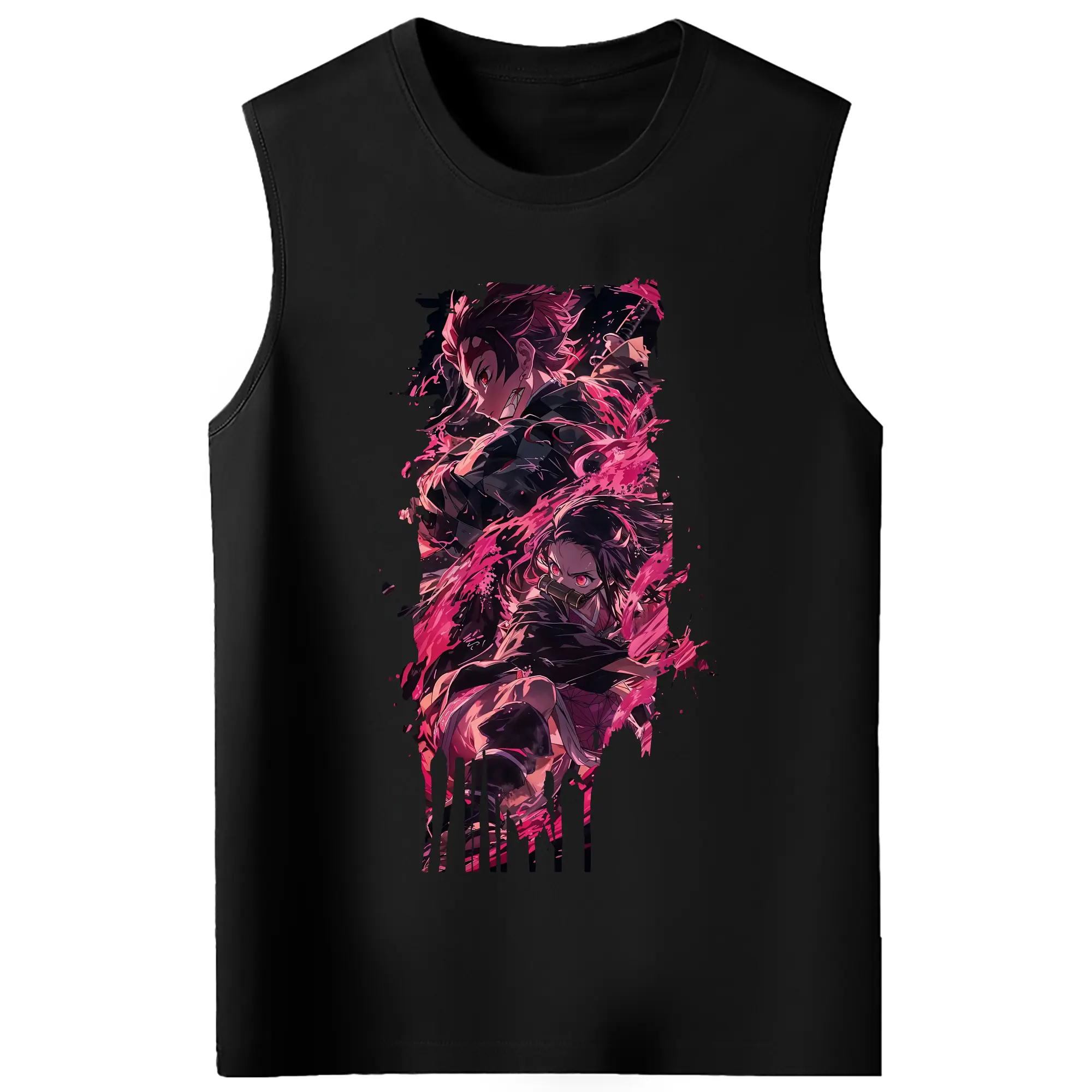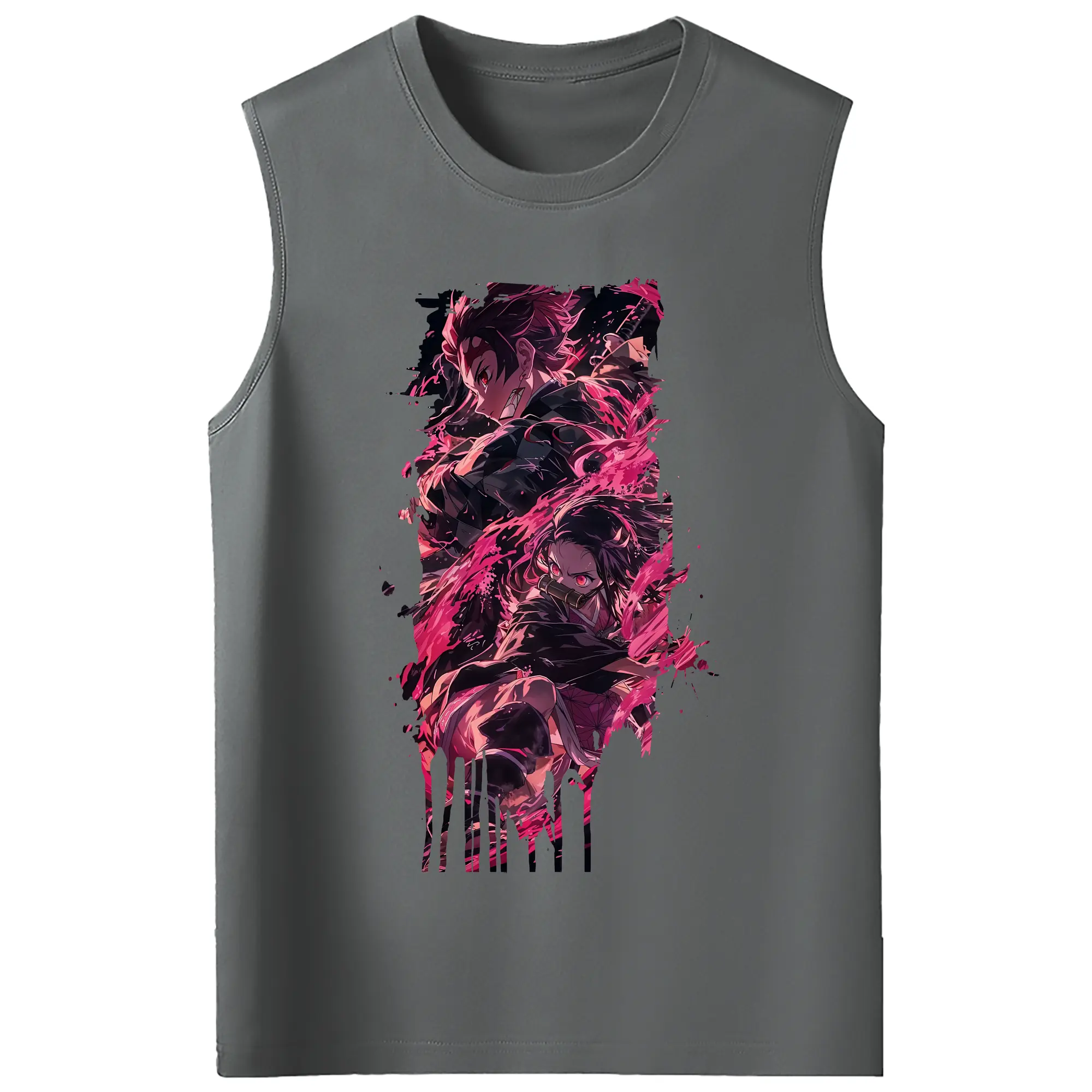 鬼滅の刃 グッズ,竈門 炭治郎 - コットン100% タンクトップ ・ フロントプリント ・ タイトフィット ・ 快適 通気性 ・ スポーツ カジュアル 散歩用