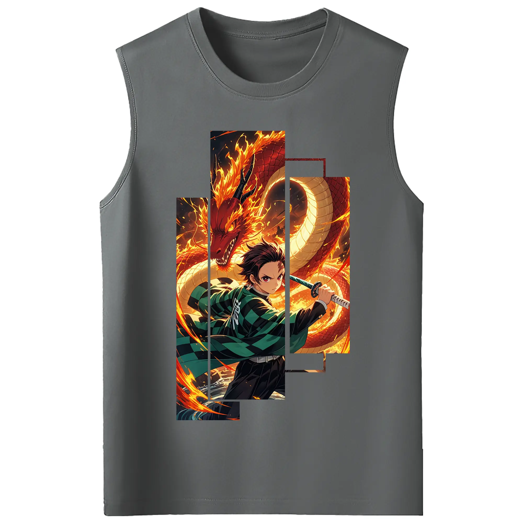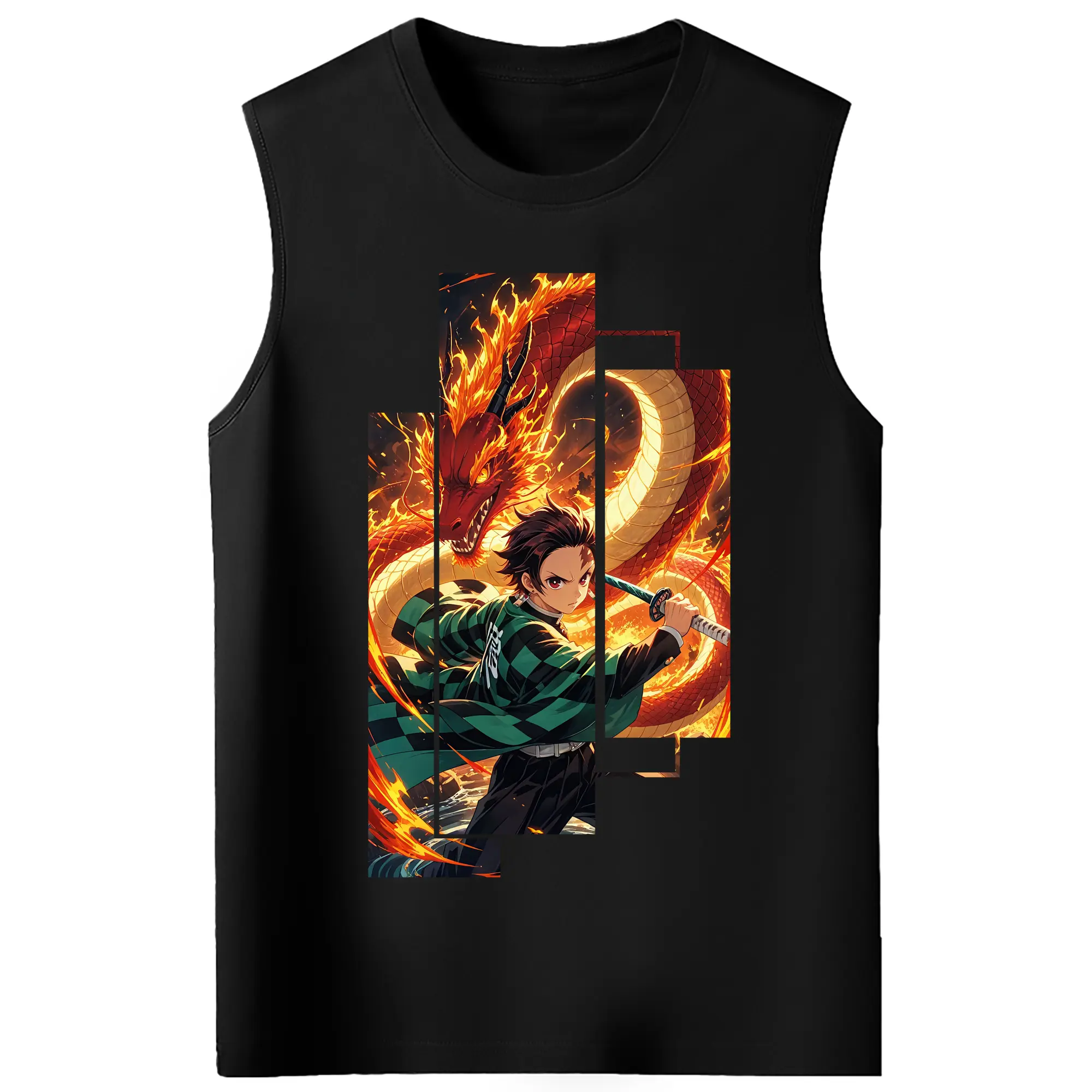 鬼滅の刃 グッズ,竈門 炭治郎 - コットン100% タンクトップ ・ フロントプリント ・ タイトフィット ・ 快適 通気性 ・ スポーツ カジュアル 散歩用