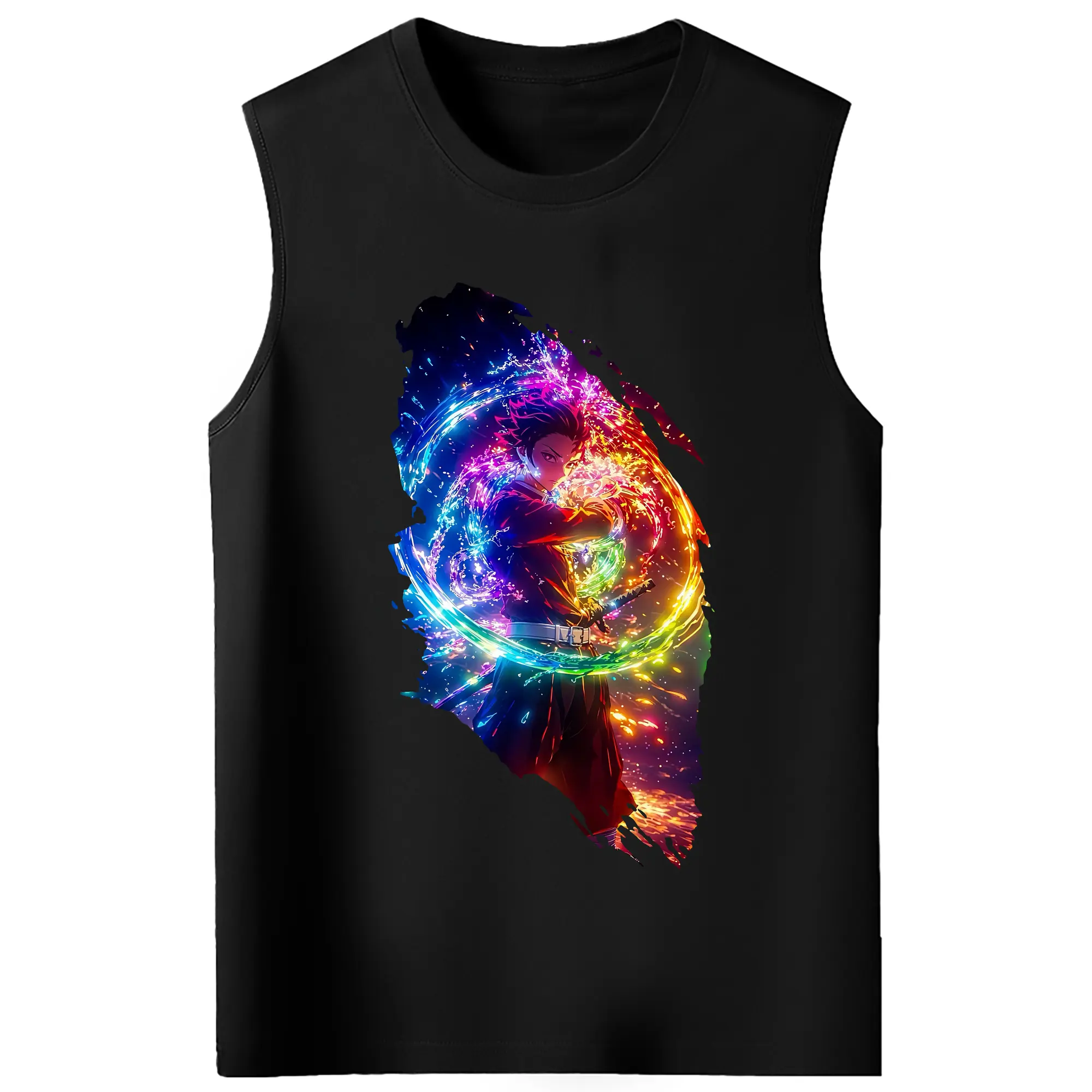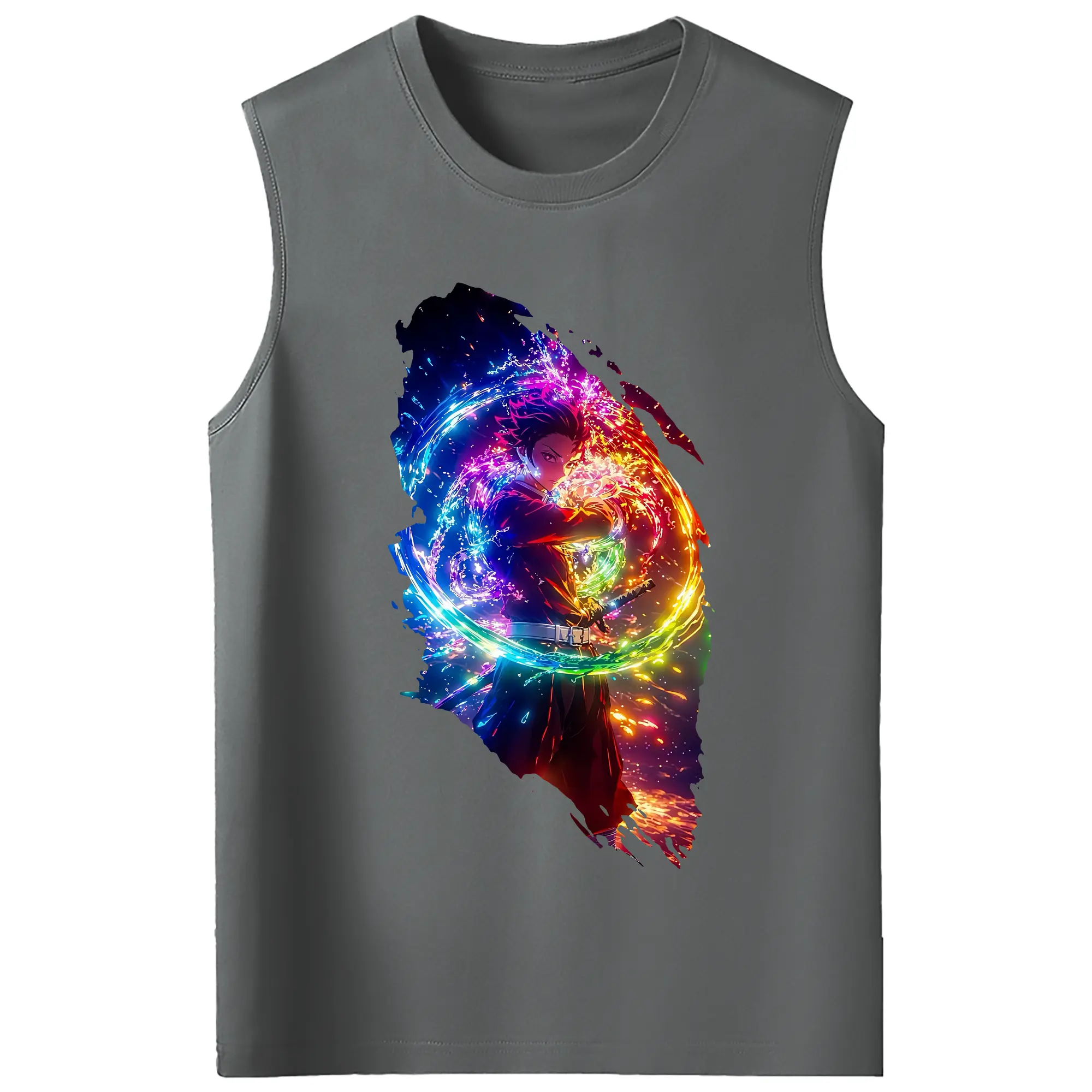 鬼滅の刃 グッズ,竈門 炭治郎 - コットン100% タンクトップ ・ フロントプリント ・ タイトフィット ・ 快適 通気性 ・ スポーツ カジュアル 散歩用