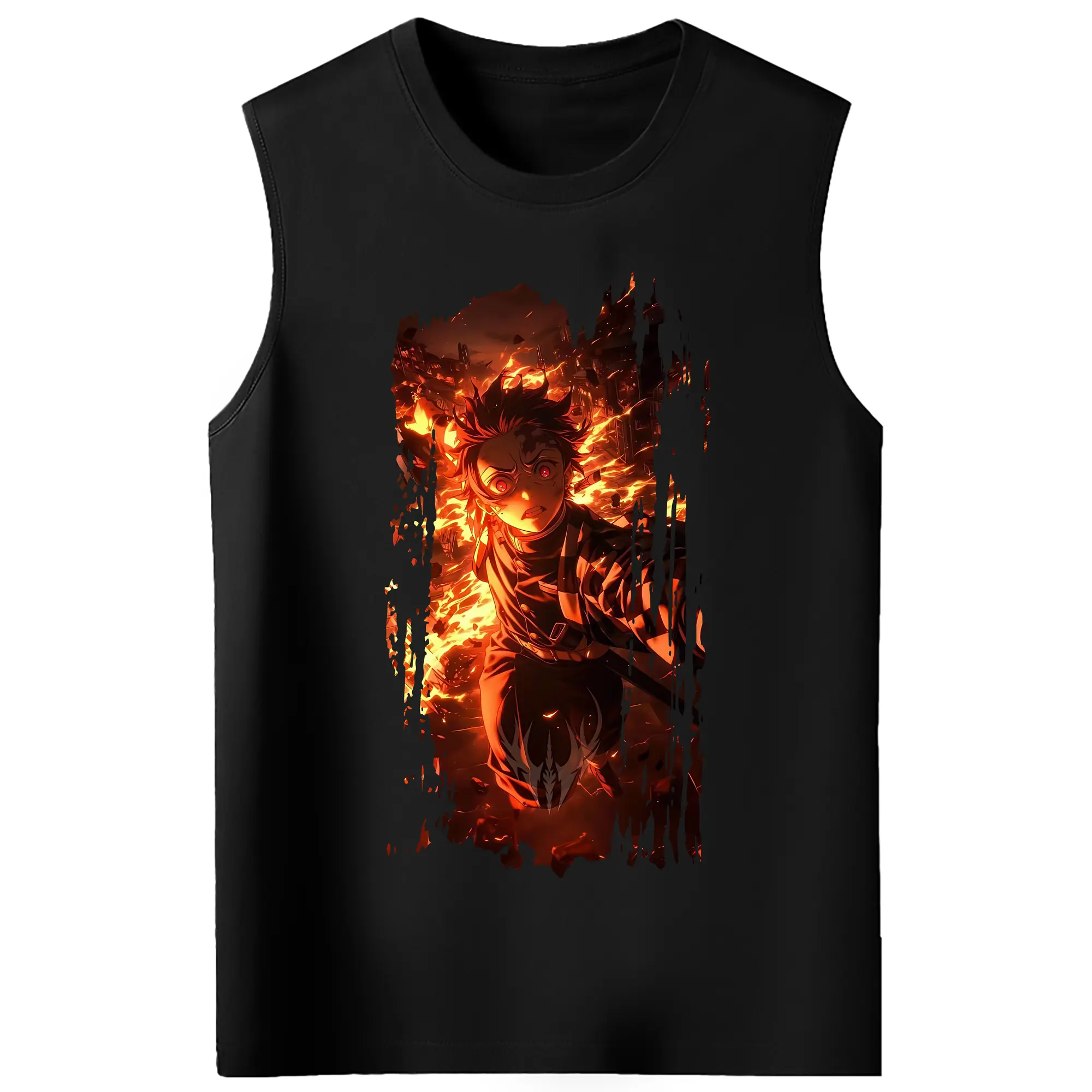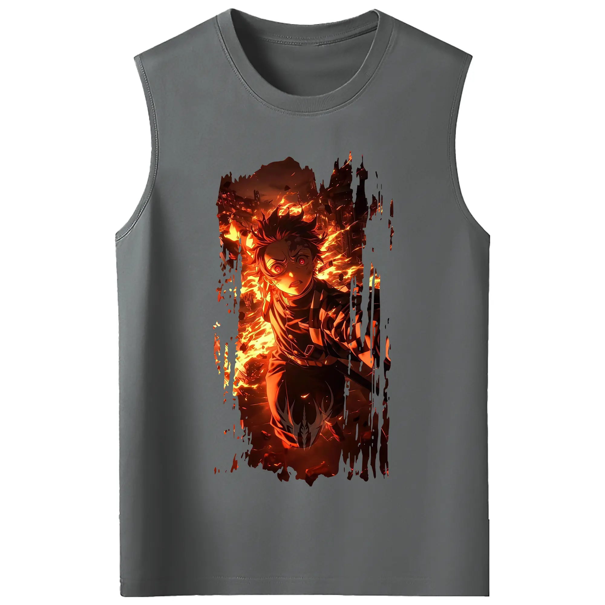 鬼滅の刃 グッズ,竈門 炭治郎 - コットン100% タンクトップ ・ フロントプリント ・ タイトフィット ・ 快適 通気性 ・ スポーツ カジュアル 散歩用