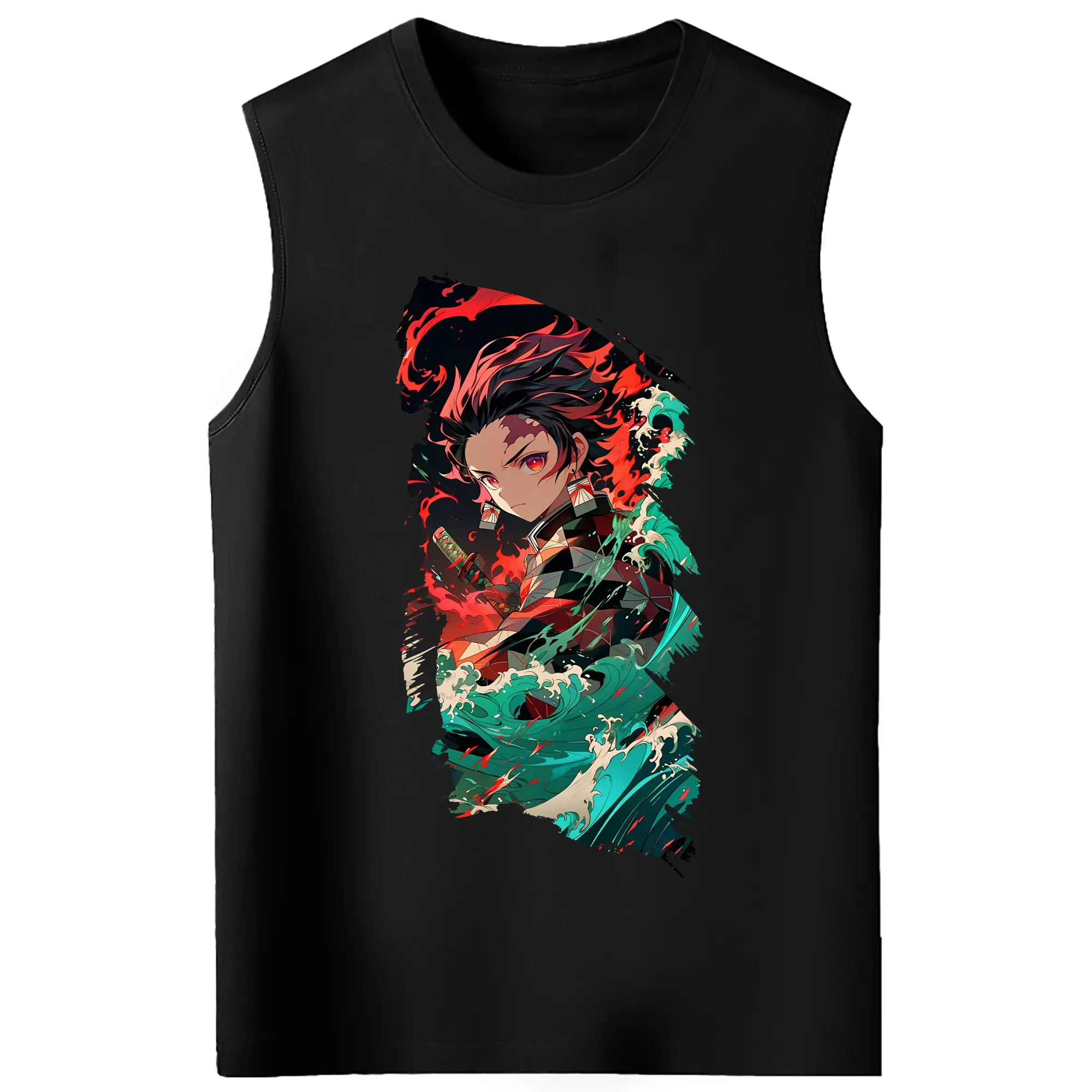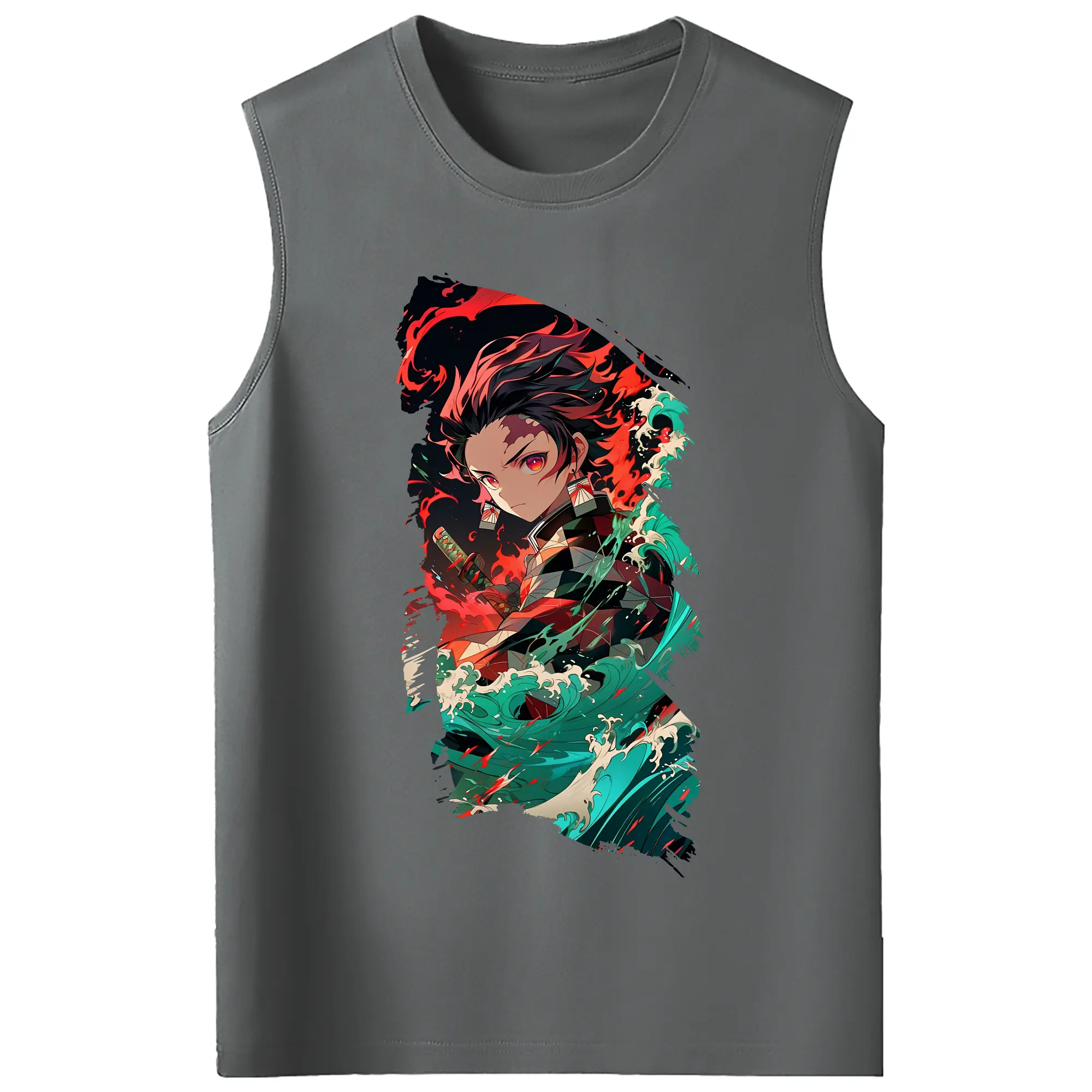 鬼滅の刃 グッズ,竈門 炭治郎 - 綿100% 半袖Tシャツ ・ フロントプリント ・ 快適 通気性 ・ 日常使い 散歩 スポーツ用