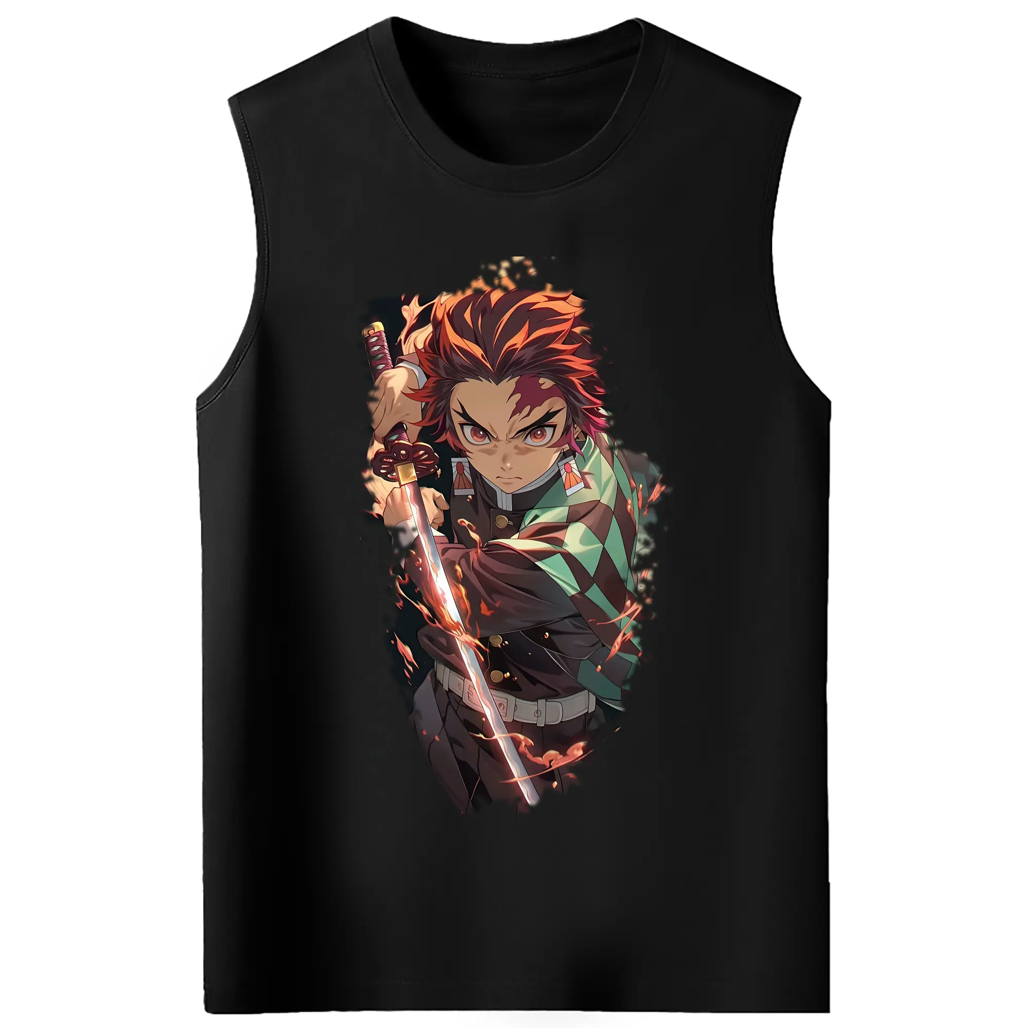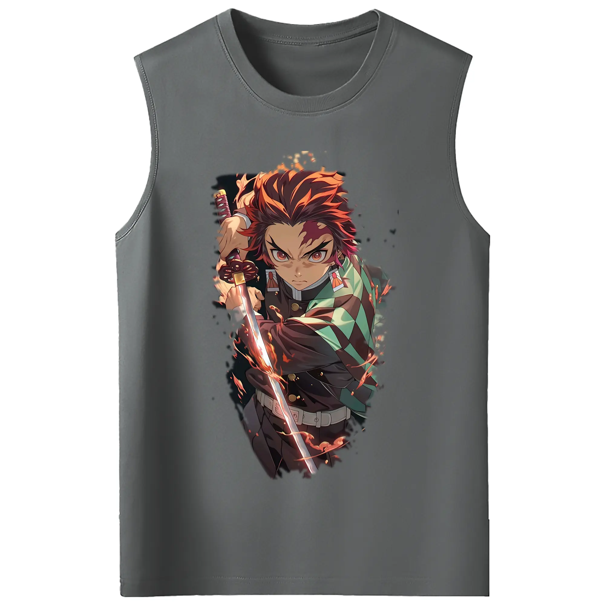 鬼滅の刃 グッズ,竈門 炭治郎 - コットン100% タンクトップ ・ フロントプリント ・ タイトフィット ・ 快適 通気性 ・ スポーツ カジュアル 散歩用