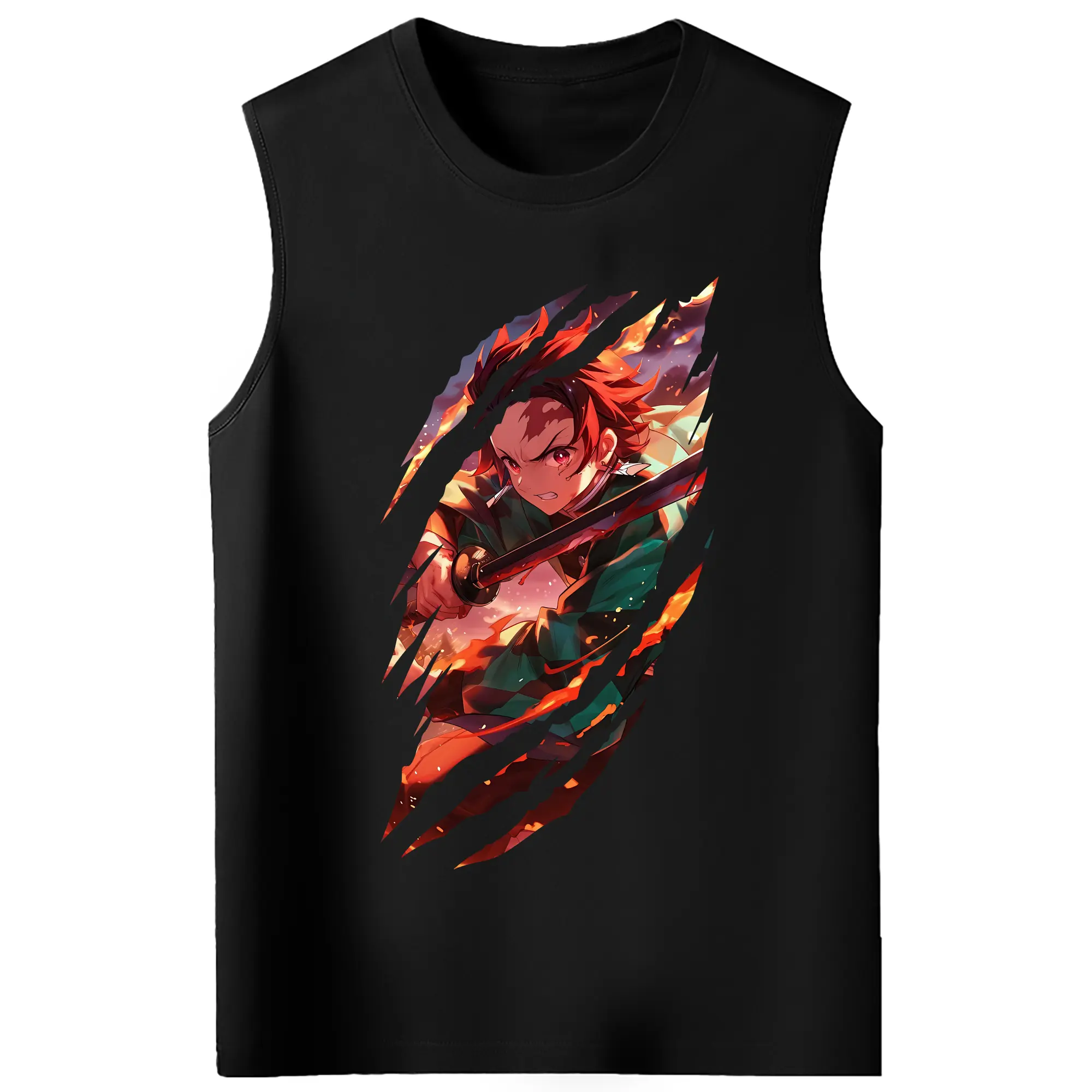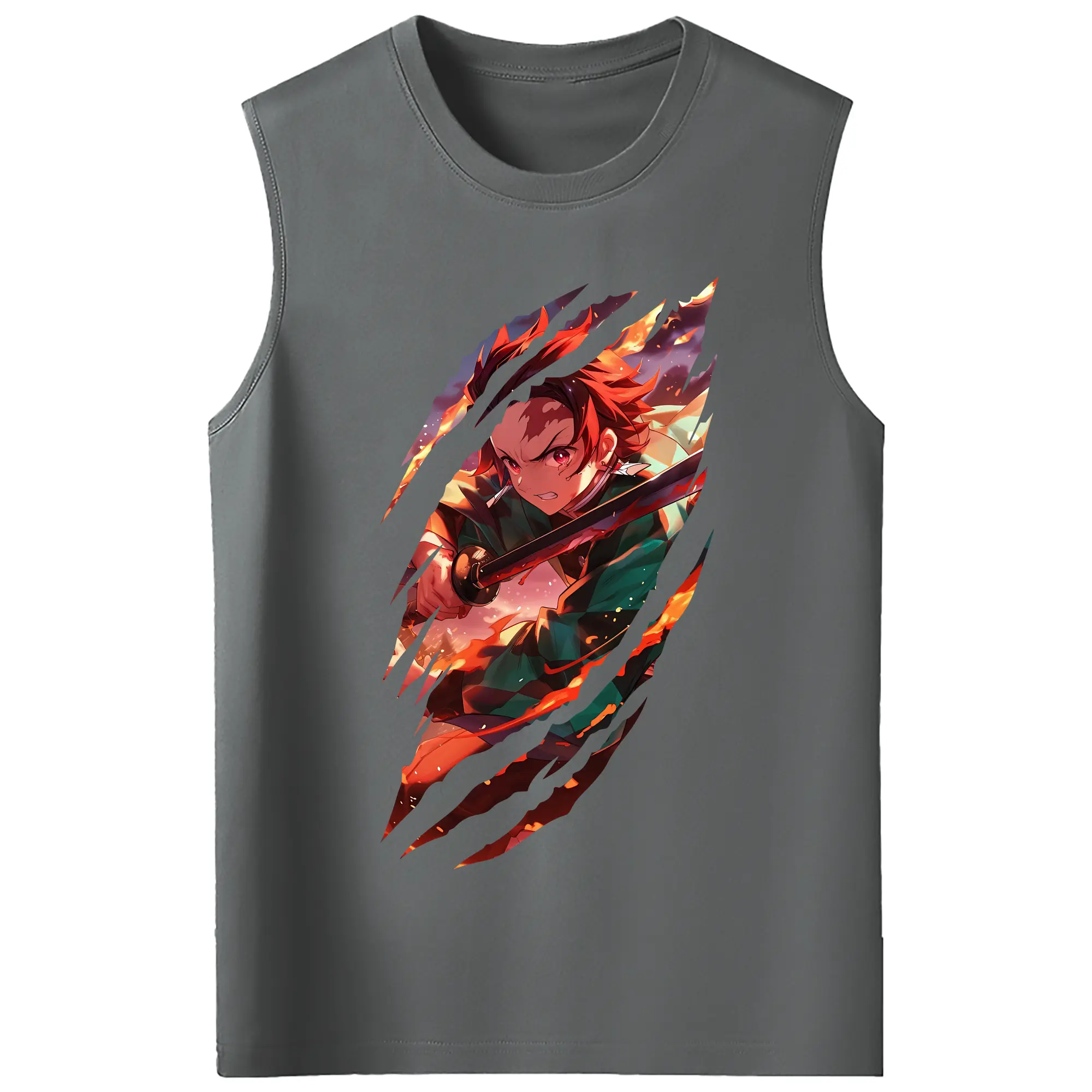 鬼滅の刃 グッズ,竈門 炭治郎 - コットン100% タンクトップ ・ フロントプリント ・ タイトフィット ・ 快適 通気性 ・ スポーツ カジュアル 散歩用