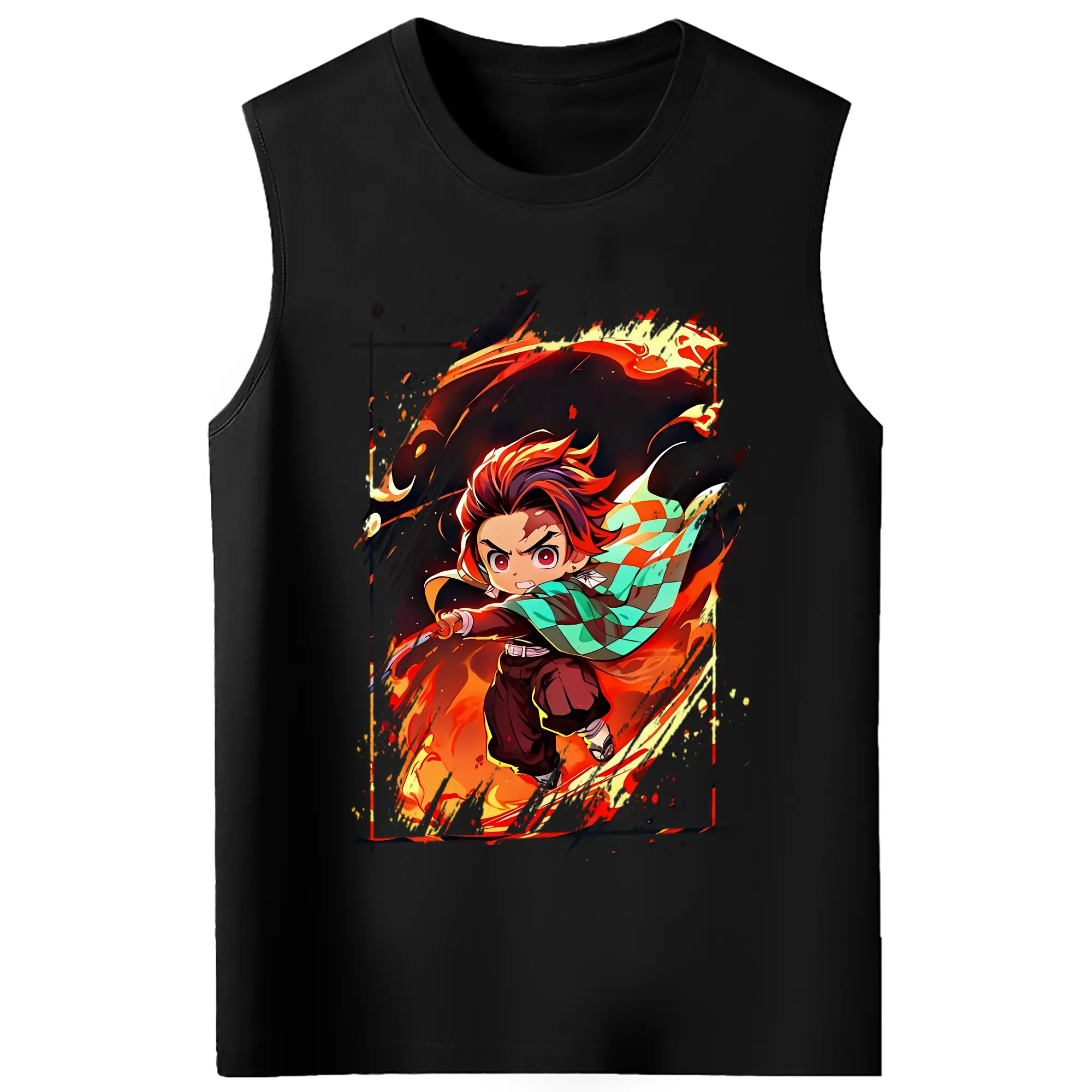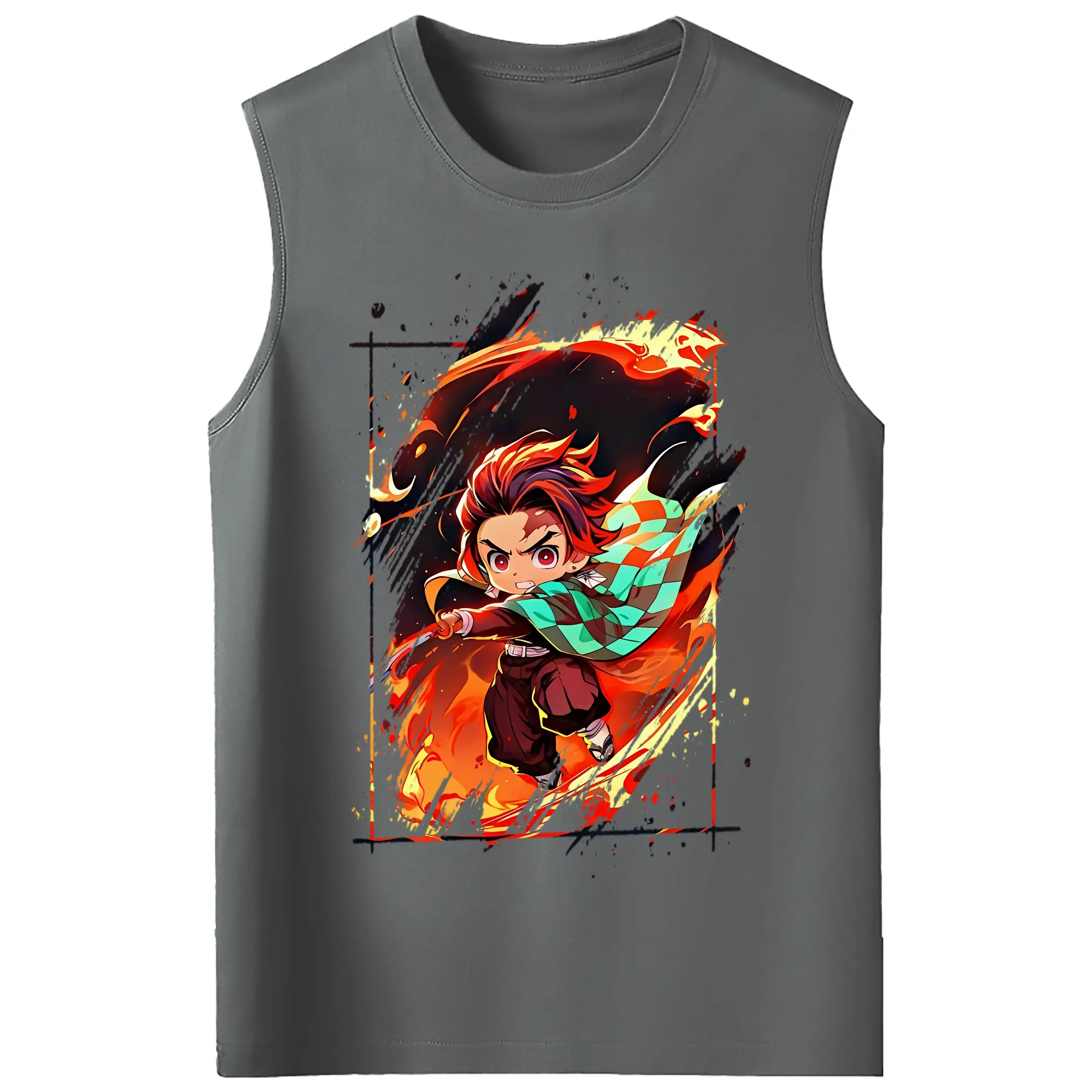 鬼滅の刃 グッズ,竈門 炭治郎 - コットン100% タンクトップ ・ フロントプリント ・ タイトフィット ・ 快適 通気性 ・ スポーツ カジュアル 散歩用