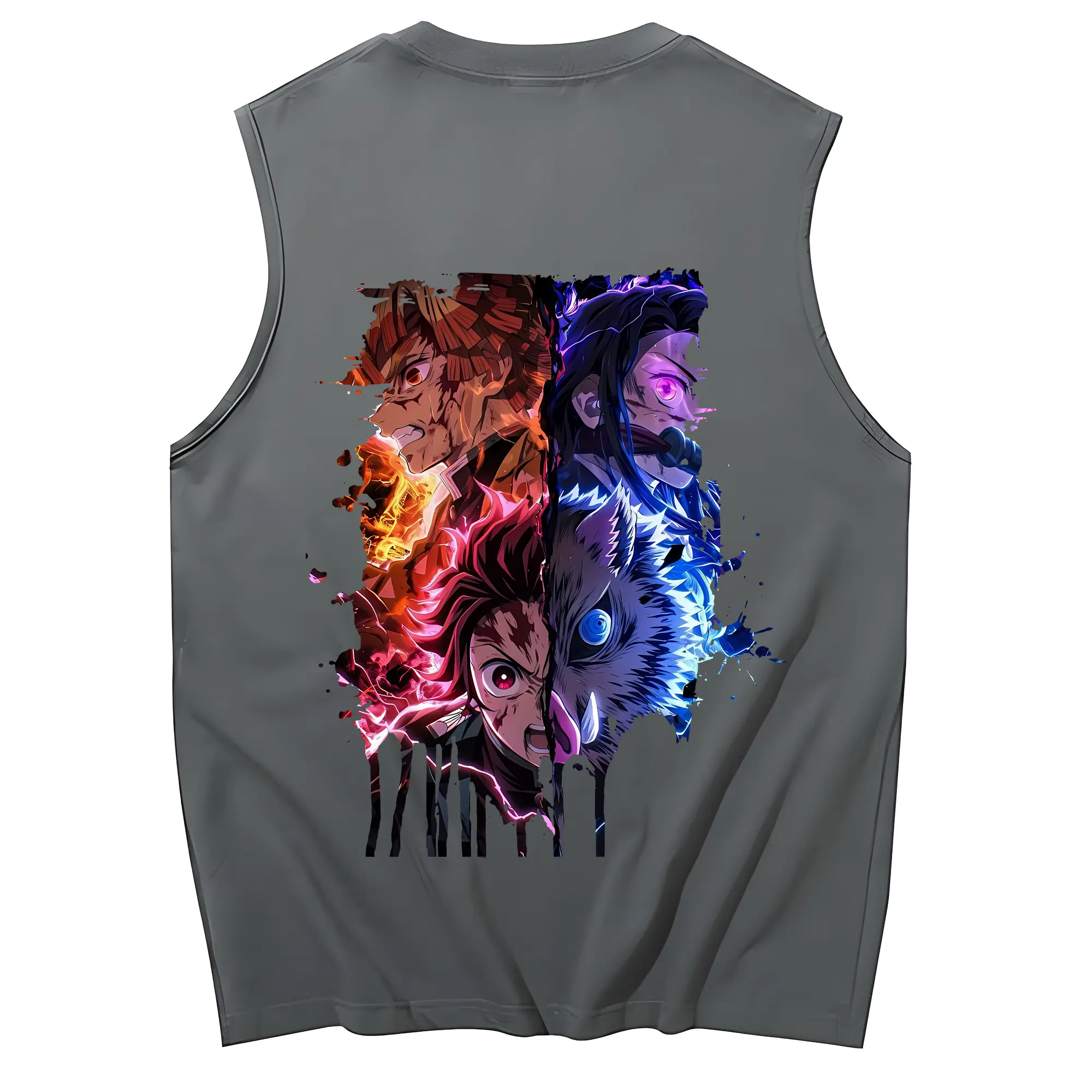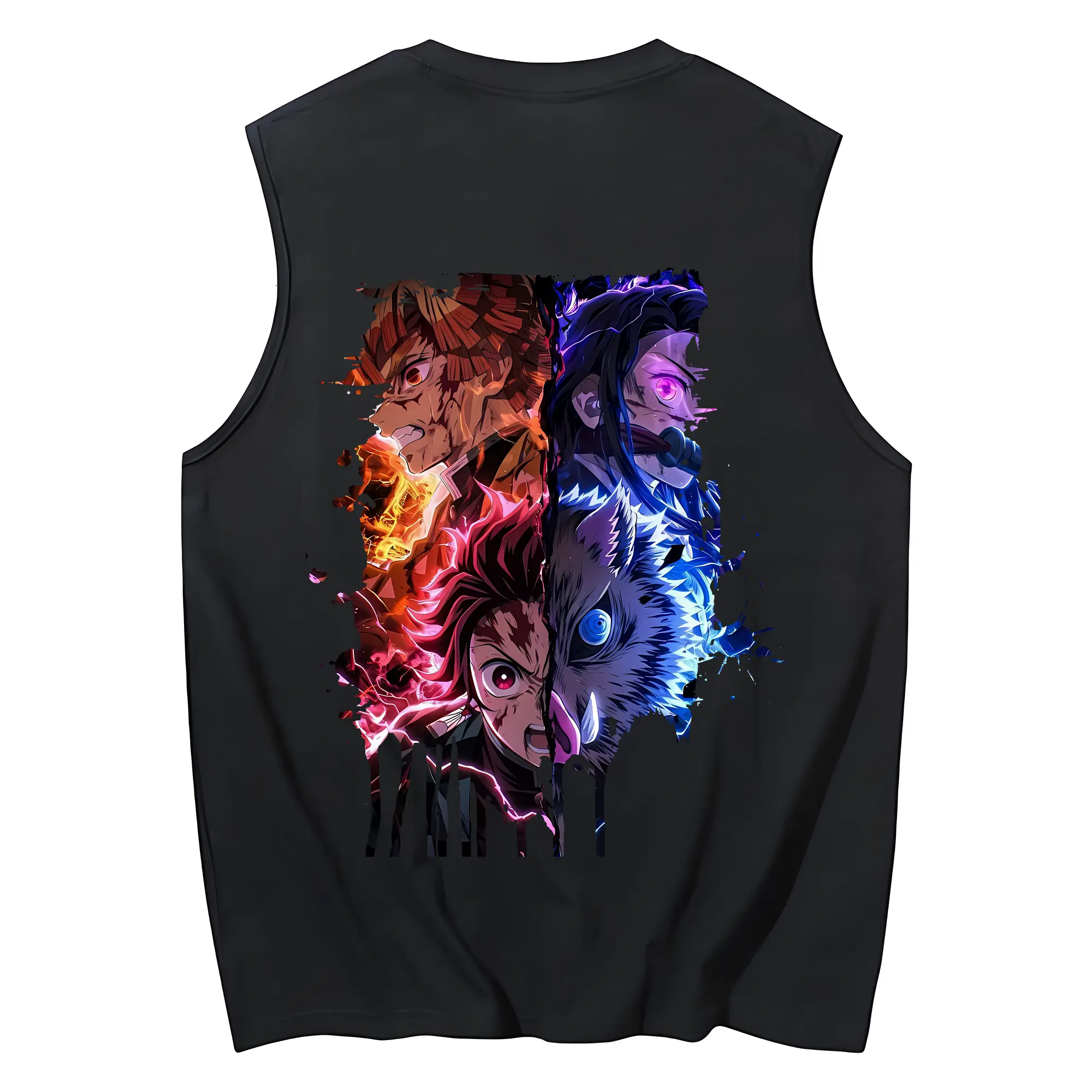 鬼滅の刃 グッズ,竈門 炭治郎 - コットン100% タンクトップ ・ 背面プリント ・ タイトシルエット ・ 快適 通気性 ・ スポーツ カジュアル 散歩用