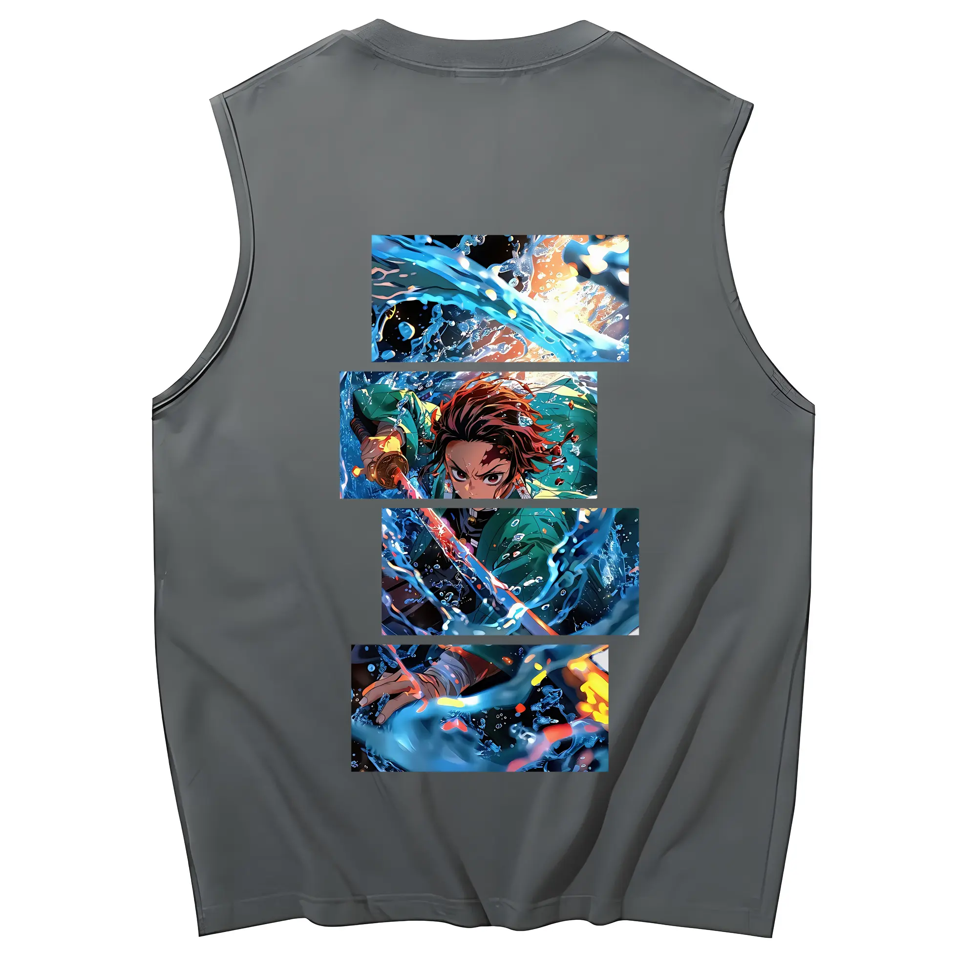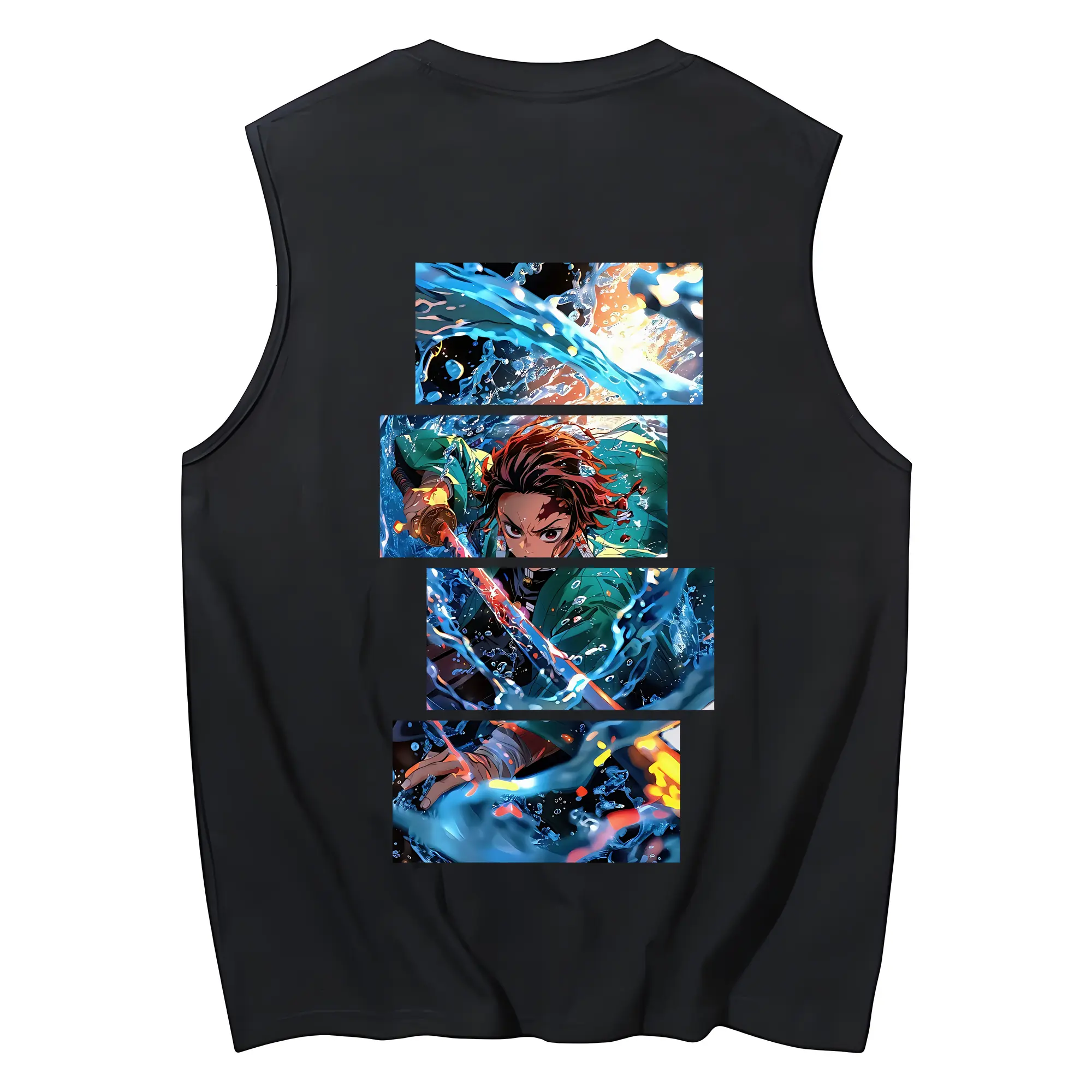 鬼滅の刃 グッズ,竈門 炭治郎 - コットン100% タンクトップ ・ 背面プリント ・ タイトシルエット ・ 快適 通気性 ・ スポーツ カジュアル 散歩用