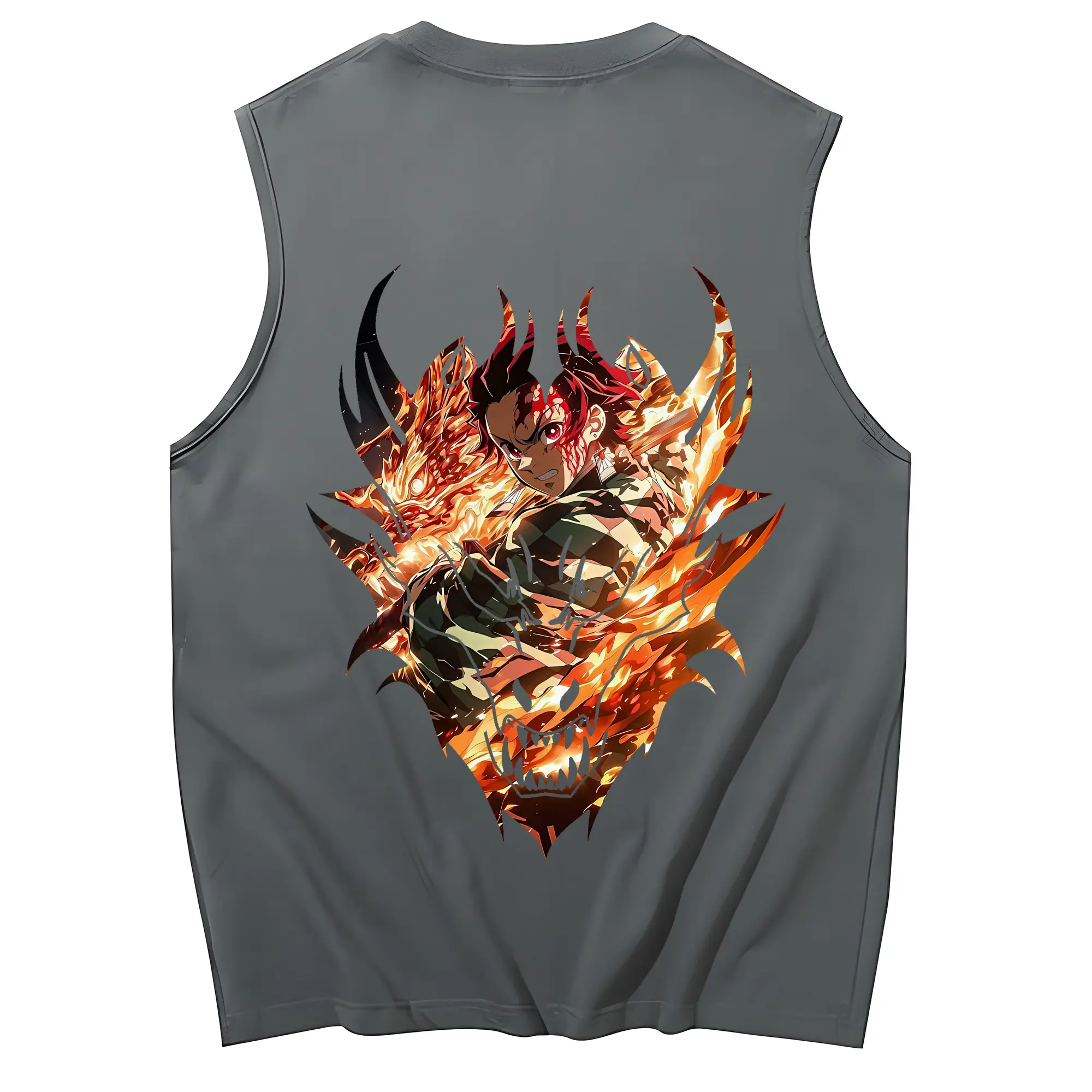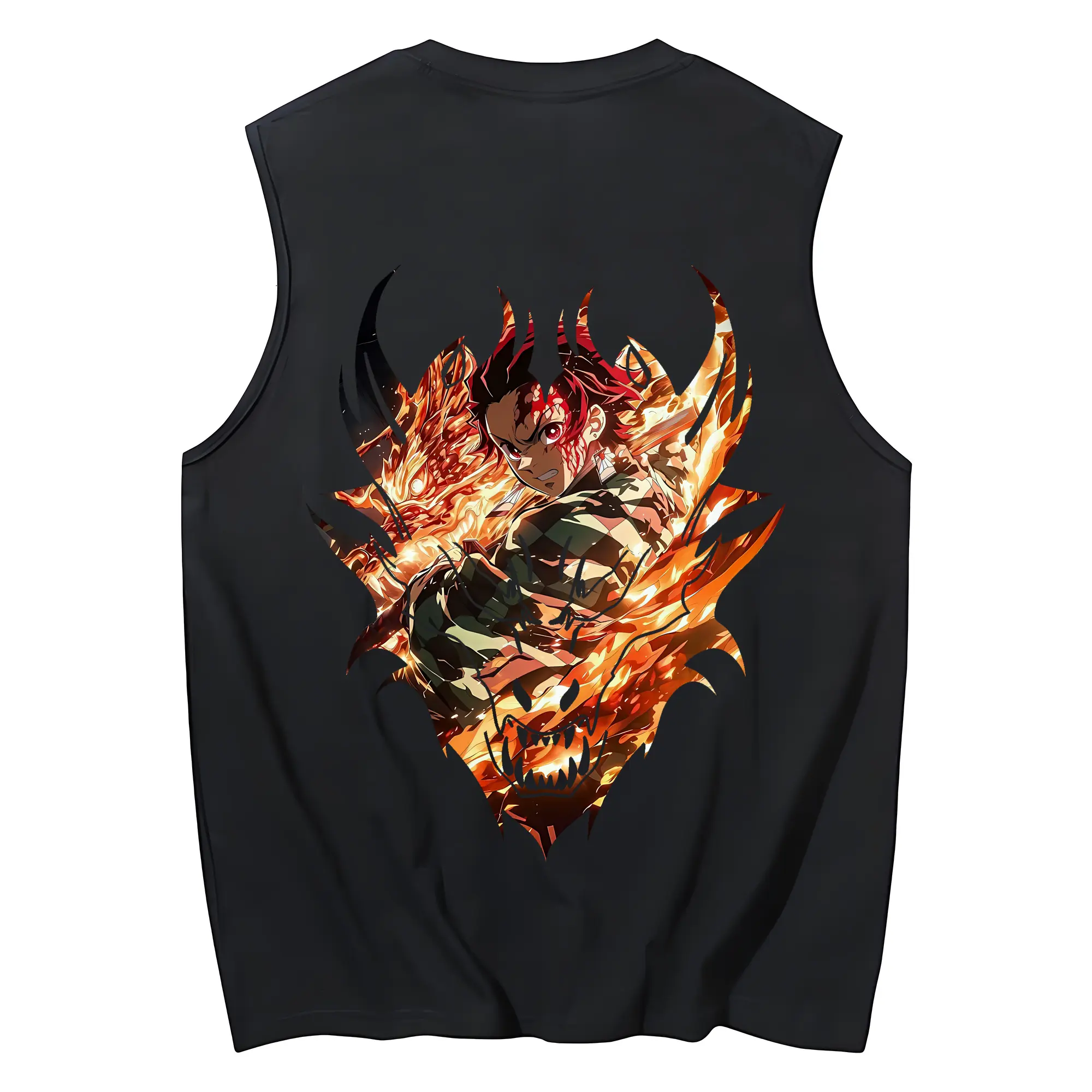 鬼滅の刃 グッズ,竈門 炭治郎 - コットン100% タンクトップ ・ 背面プリント ・ タイトシルエット ・ 快適 通気性 ・ スポーツ カジュアル 散歩用