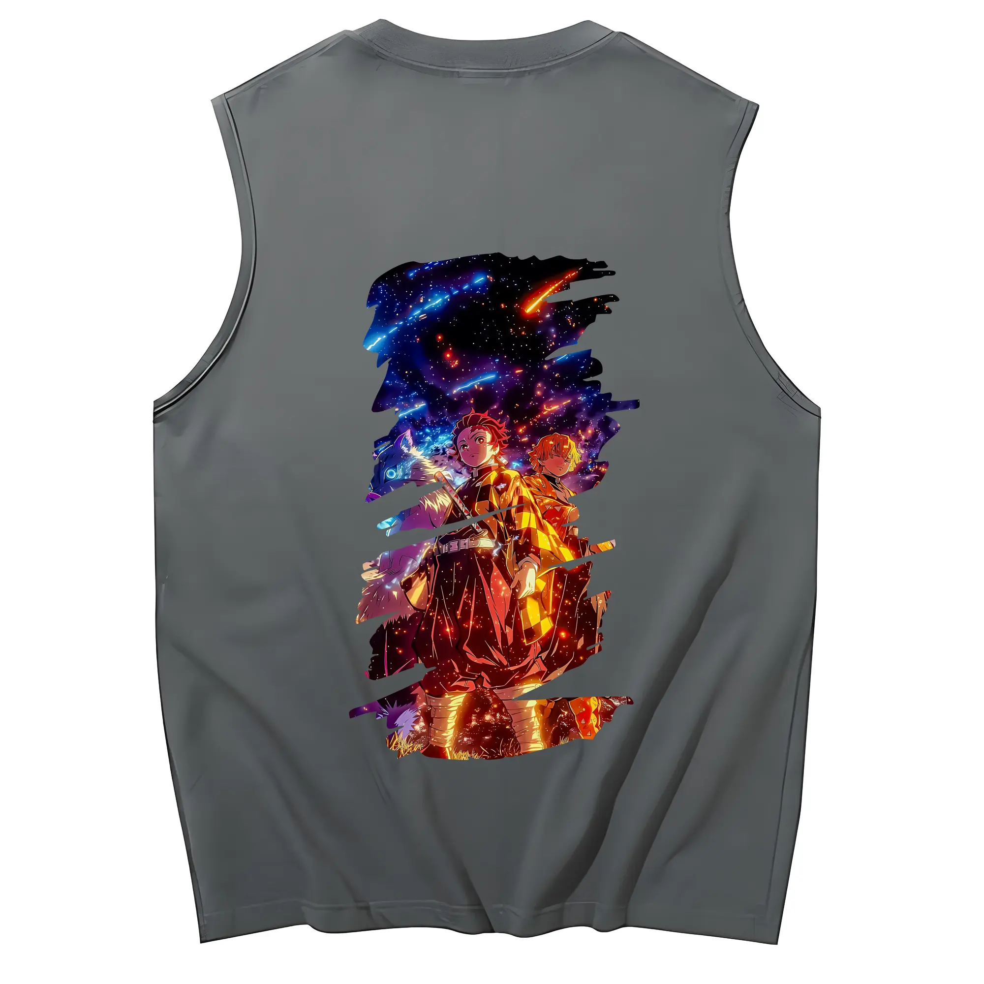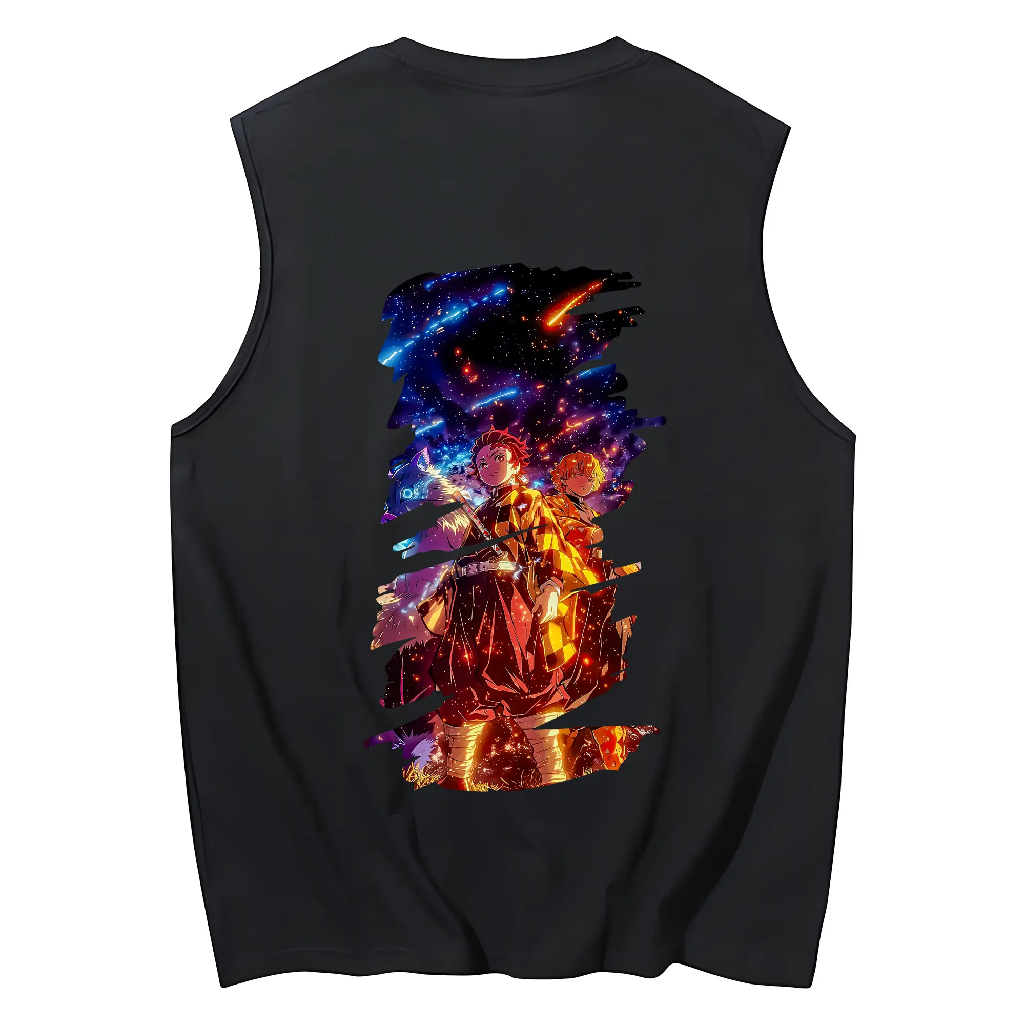 鬼滅の刃 グッズ,竈門 炭治郎 - コットン100% タンクトップ ・ 背面プリント ・ タイトシルエット ・ 快適 通気性 ・ スポーツ カジュアル 散歩用
