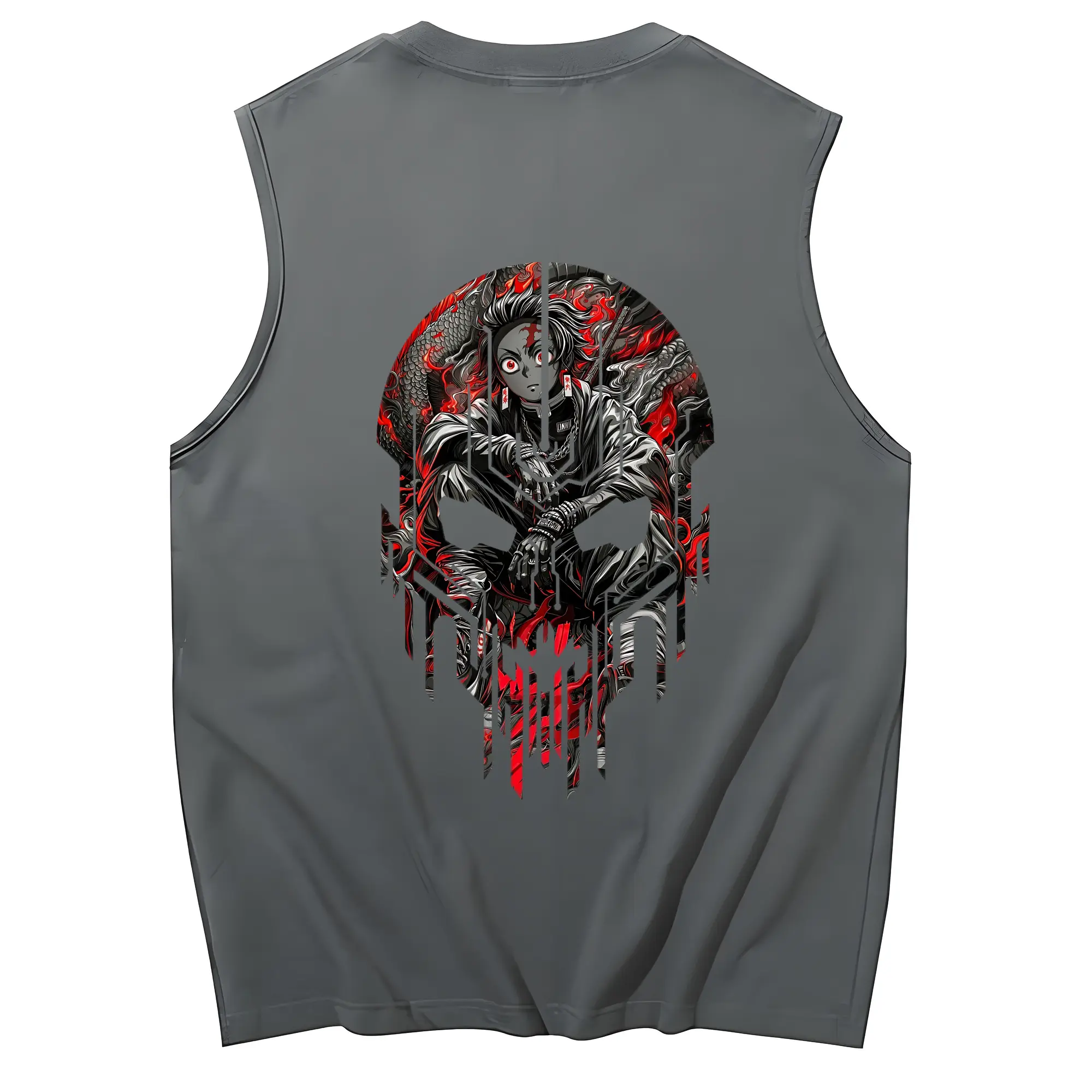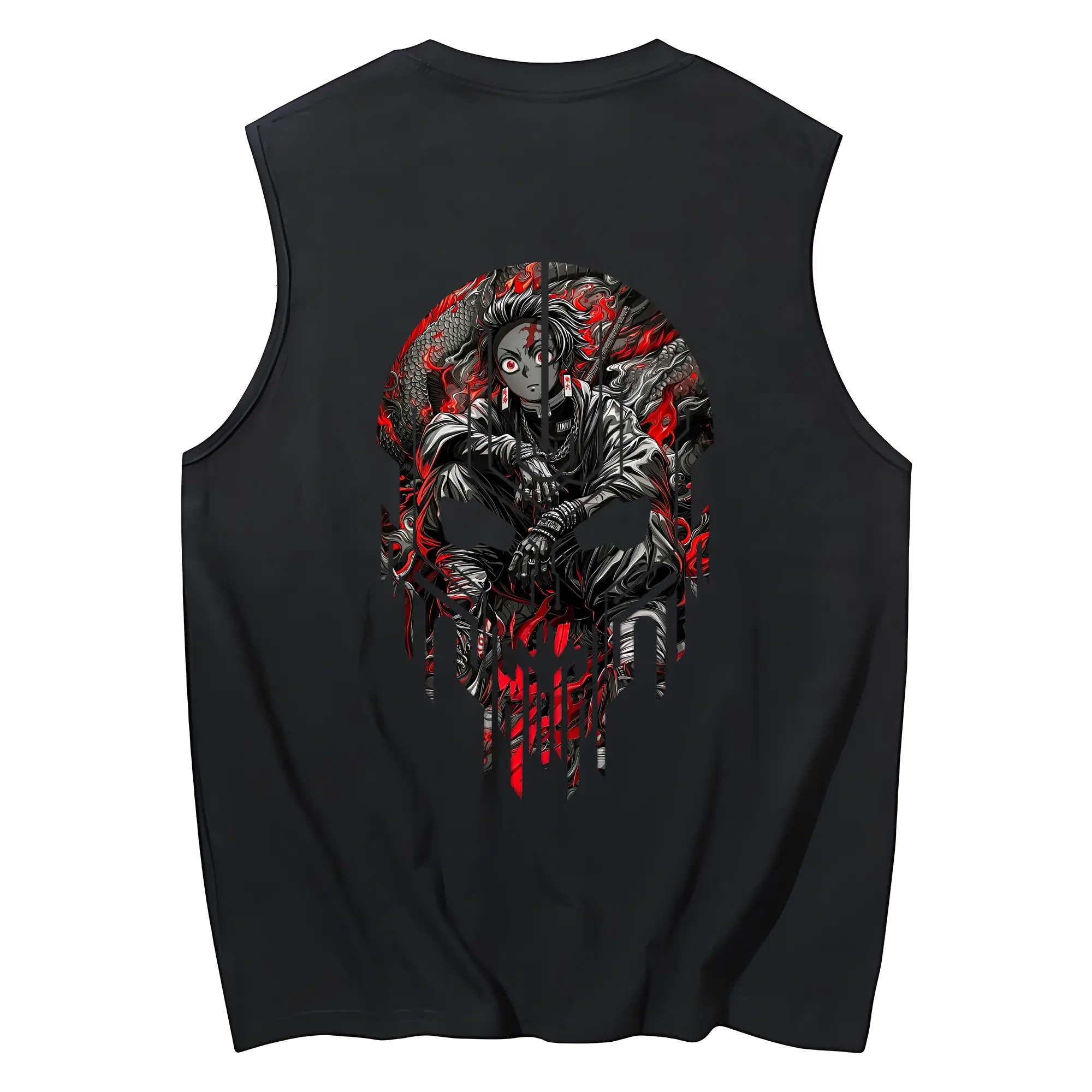 鬼滅の刃 グッズ,竈門 炭治郎 - コットン100% タンクトップ ・ 背面プリント ・ タイトシルエット ・ 快適 通気性 ・ スポーツ カジュアル 散歩用