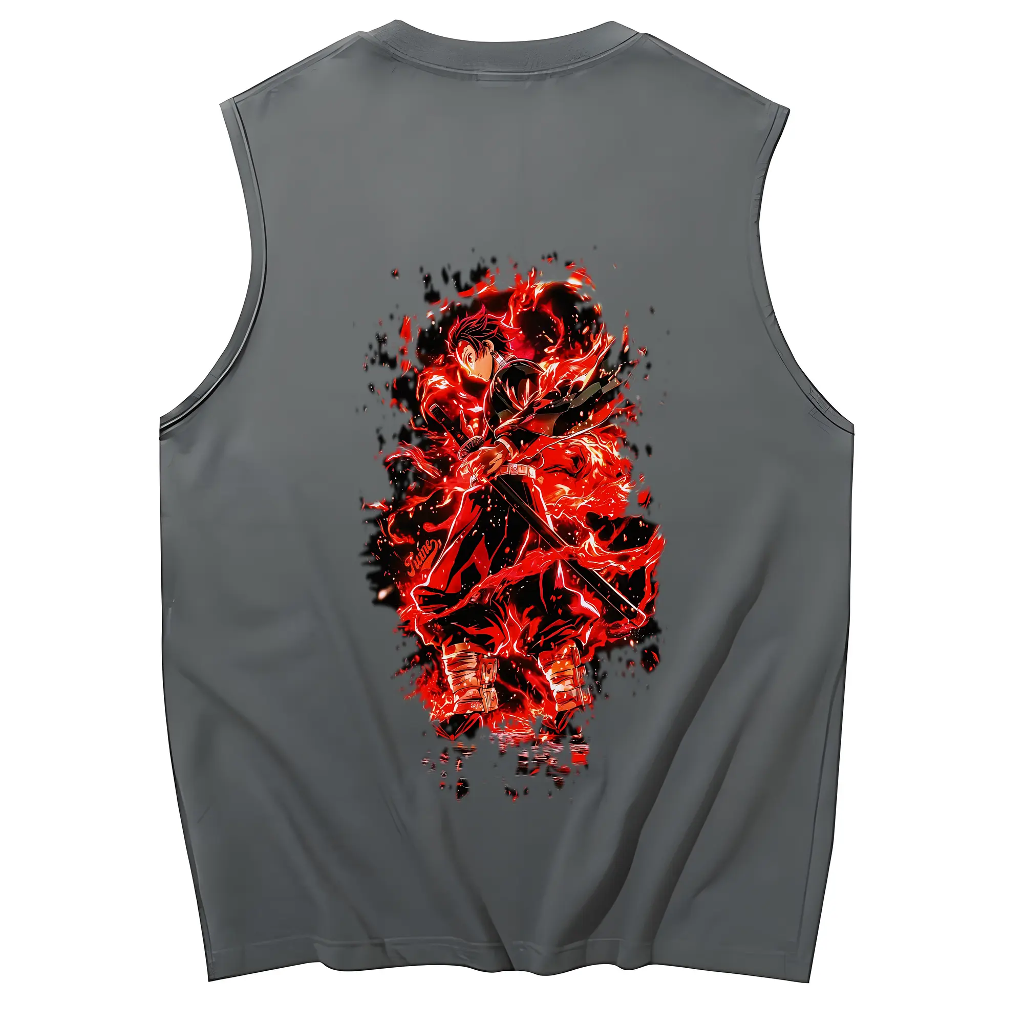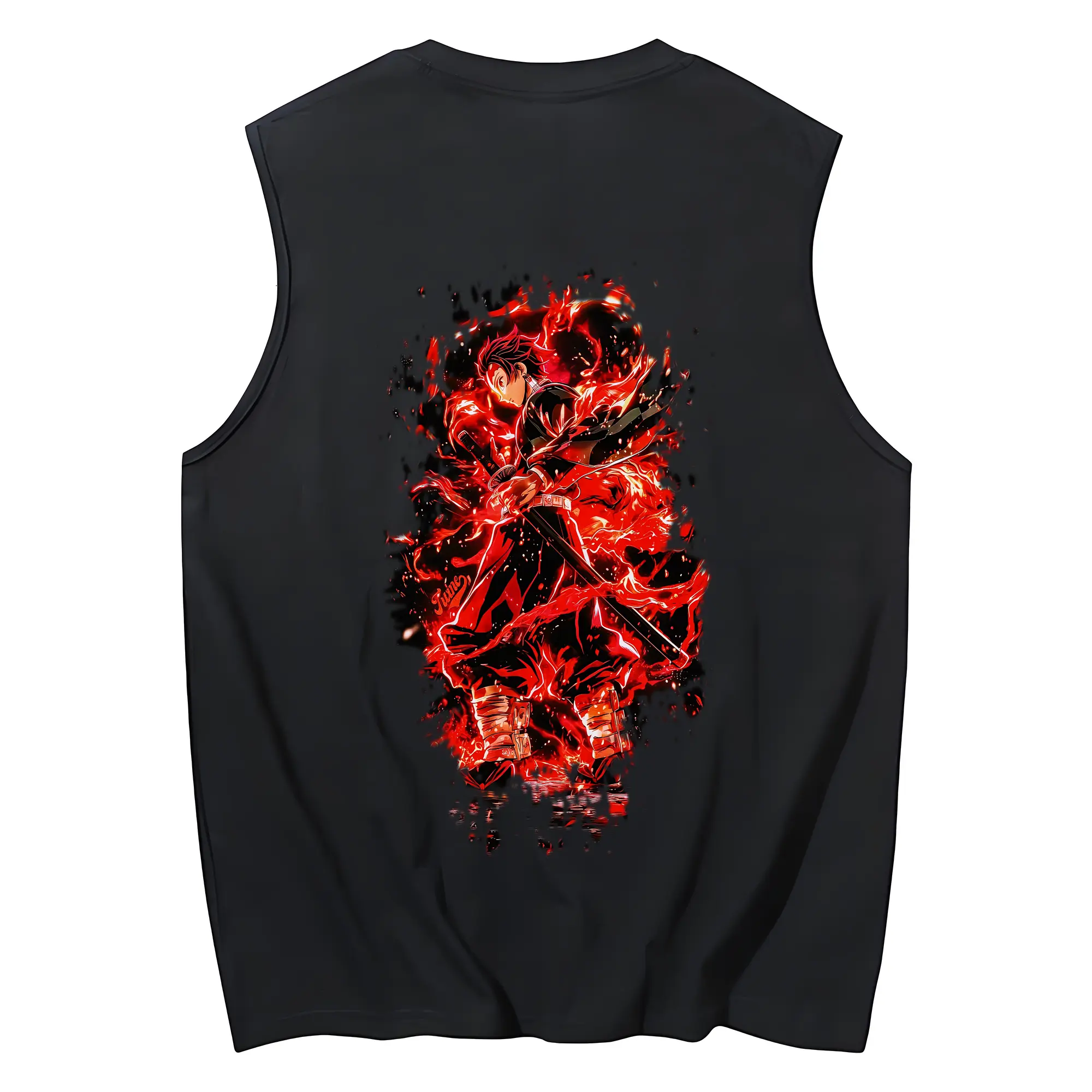 鬼滅の刃 グッズ,竈門 炭治郎 - コットン100% タンクトップ ・ 背面プリント ・ タイトシルエット ・ 快適 通気性 ・ スポーツ カジュアル 散歩用