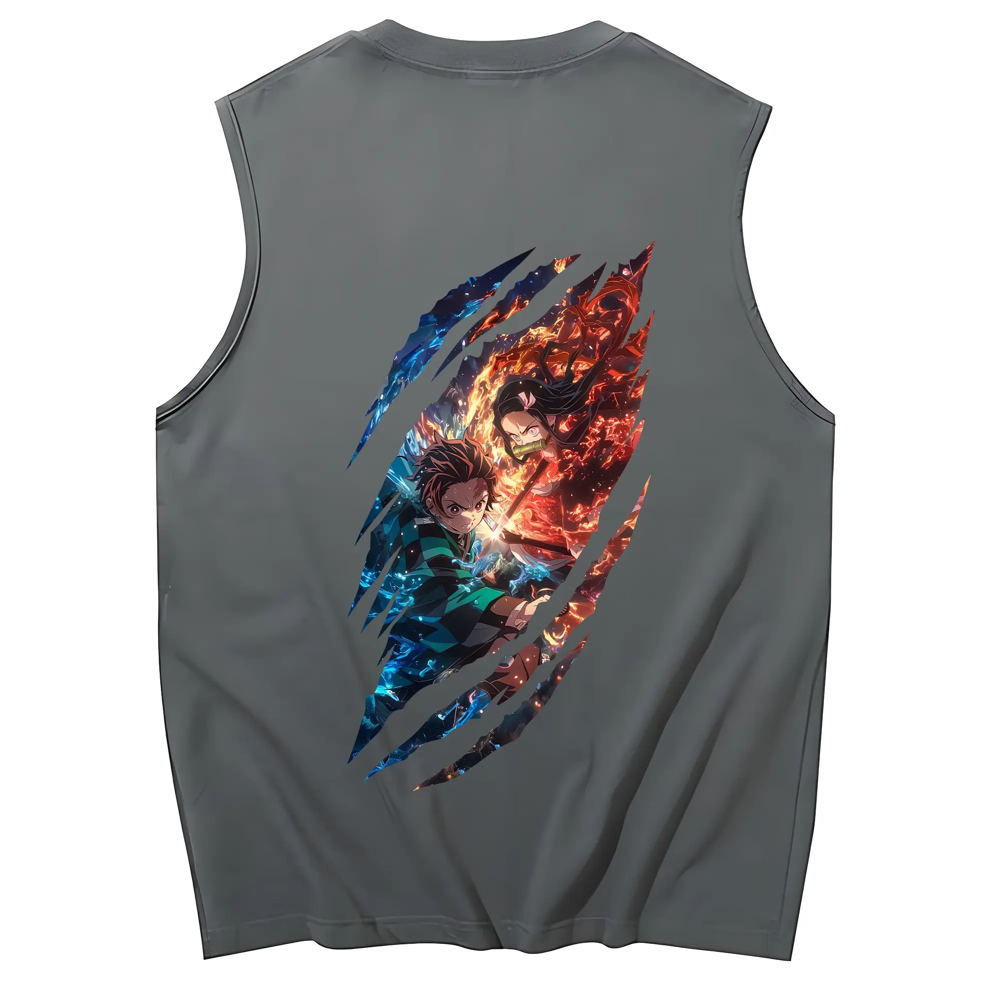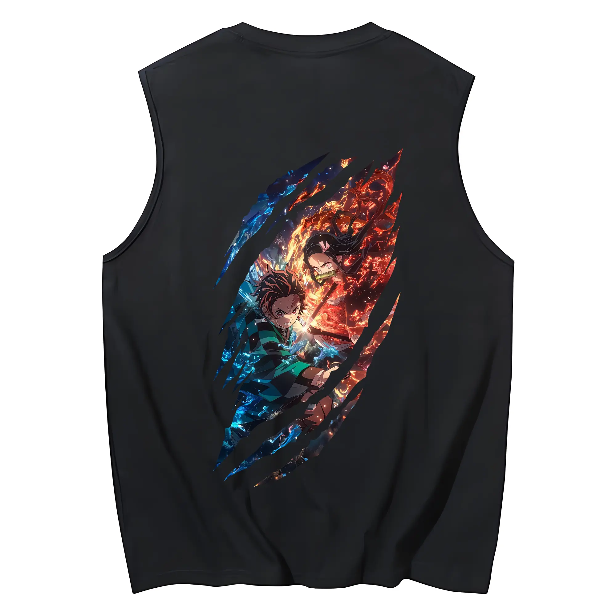 鬼滅の刃 グッズ,竈門 炭治郎 - コットン100% タンクトップ ・ 背面プリント ・ タイトシルエット ・ 快適 通気性 ・ スポーツ カジュアル 散歩用