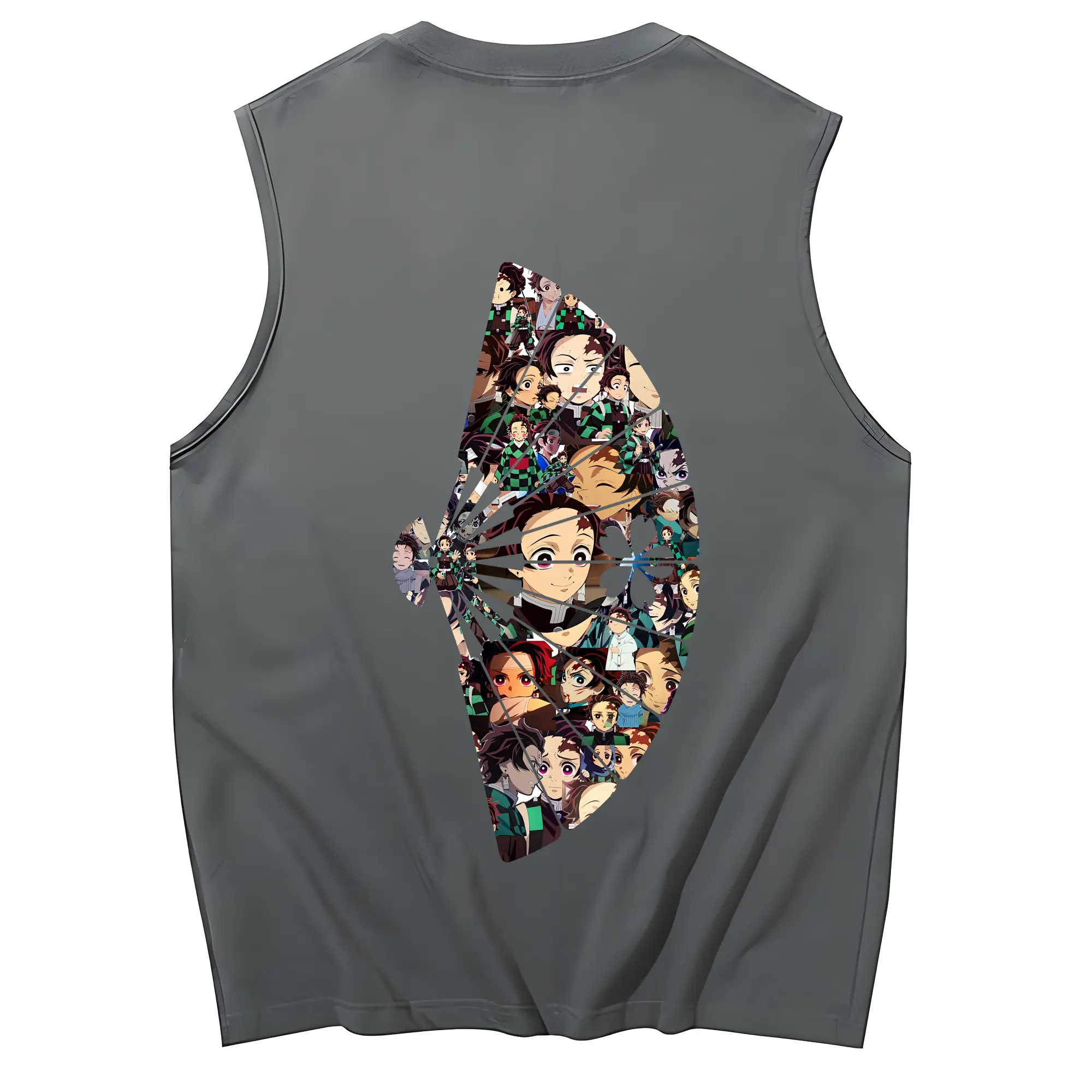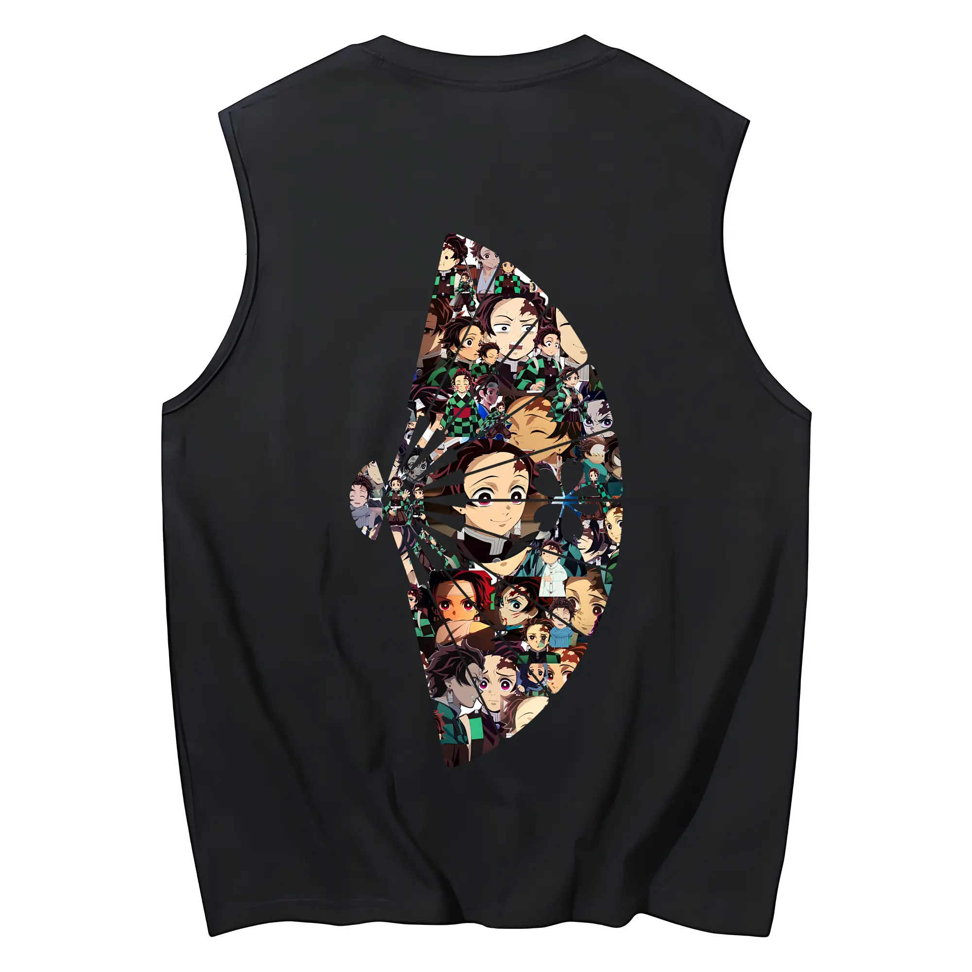 鬼滅の刃 グッズ,竈門 炭治郎 - コットン100% タンクトップ ・ 背面プリント ・ タイトシルエット ・ 快適 通気性 ・ スポーツ カジュアル 散歩用