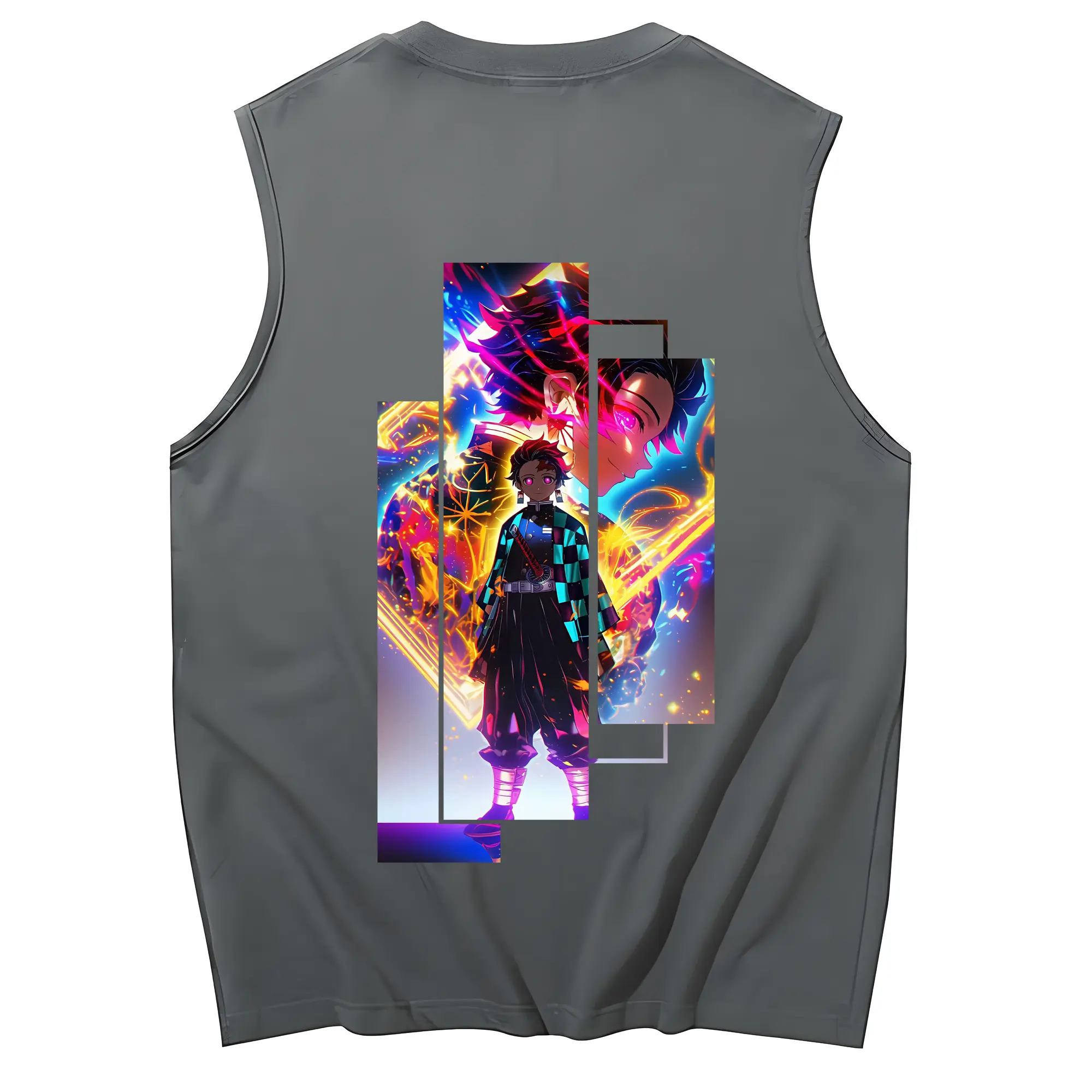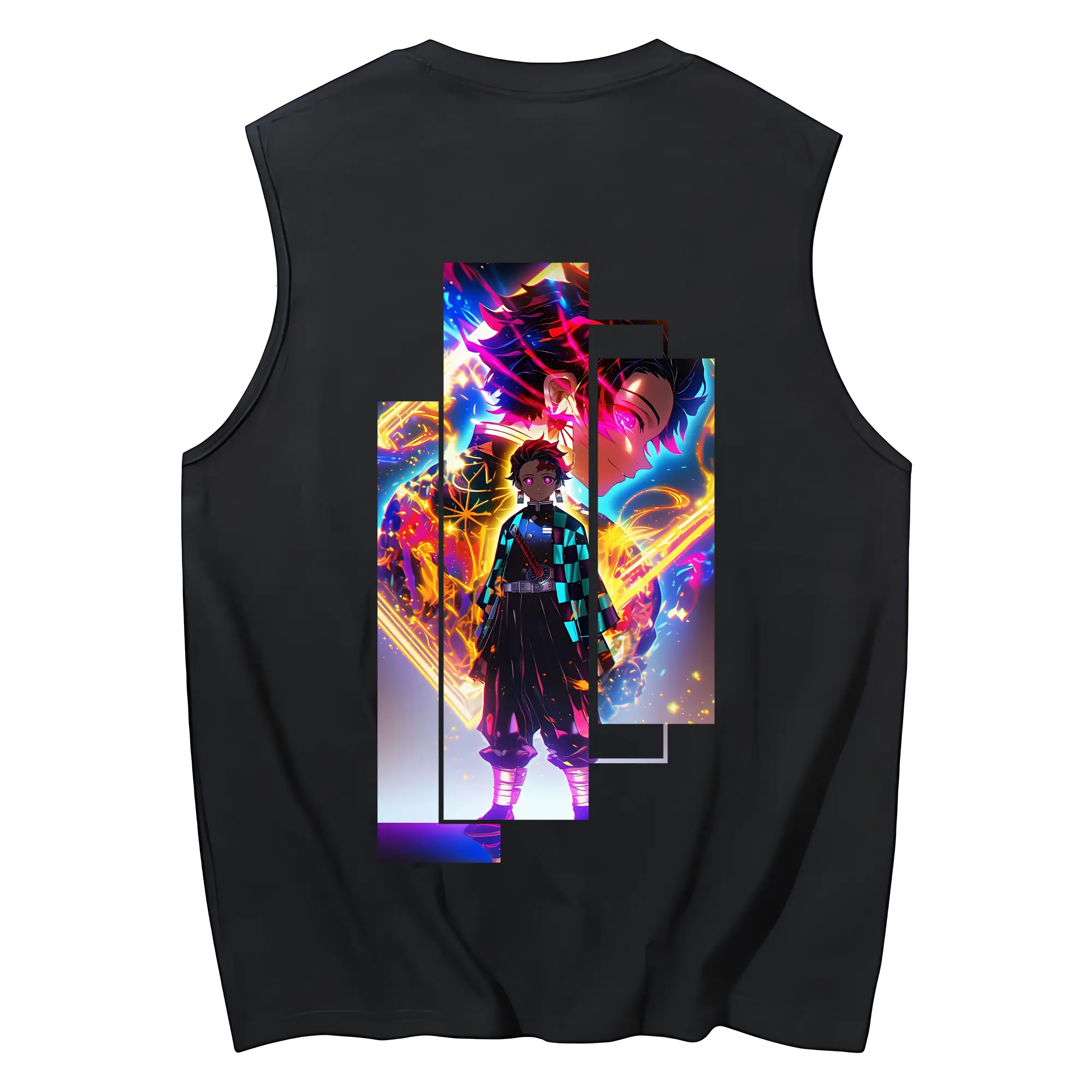 鬼滅の刃 グッズ,竈門 炭治郎 - コットン100% タンクトップ ・ 背面プリント ・ タイトシルエット ・ 快適 通気性 ・ スポーツ カジュアル 散歩用
