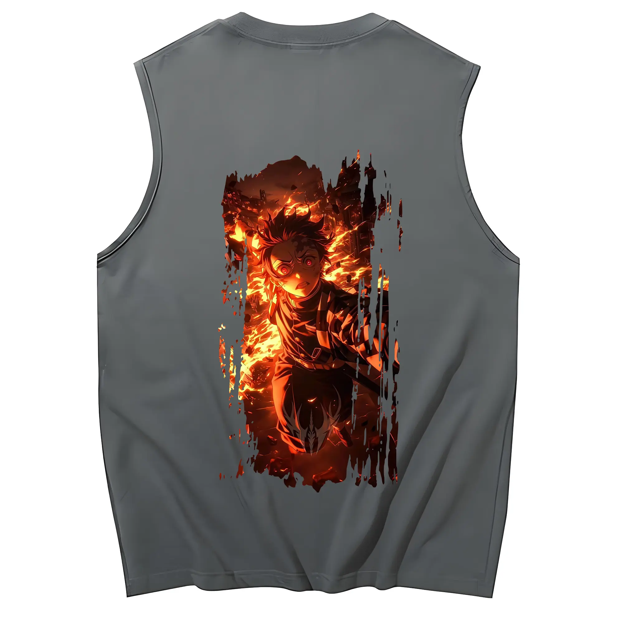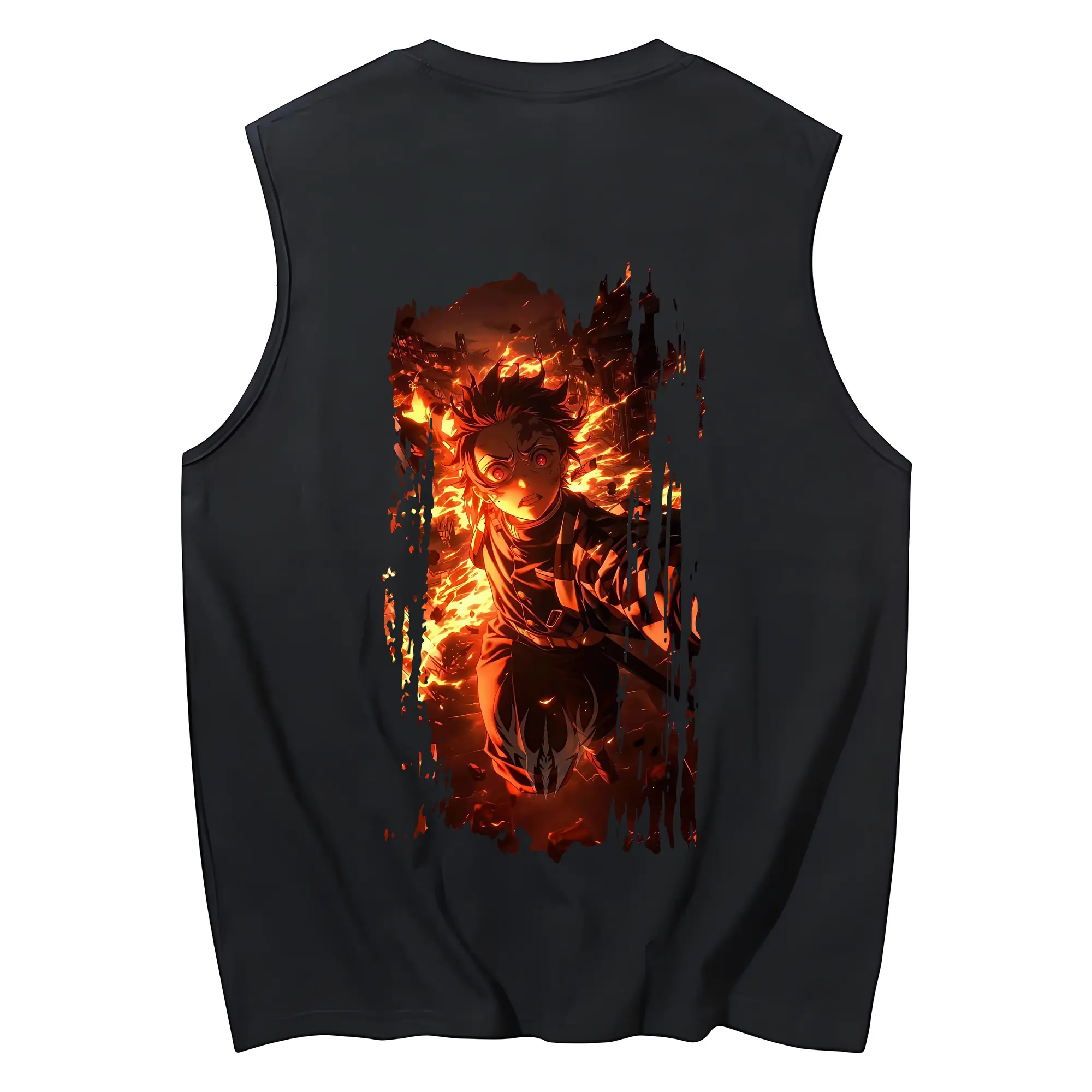 鬼滅の刃 グッズ,竈門 炭治郎 - コットン100% タンクトップ ・ 背面プリント ・ タイトシルエット ・ 快適 通気性 ・ スポーツ カジュアル 散歩用
