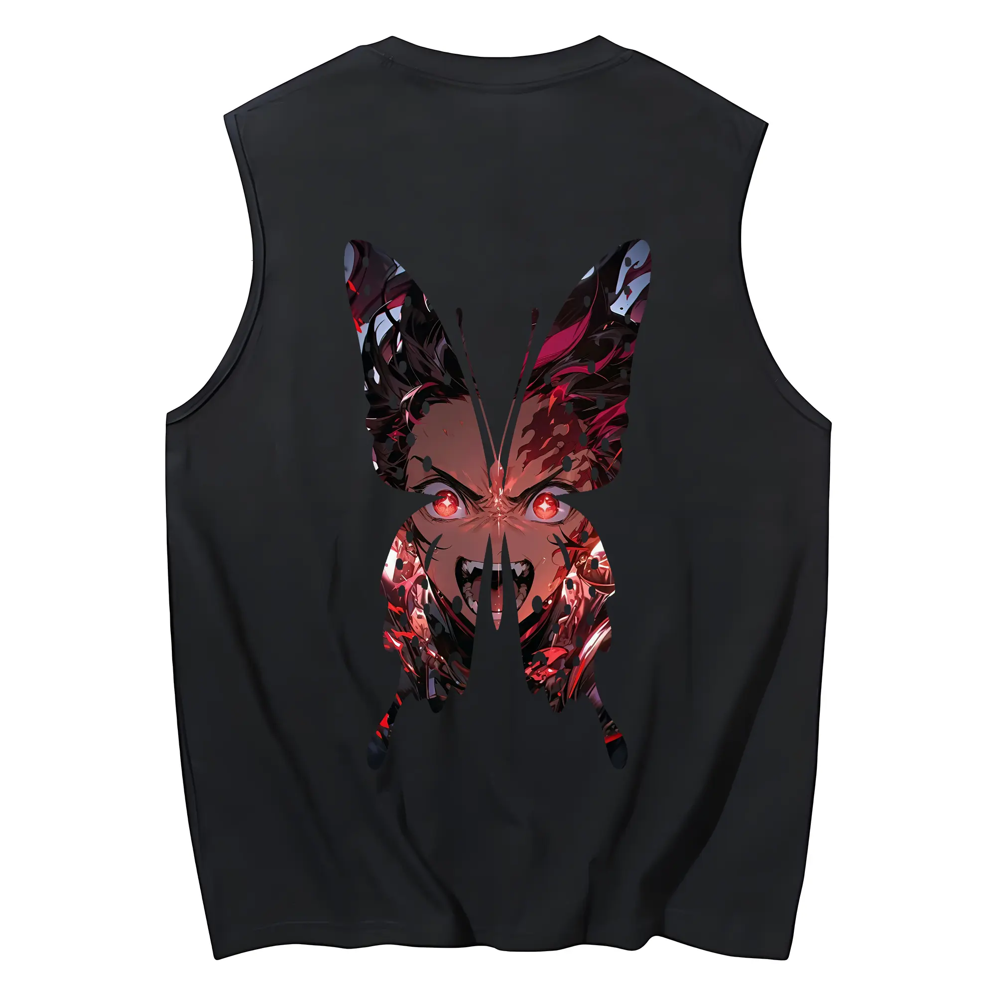 鬼滅の刃 グッズ,竈門 炭治郎 - コットン100% タンクトップ ・ 背面プリント ・ タイトシルエット ・ 快適 通気性 ・ スポーツ カジュアル 散歩用