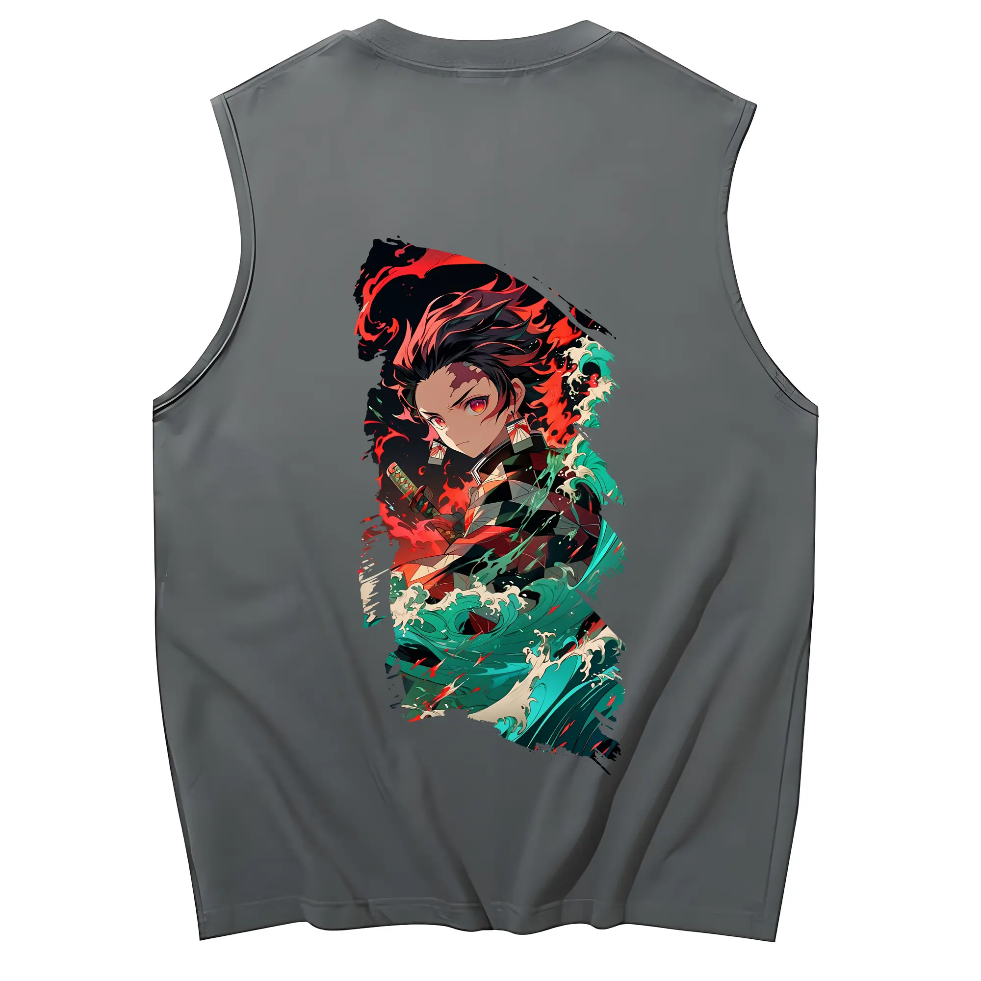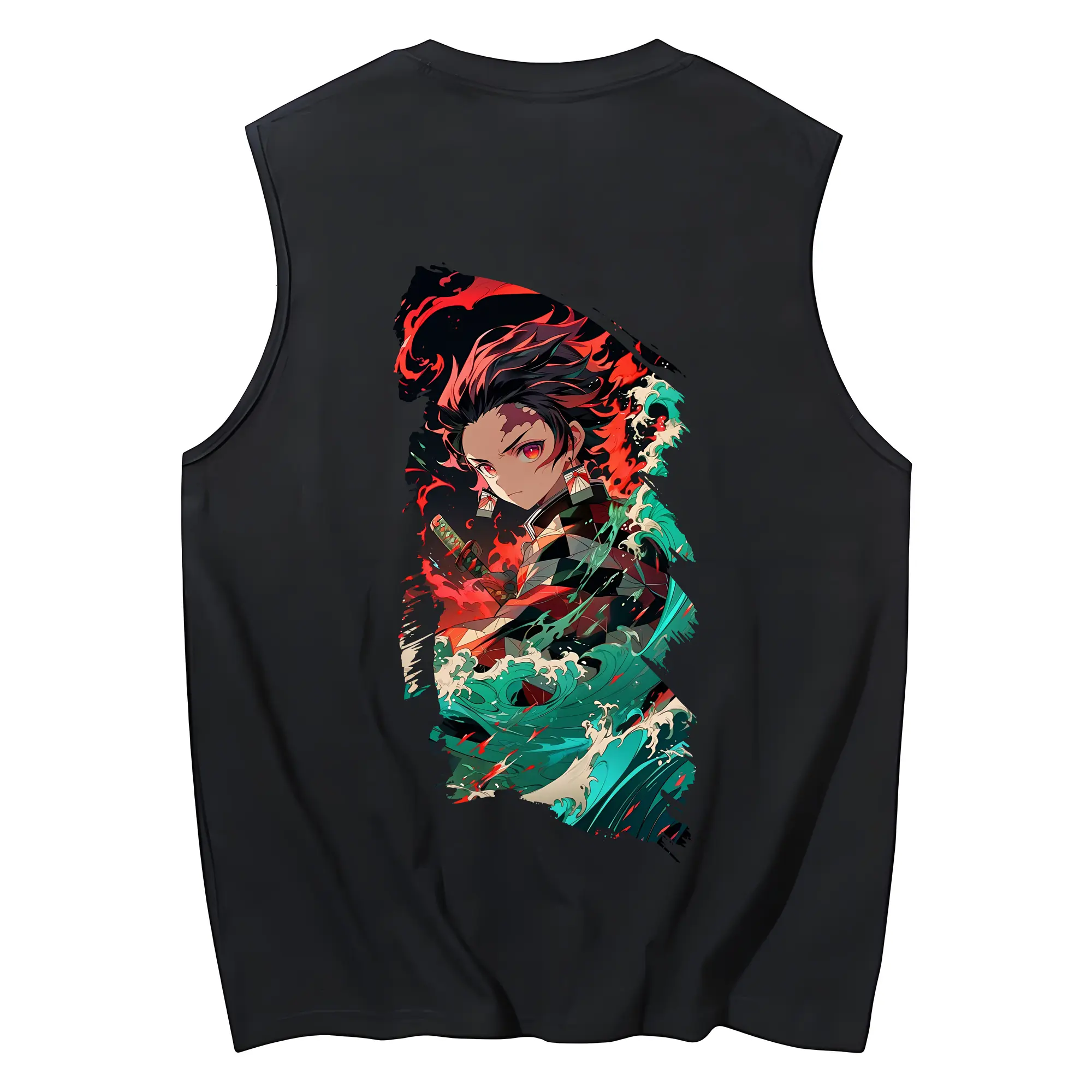 鬼滅の刃 グッズ,竈門 炭治郎 - コットン100% タンクトップ ・ 背面プリント ・ タイトシルエット ・ 快適 通気性 ・ スポーツ カジュアル 散歩用