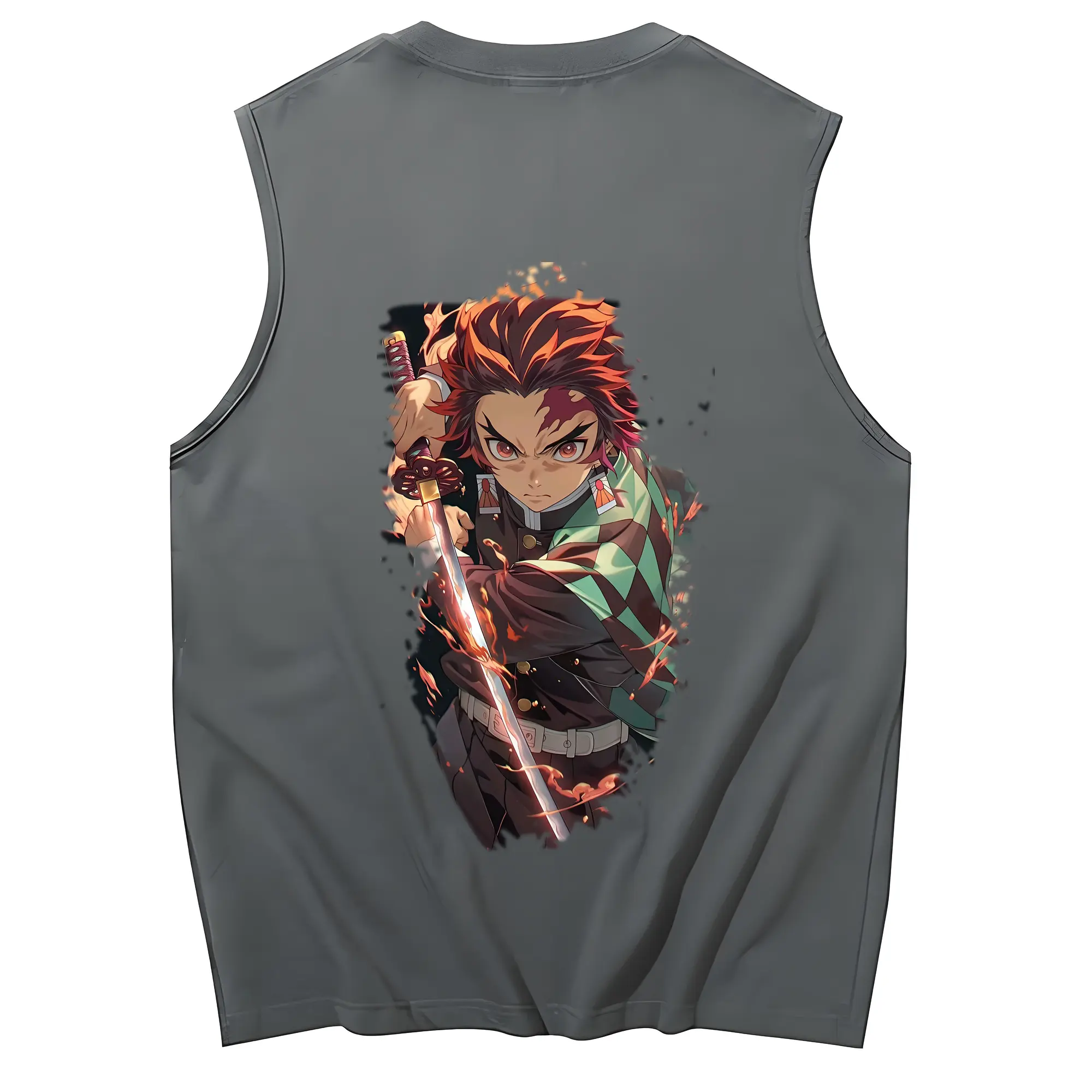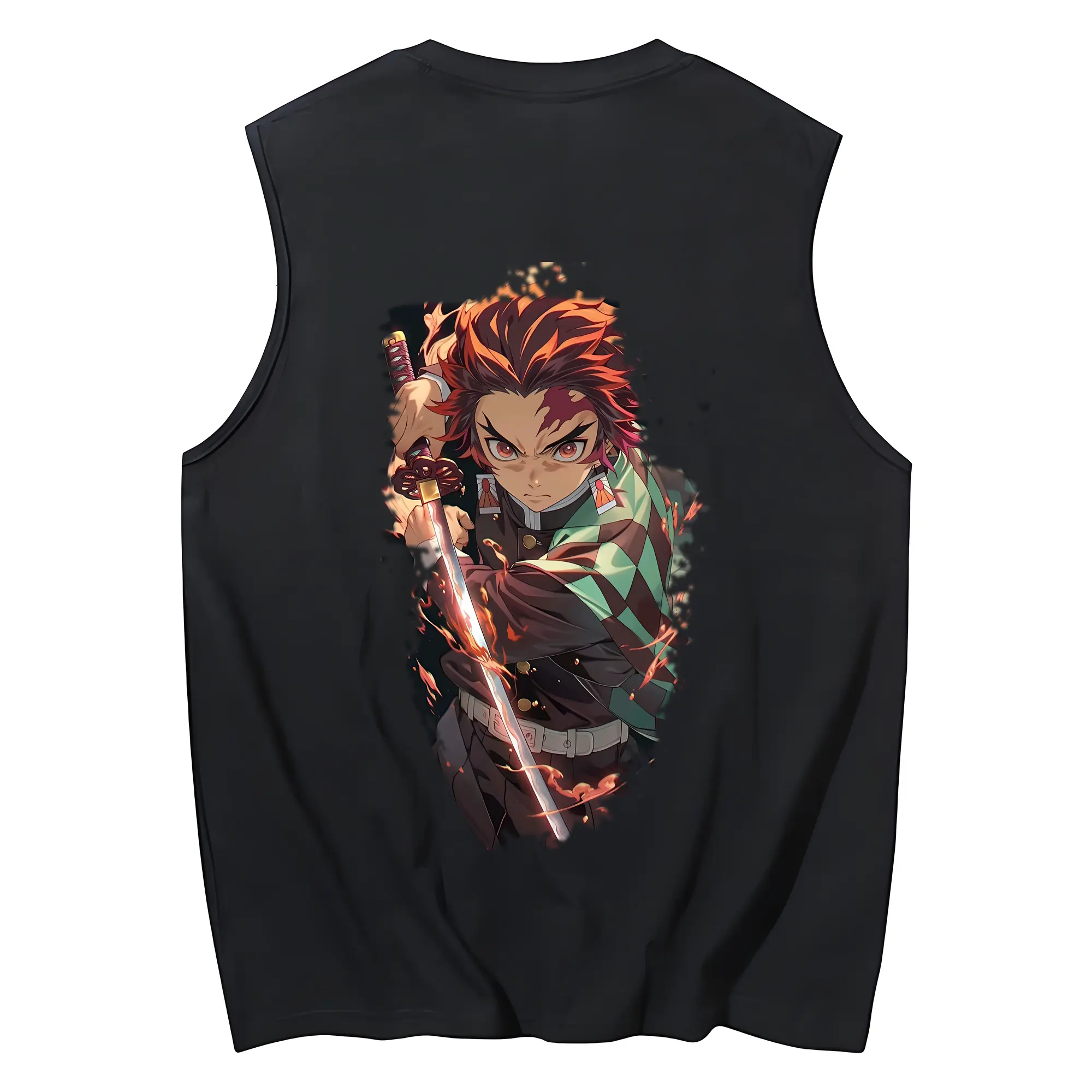 鬼滅の刃 グッズ,竈門 炭治郎 - コットン100% タンクトップ ・ 背面プリント ・ タイトシルエット ・ 快適 通気性 ・ スポーツ カジュアル 散歩用