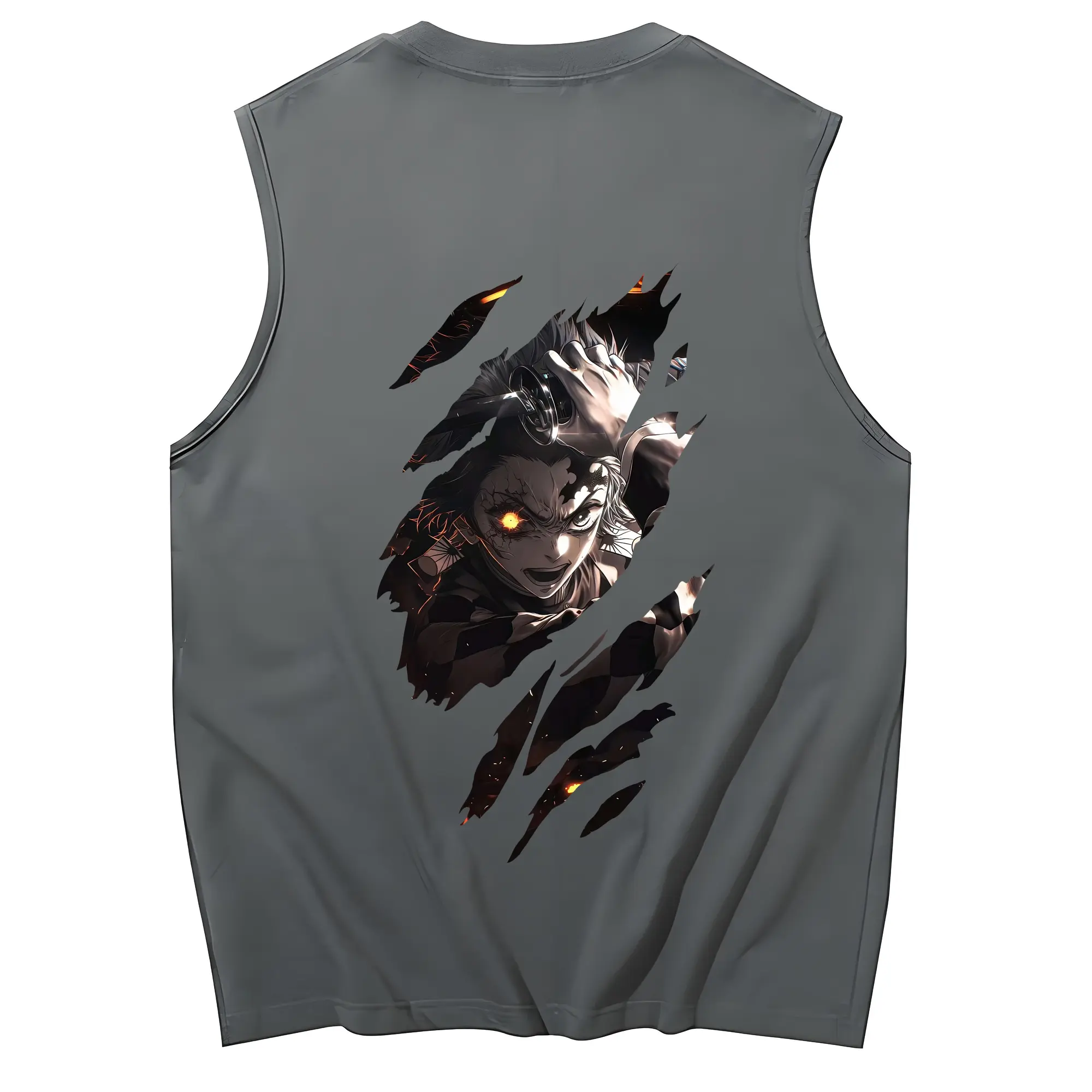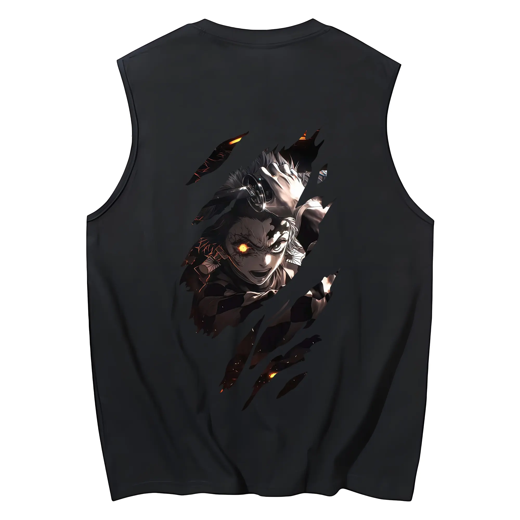 鬼滅の刃 グッズ,竈門 炭治郎 - コットン100% タンクトップ ・ 背面プリント ・ タイトシルエット ・ 快適 通気性 ・ スポーツ カジュアル 散歩用