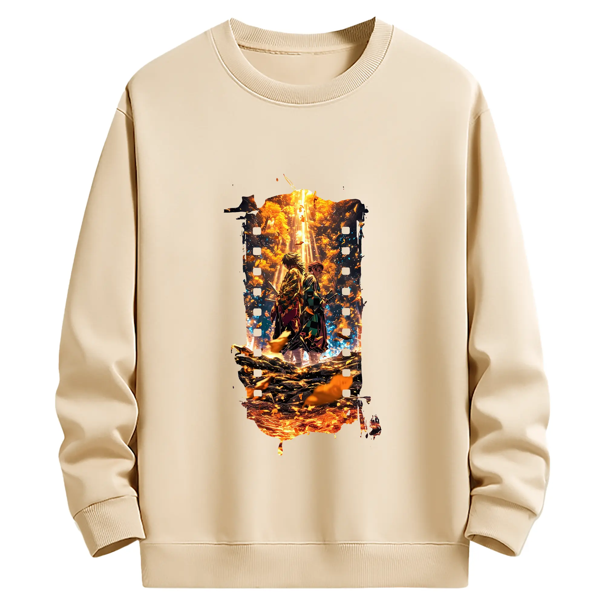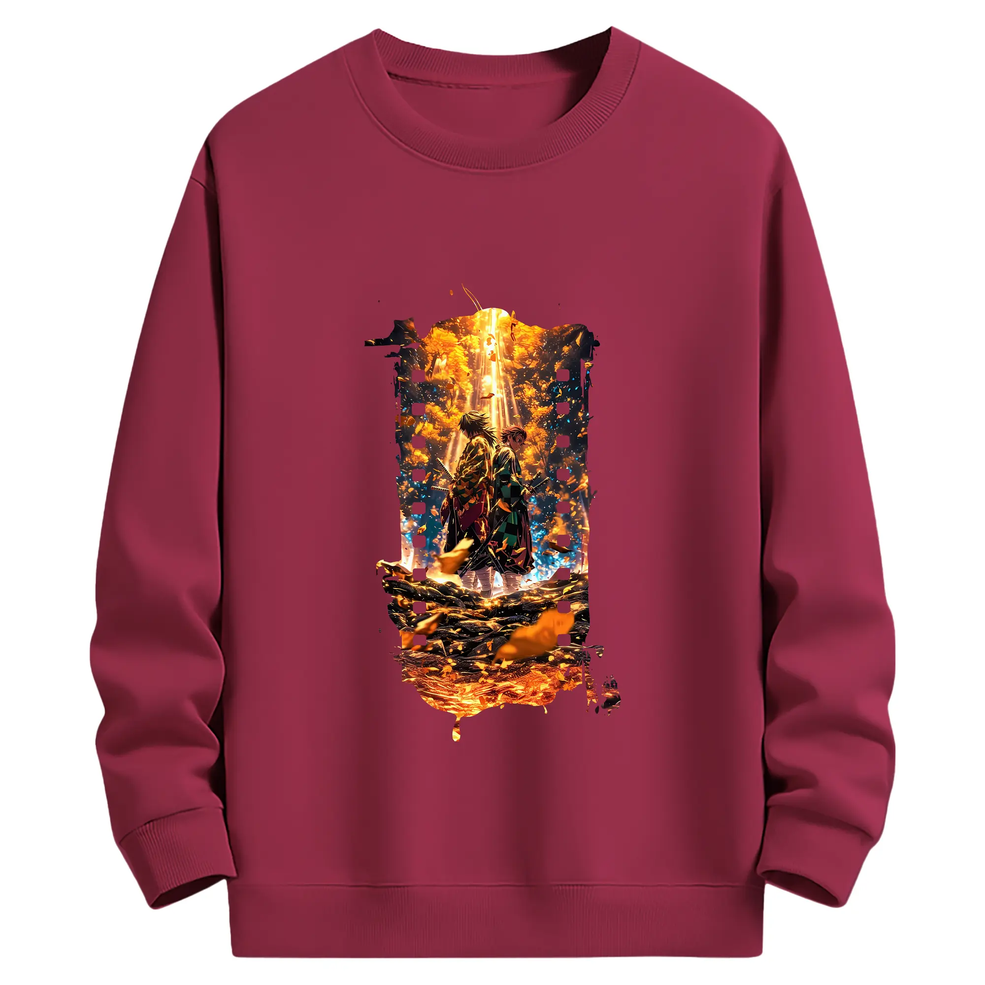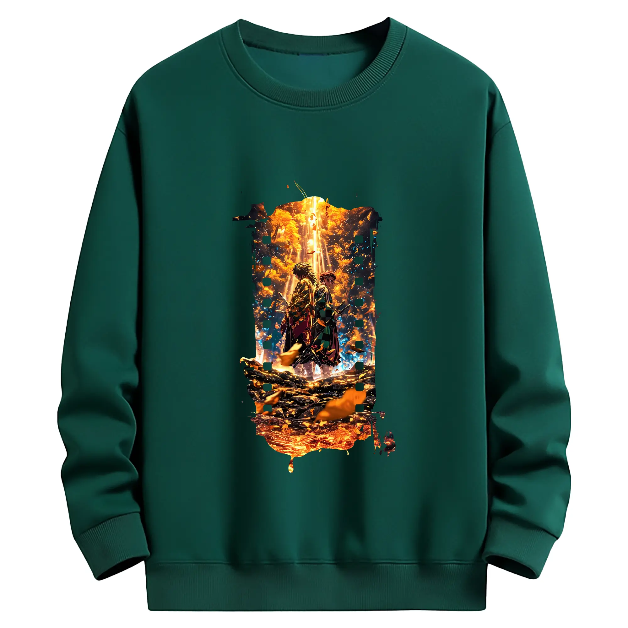鬼滅の刃 グッズ,竈門 炭治郎 - 薄手 クルーネック スウェット 裏毛260g · ポリエステル 春秋向け カジュアル 男女兼用 · トレーナー デイリー スポーツ 散歩に最適