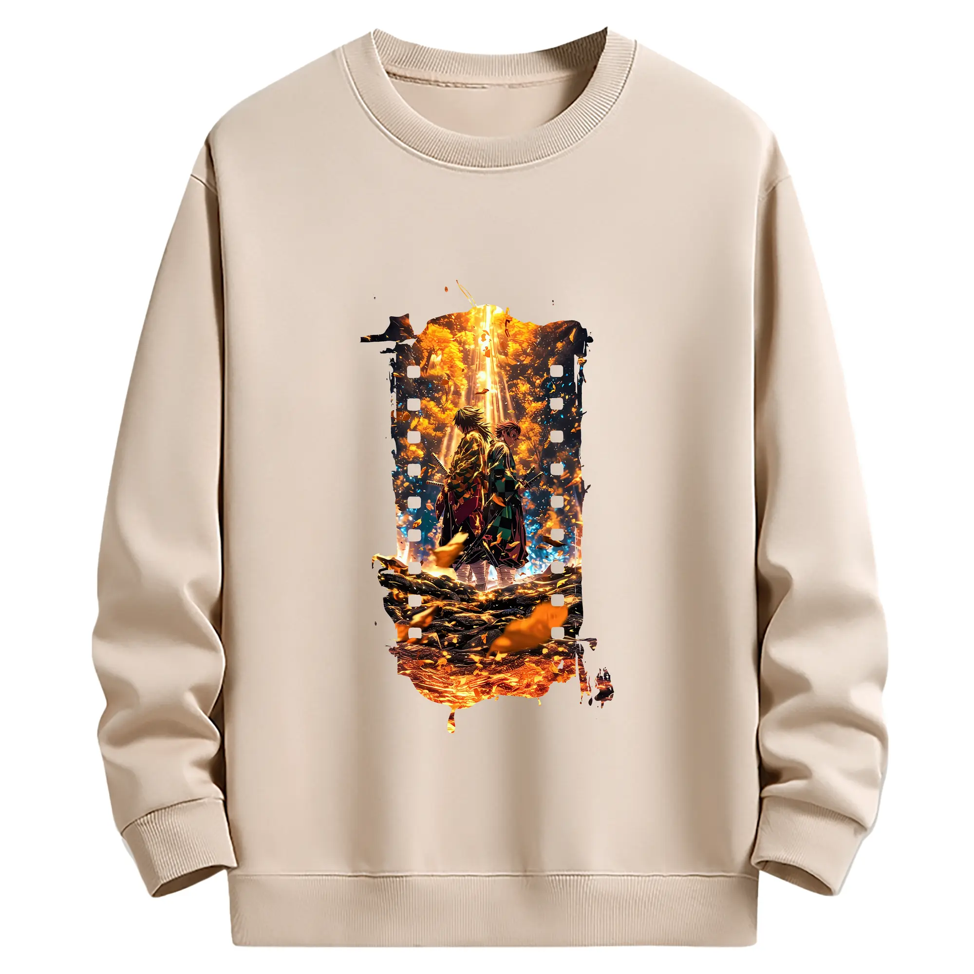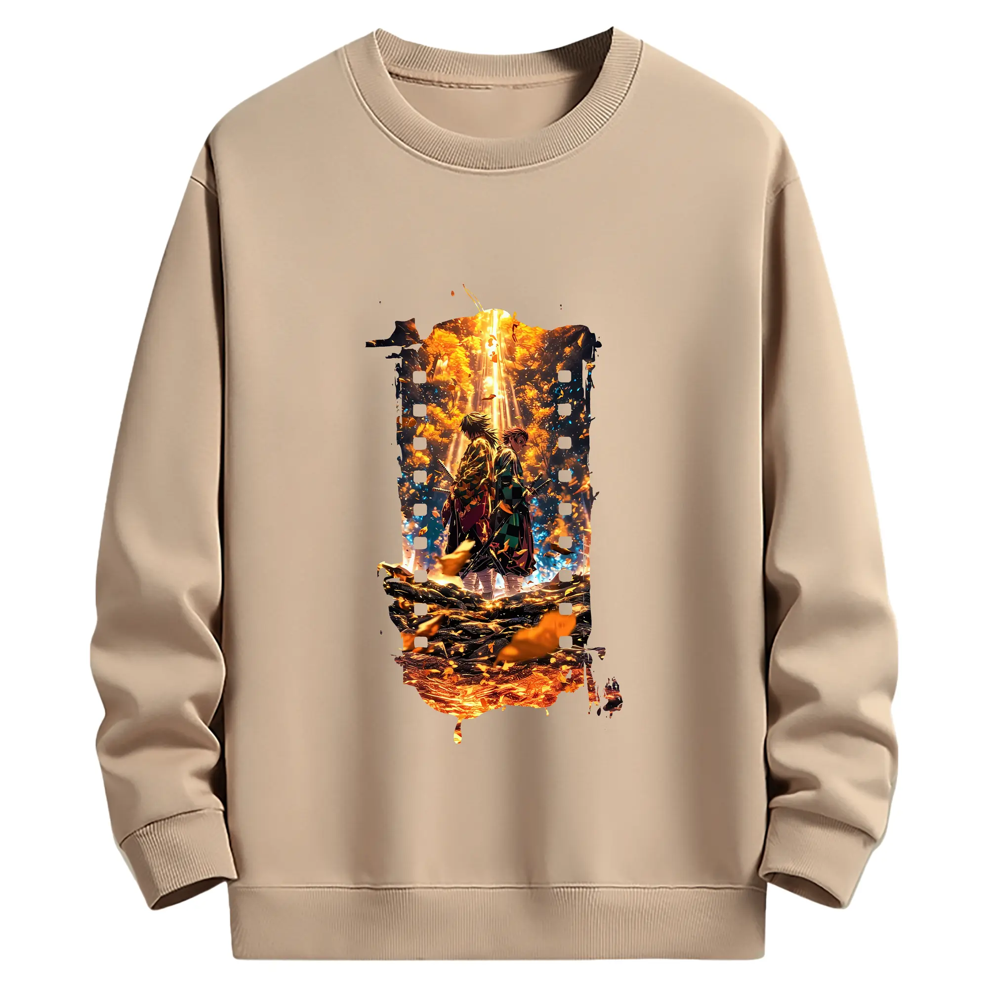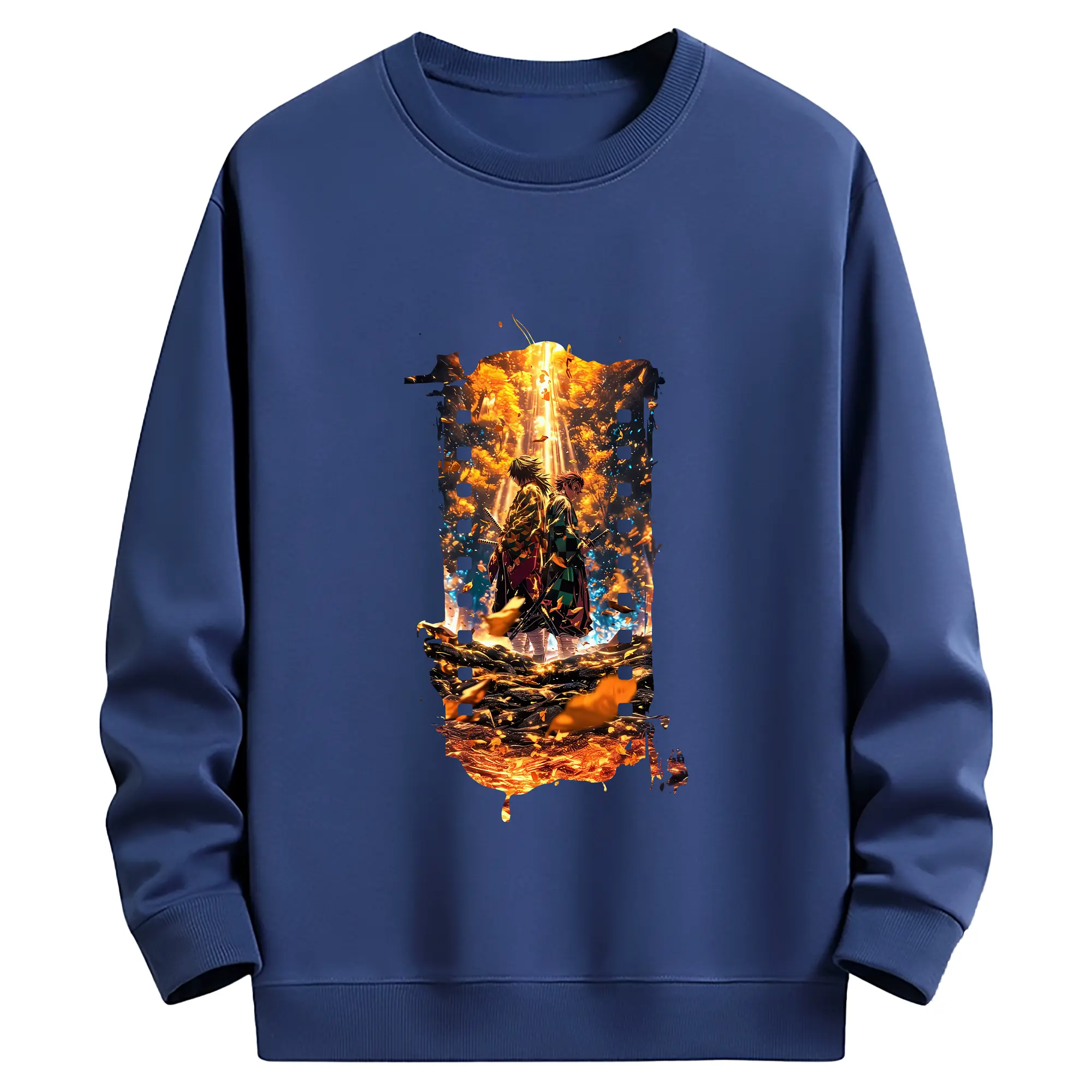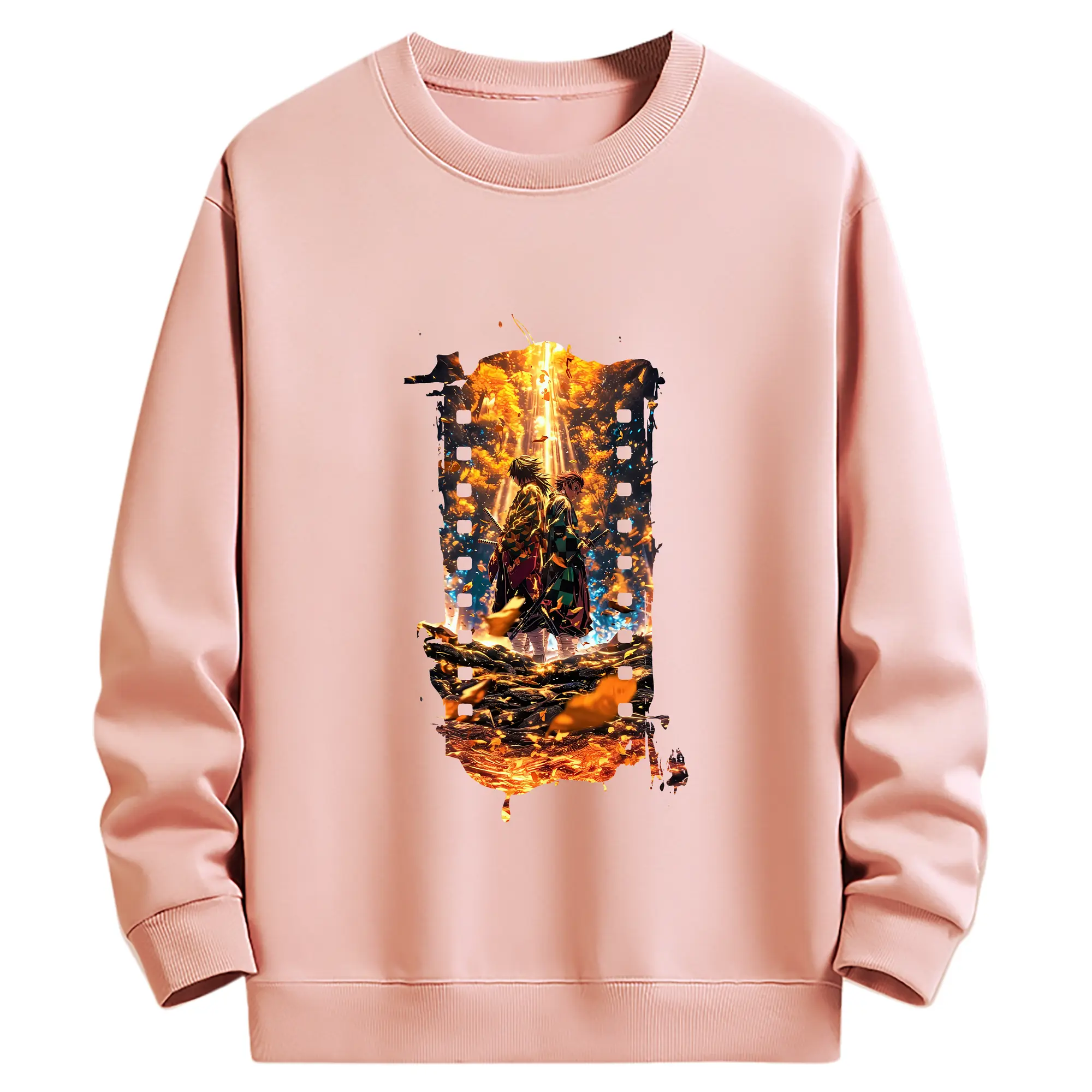 鬼滅の刃 グッズ,竈門 炭治郎 - 薄手 クルーネック スウェット 裏毛260g · ポリエステル 春秋向け カジュアル 男女兼用 · トレーナー デイリー スポーツ 散歩に最適
