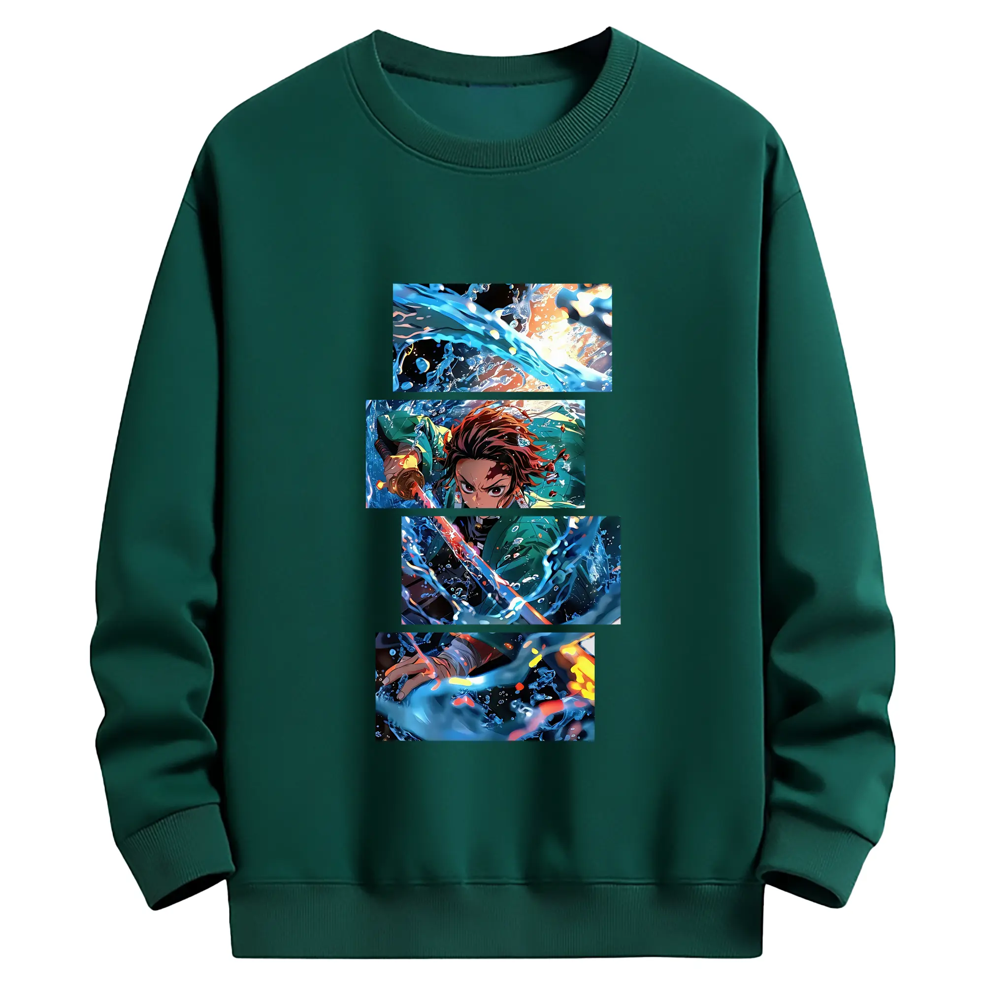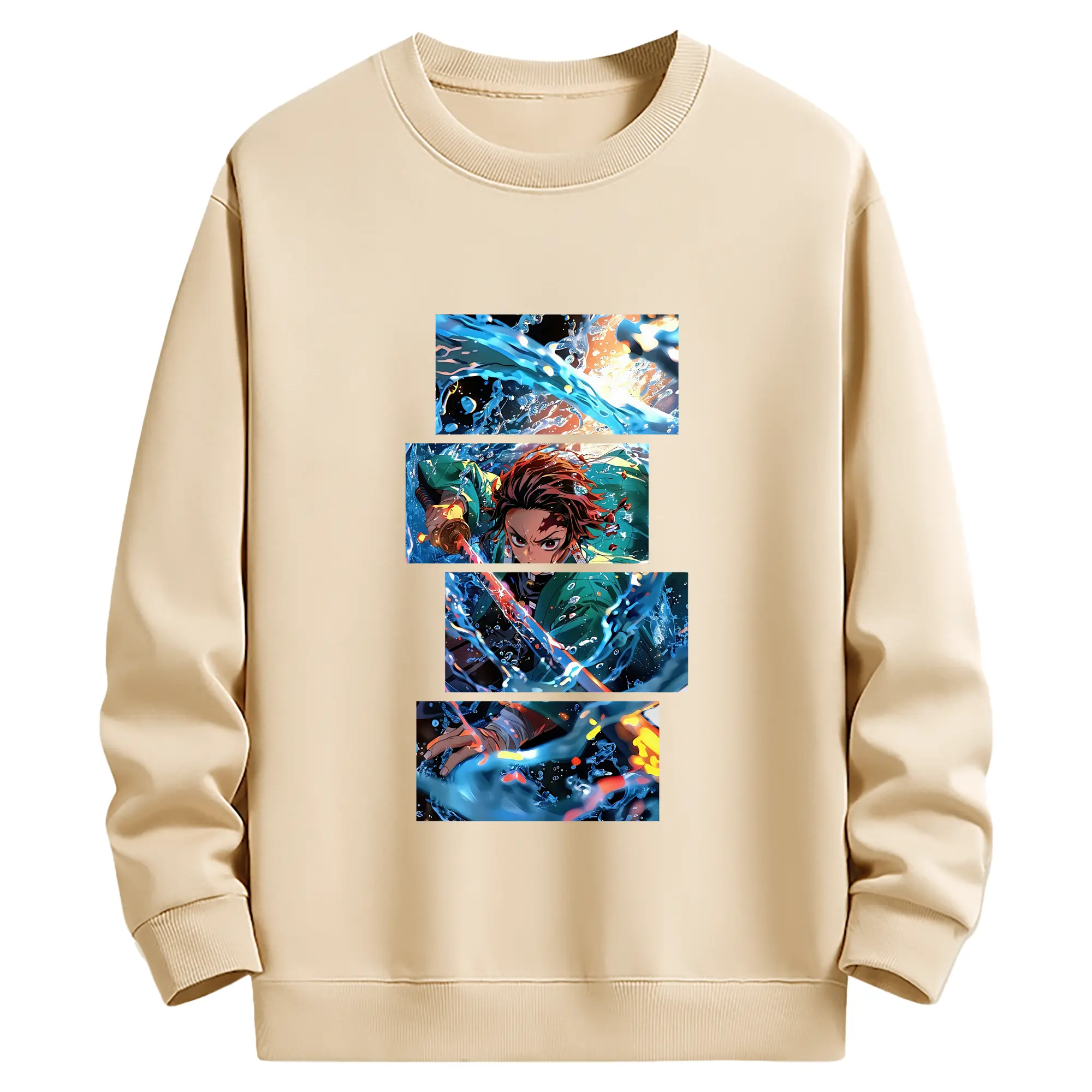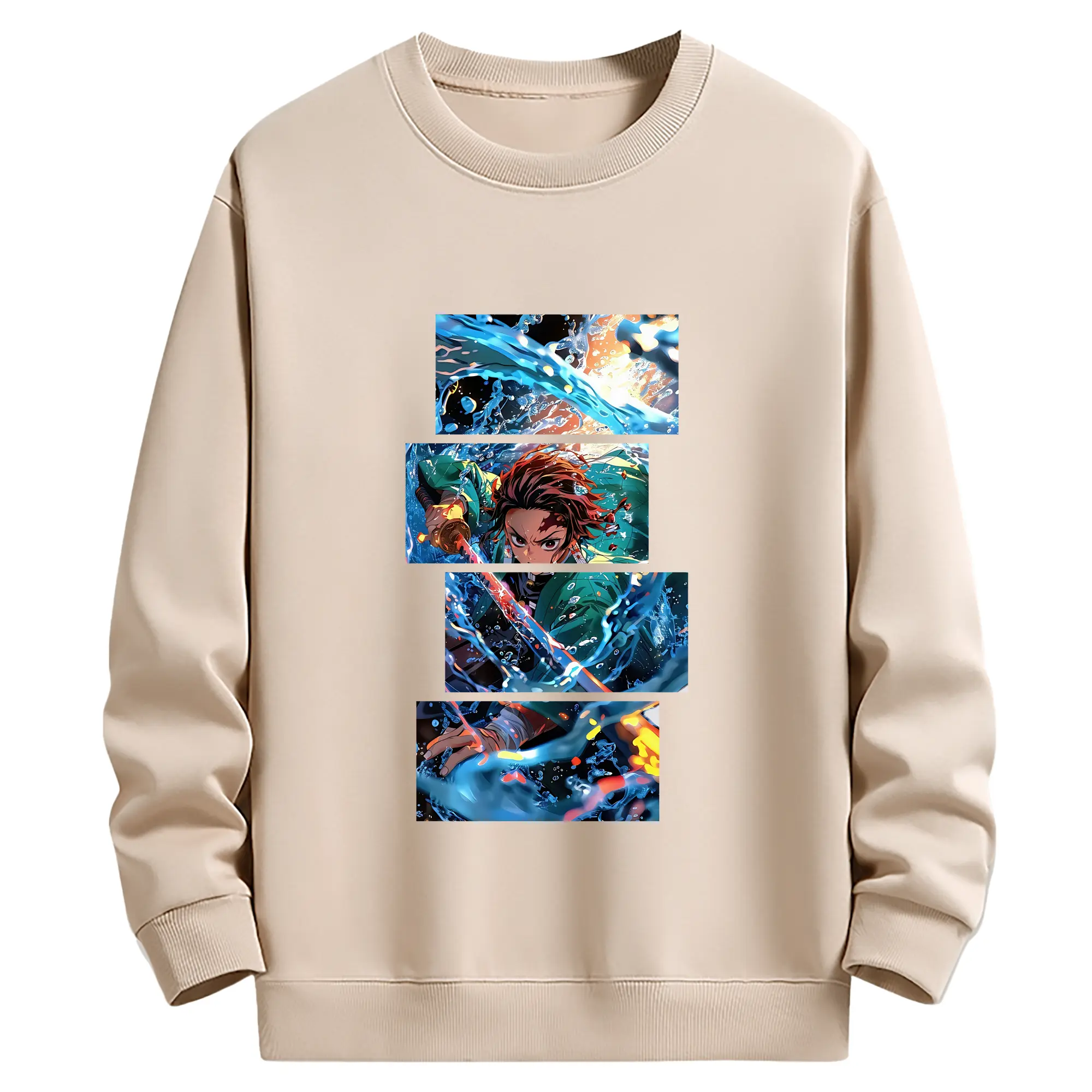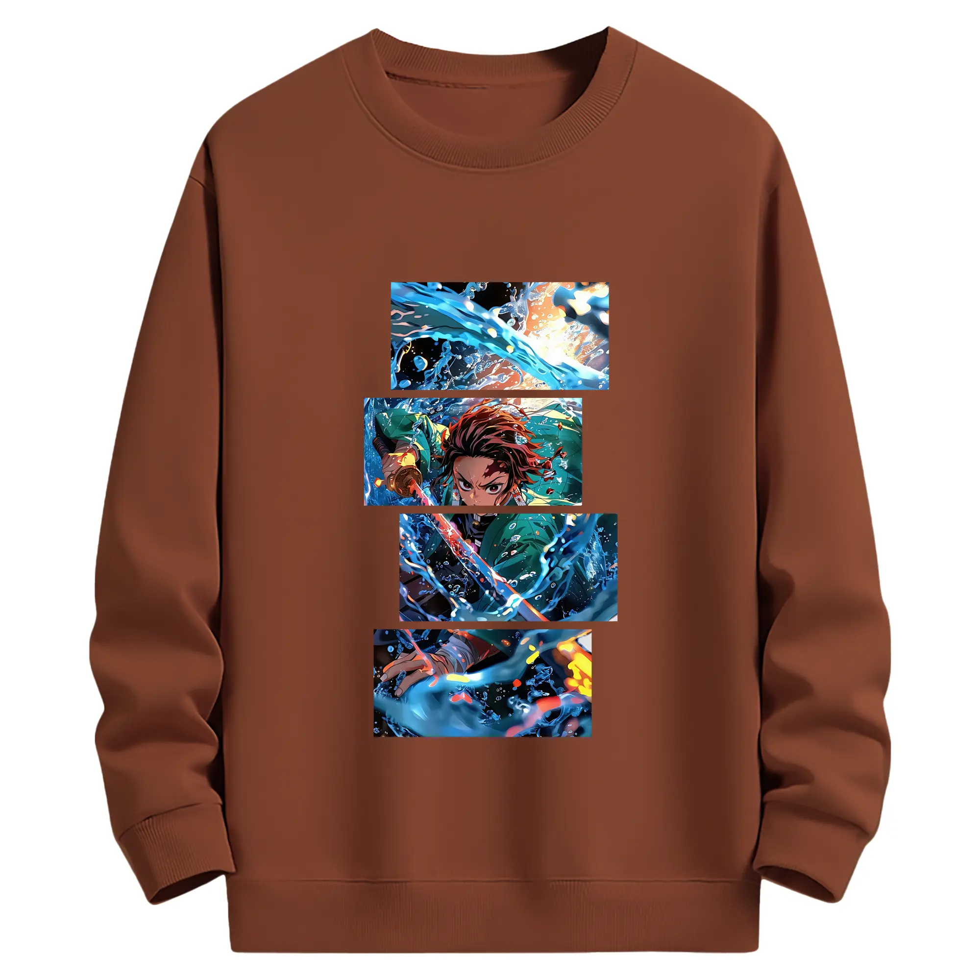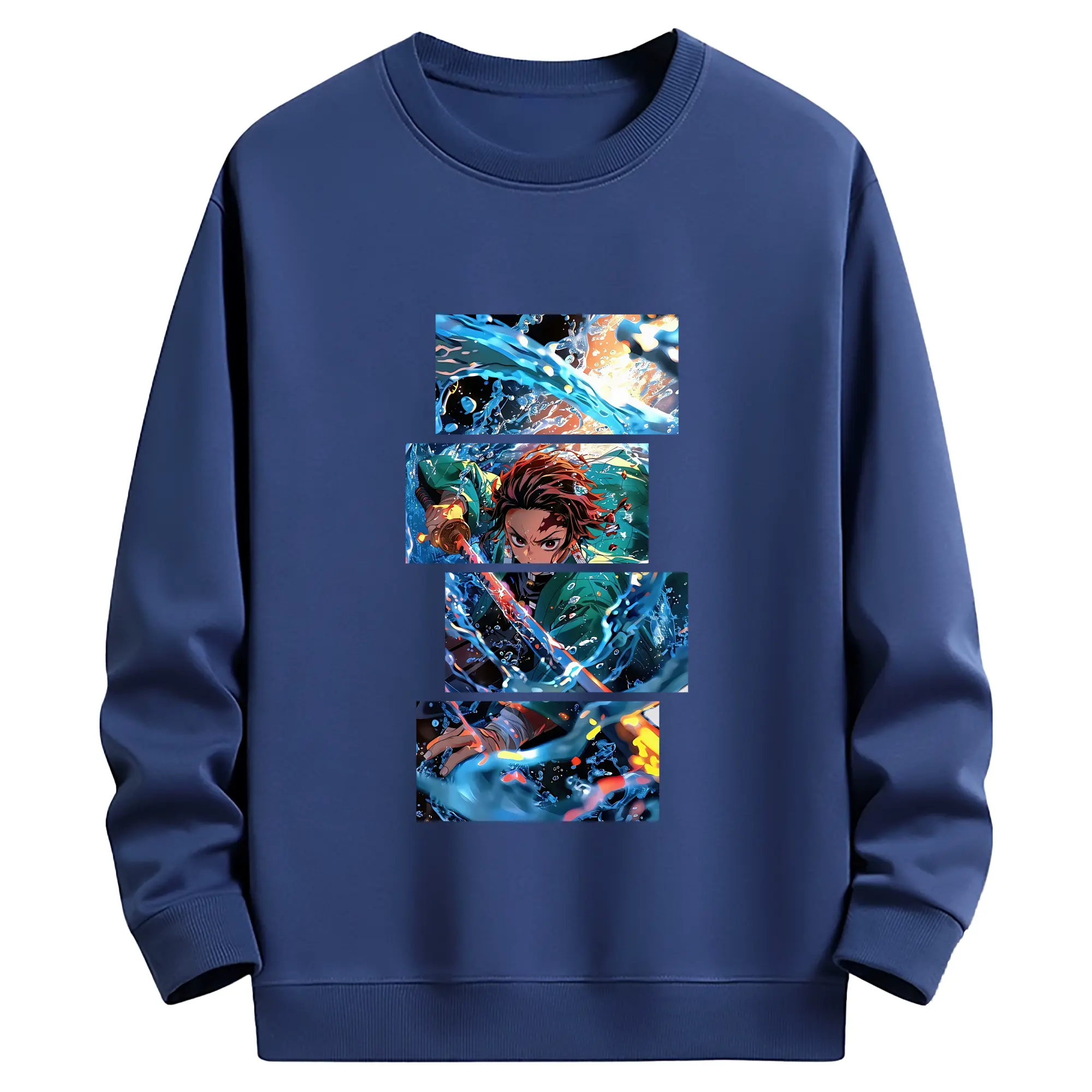 鬼滅の刃 グッズ,竈門 炭治郎 - 薄手 クルーネック スウェット 裏毛260g · ポリエステル 春秋向け カジュアル 男女兼用 · トレーナー デイリー スポーツ 散歩に最適