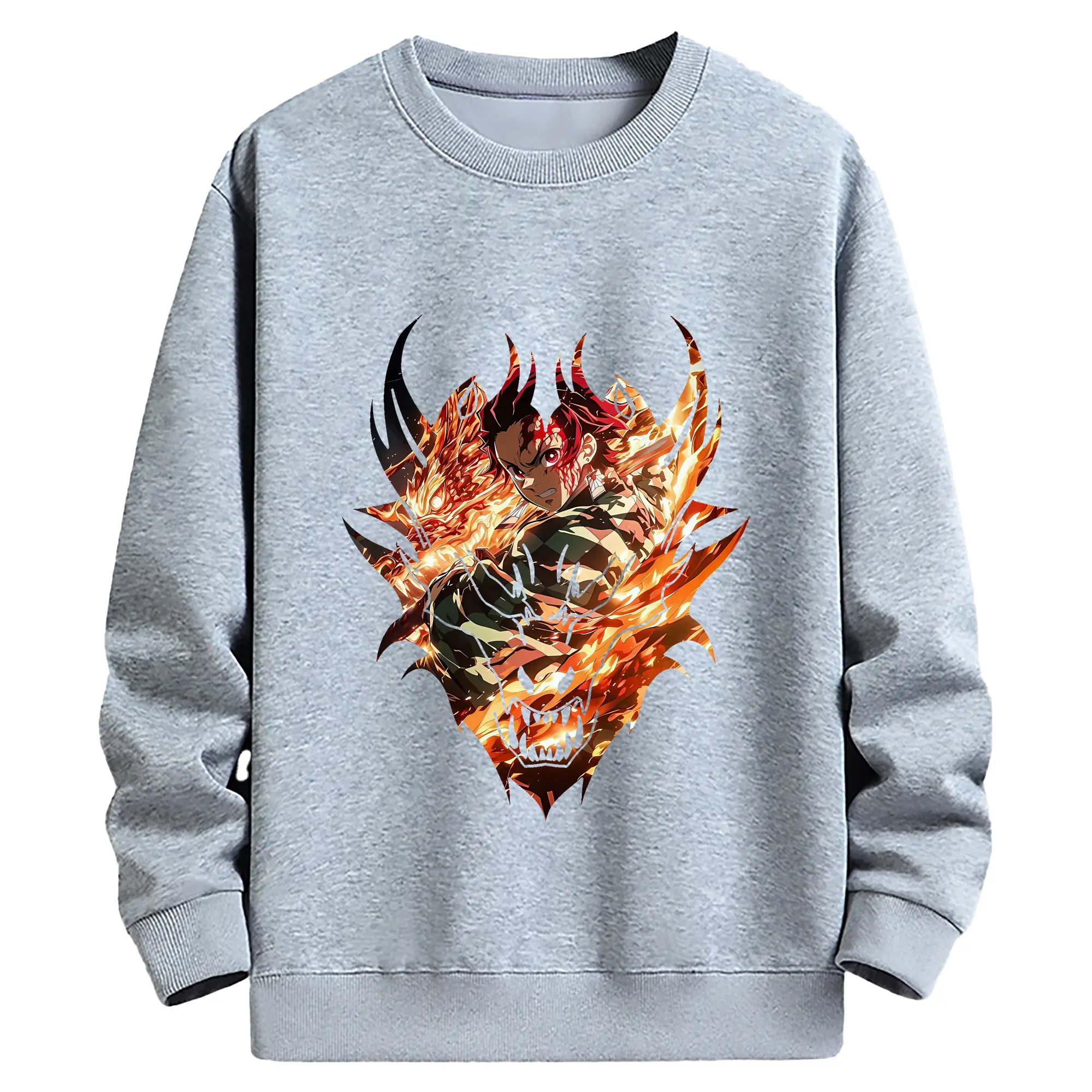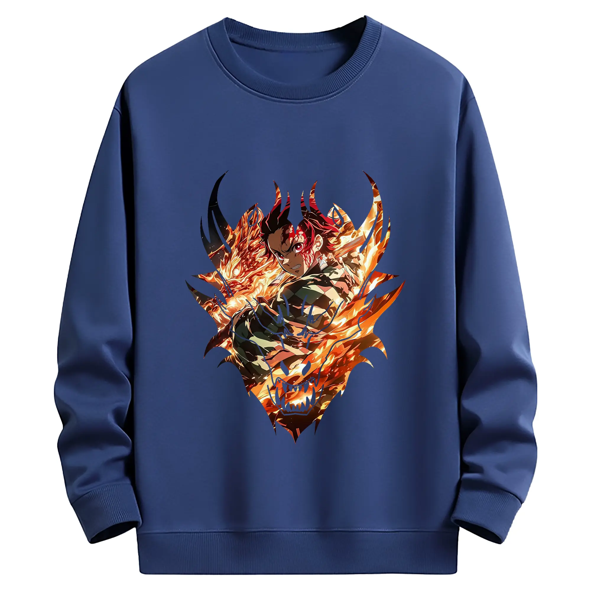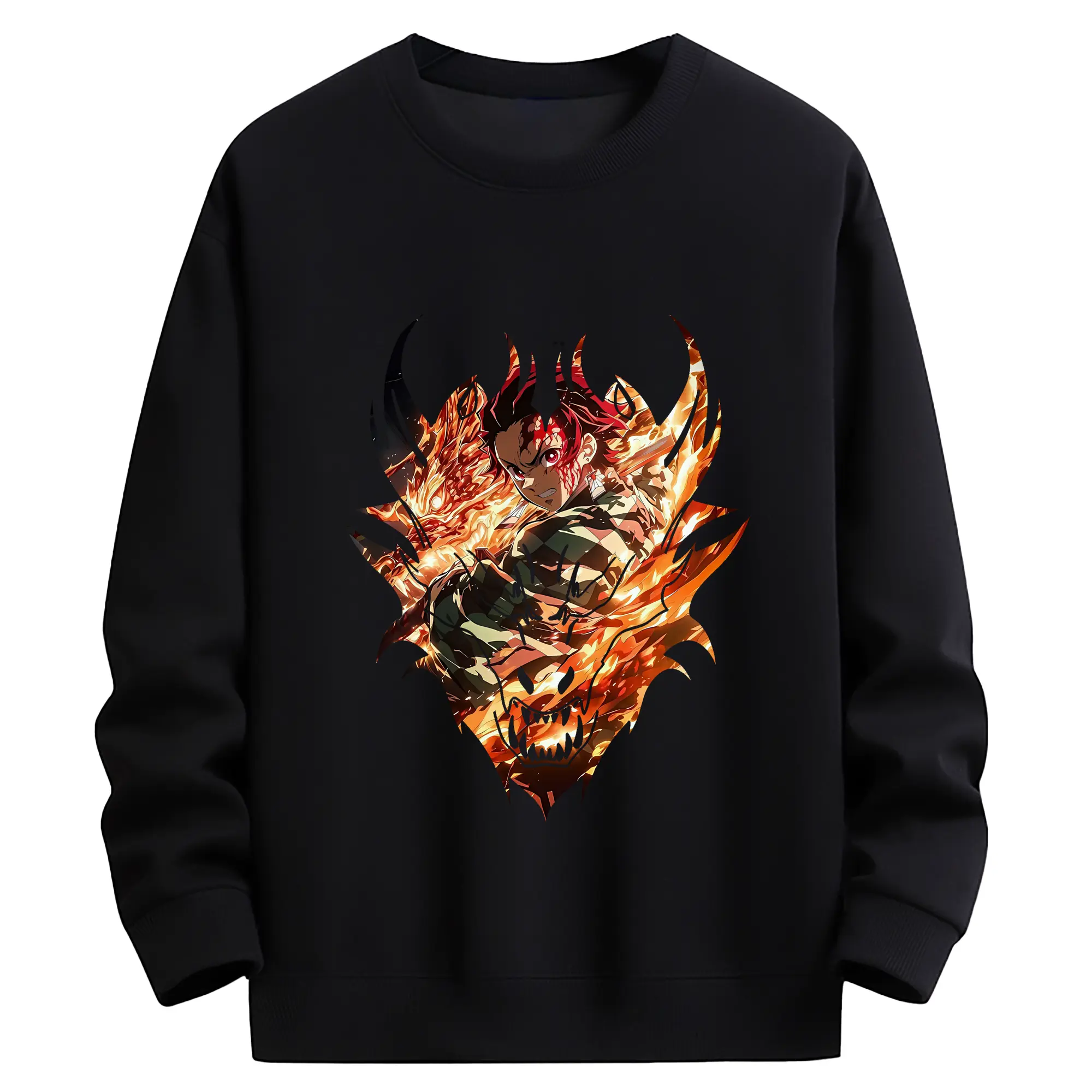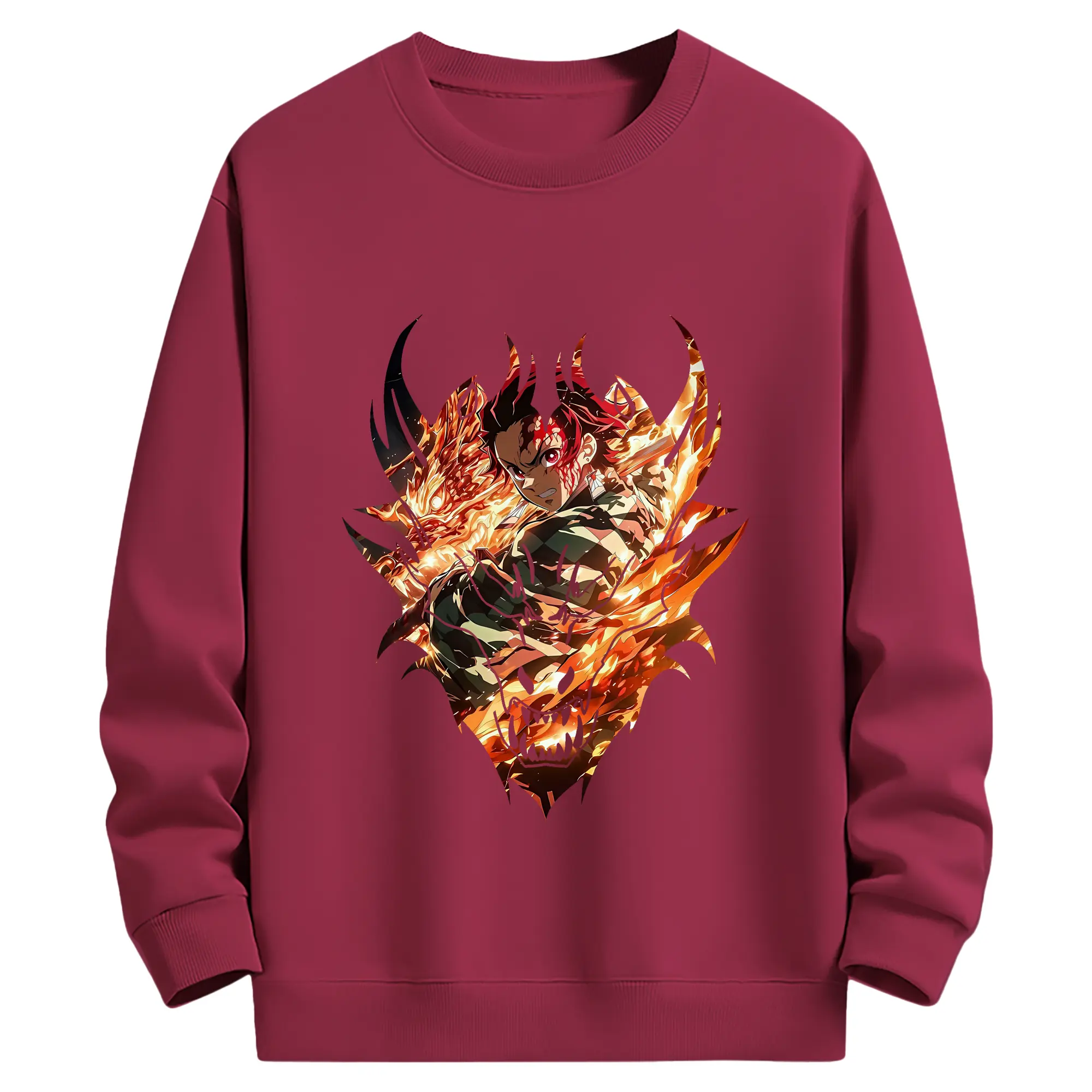 鬼滅の刃 グッズ,竈門 炭治郎 - 薄手 クルーネック スウェット 裏毛260g · ポリエステル 春秋向け カジュアル 男女兼用 · トレーナー デイリー スポーツ 散歩に最適